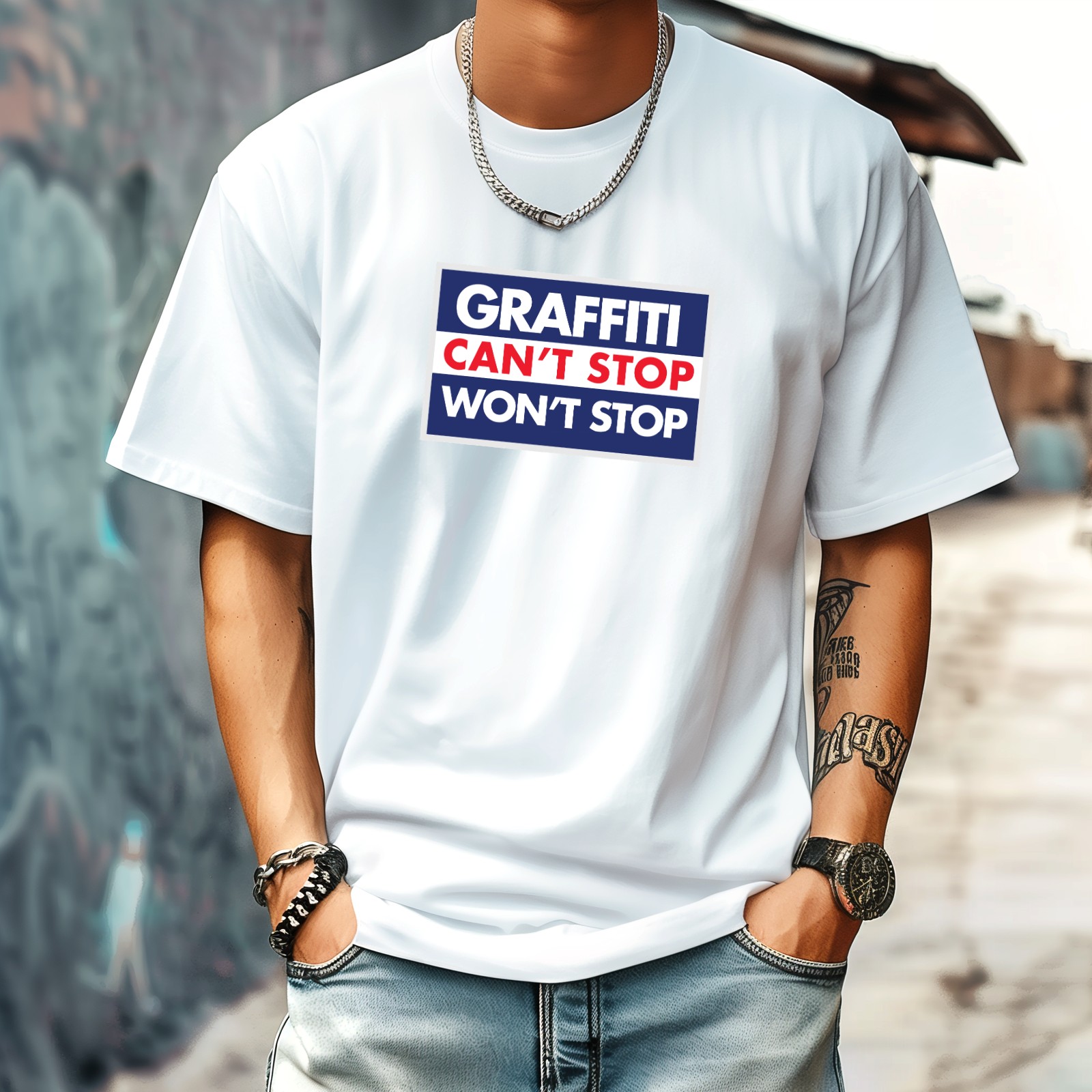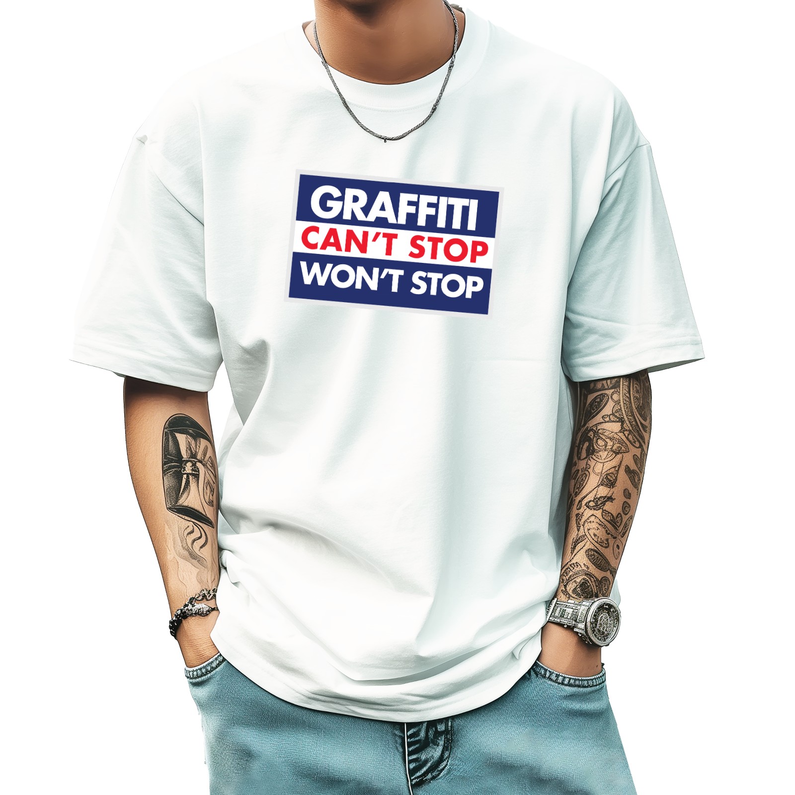 Graffm Stop T-Shirt for Man Tops Short Sleeves Shirt Crew Neck Shirt XS