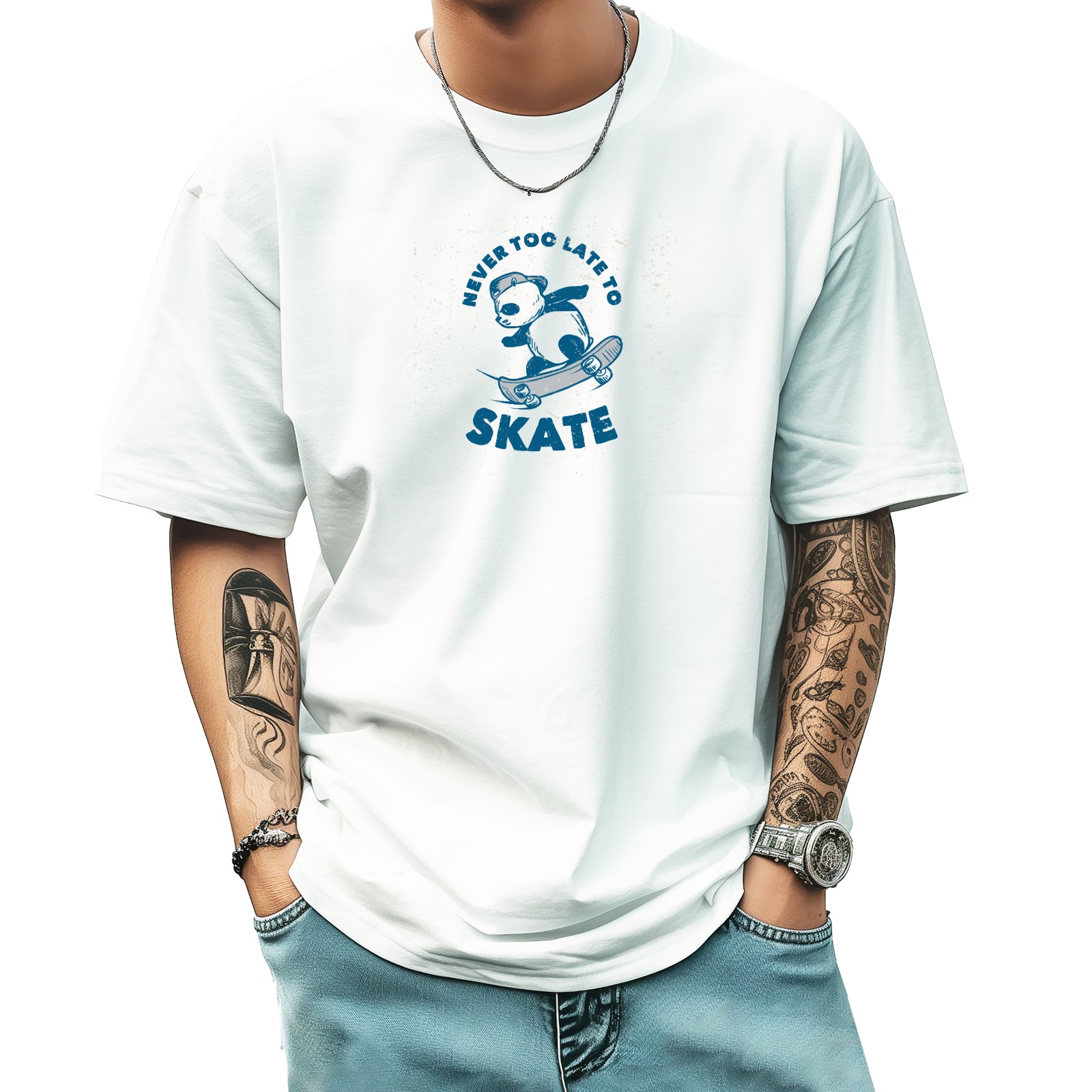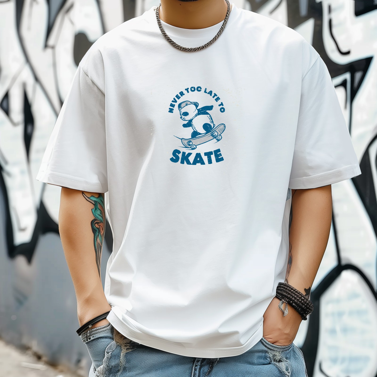 Skate Panda (1) T-Shirt for Man Tops Short Sleeves Shirt Crew Neck Shirt XS