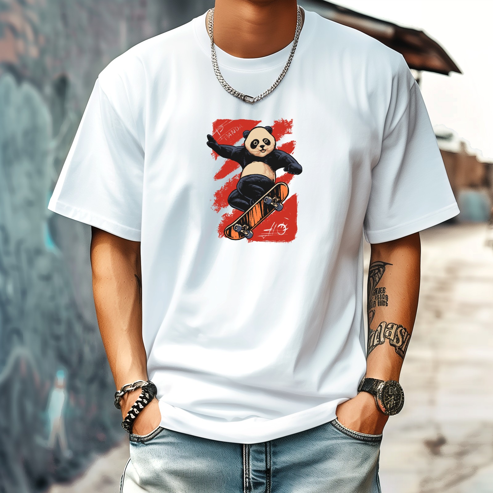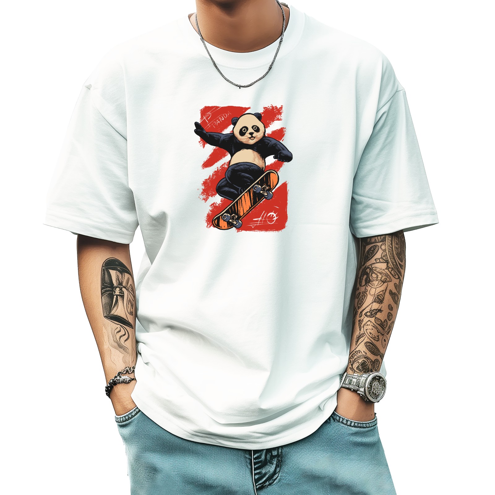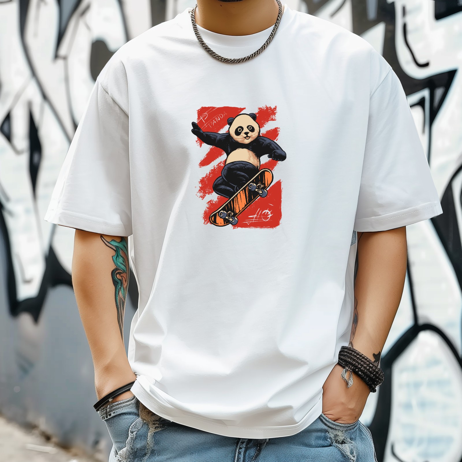Skate Panda (3) T-Shirt for Man Tops Short Sleeves Shirt Crew Neck Shirt XS