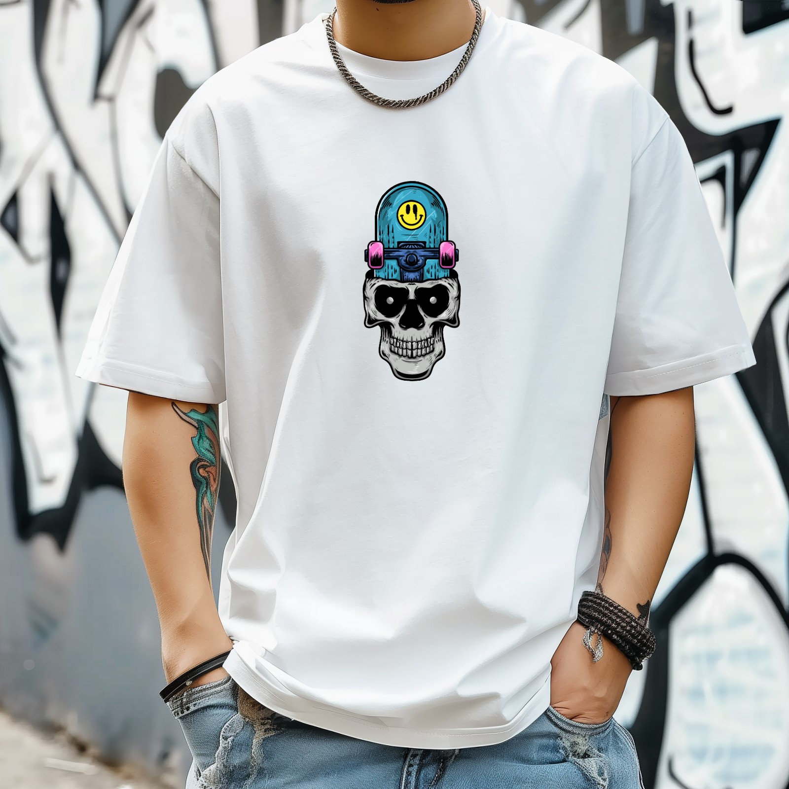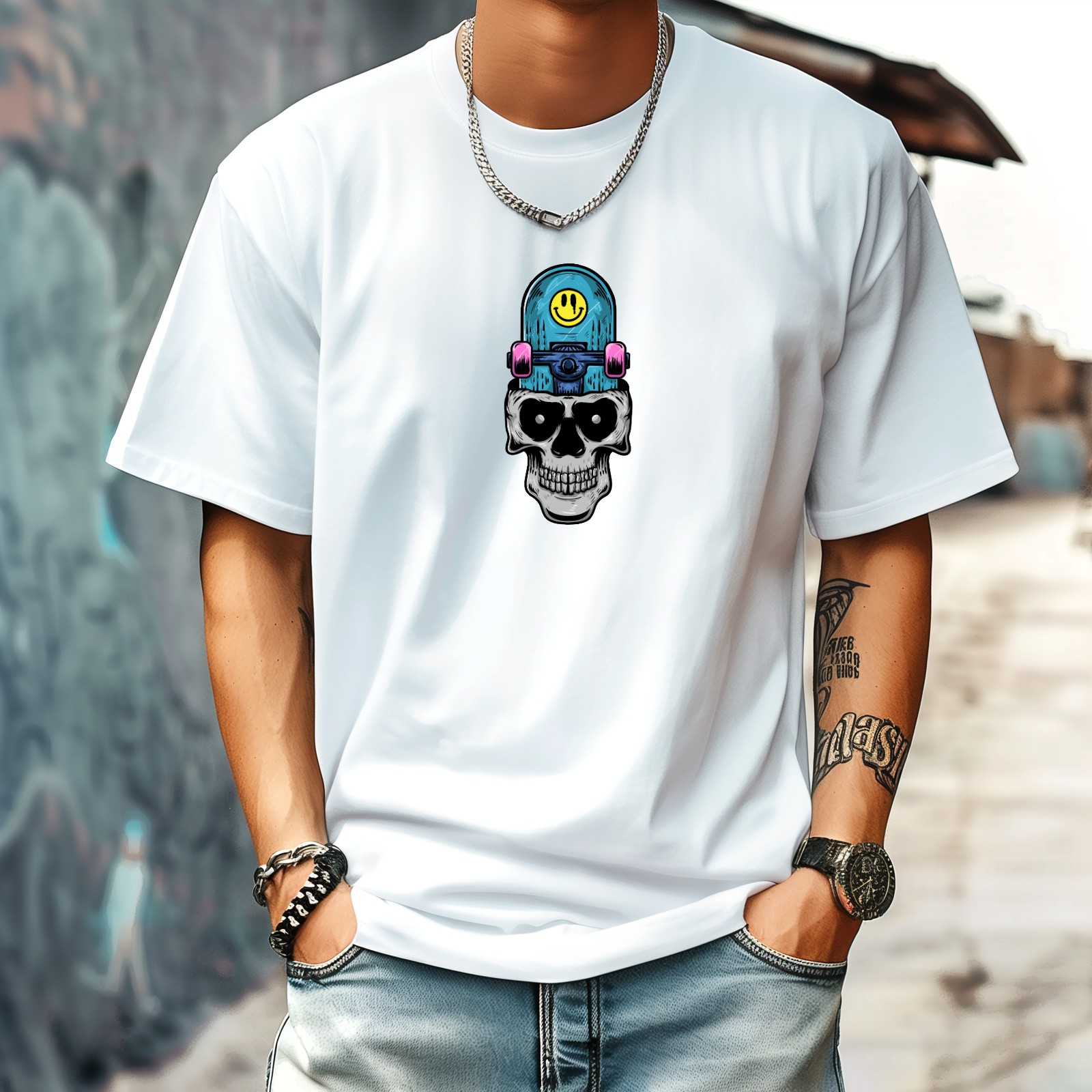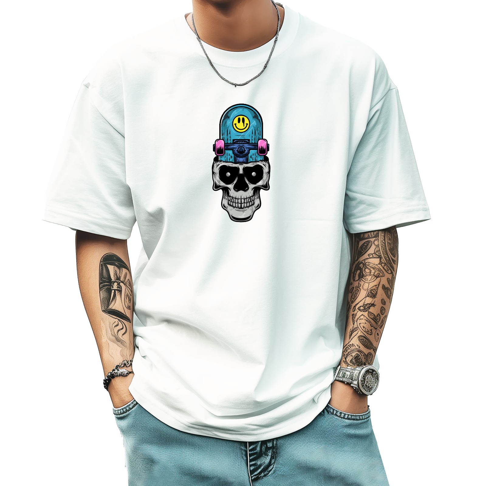 Skull (1) T-Shirt for Man Tops Short Sleeves Shirt Crew Neck Shirt XS