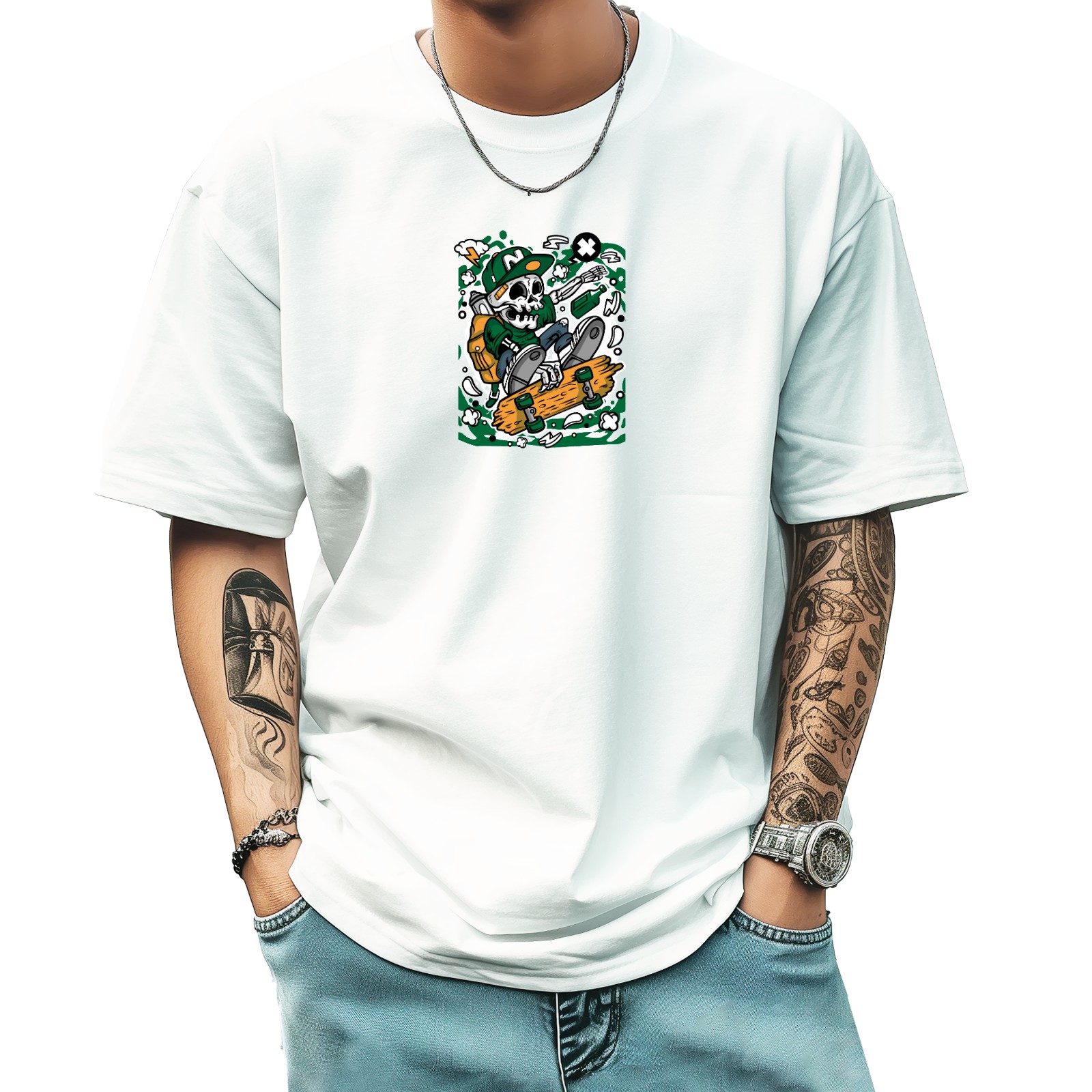 Skull (3) T-Shirt for Man Tops Short Sleeves Shirt Crew Neck Shirt XS
