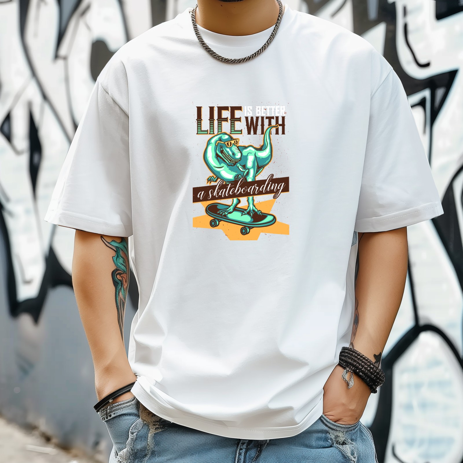 Street Skate (3) T-Shirt for Man Tops Short Sleeves Shirt Crew Neck Shirt XS