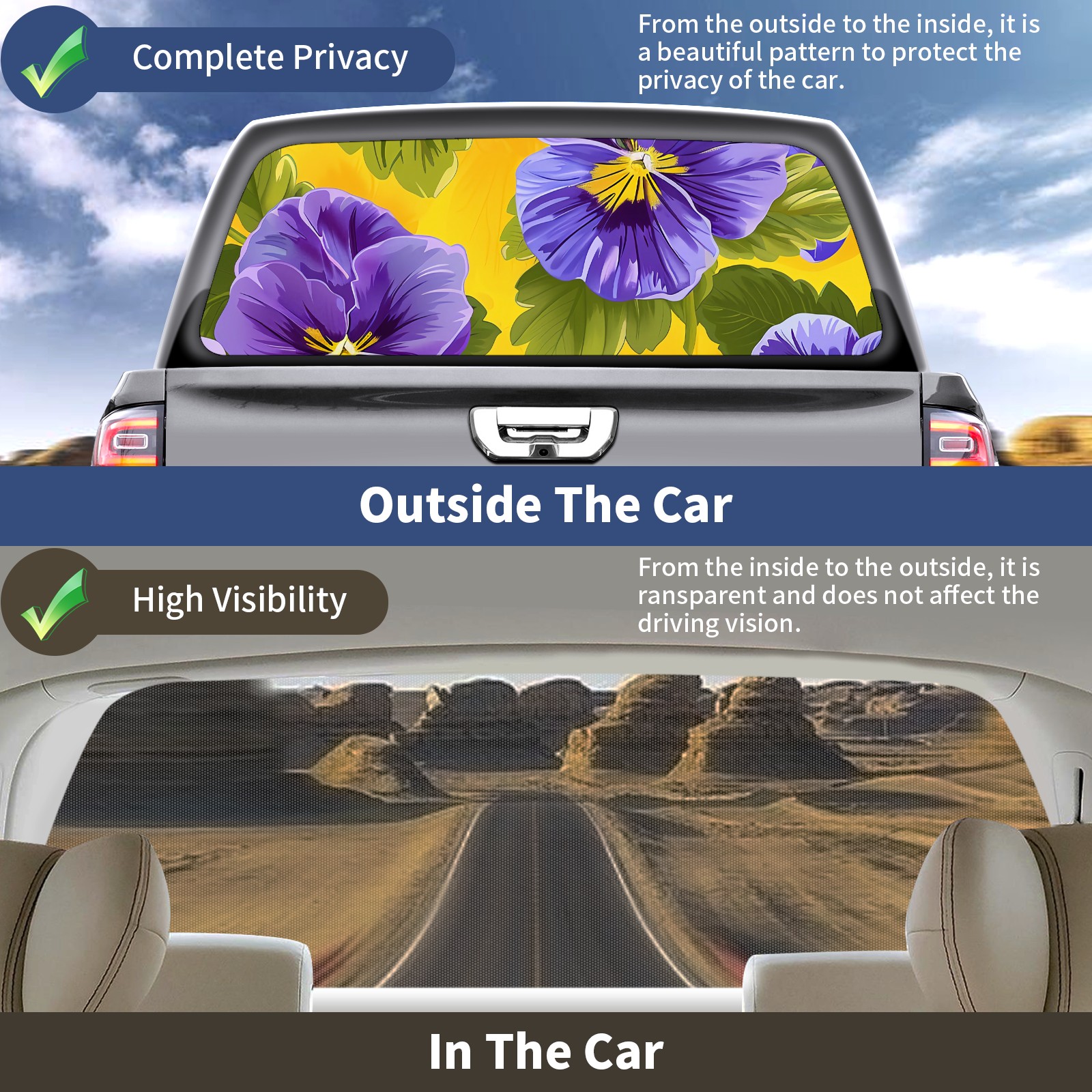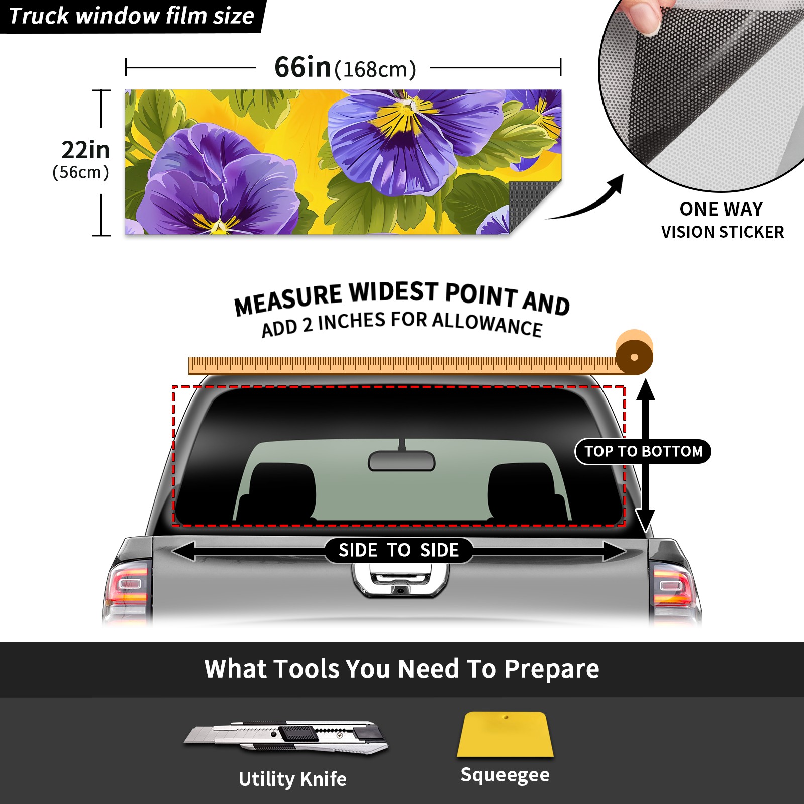 Truck Rear Window Graphics Decals Pickup Trucks Back Window Sticker Full Window Film Decal One Way Visual Waterproof Car Rear Tint Bouquets A