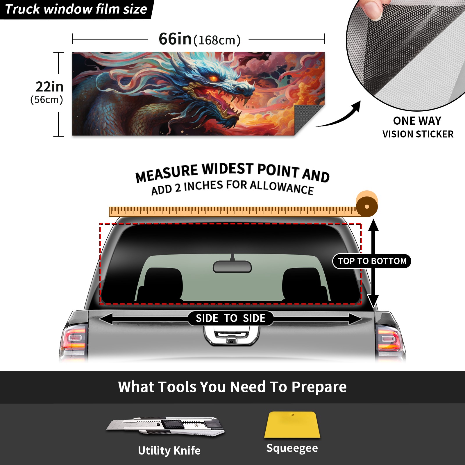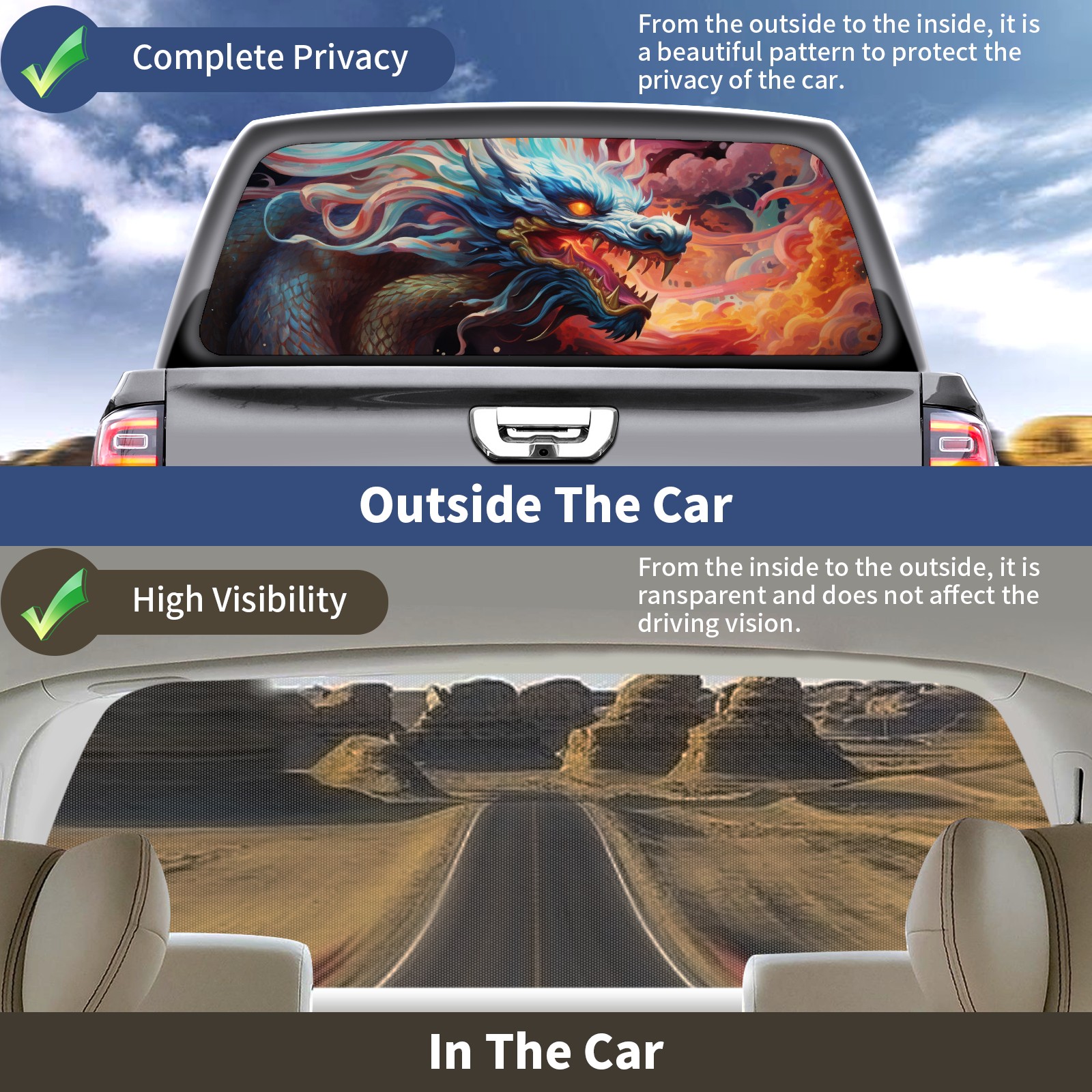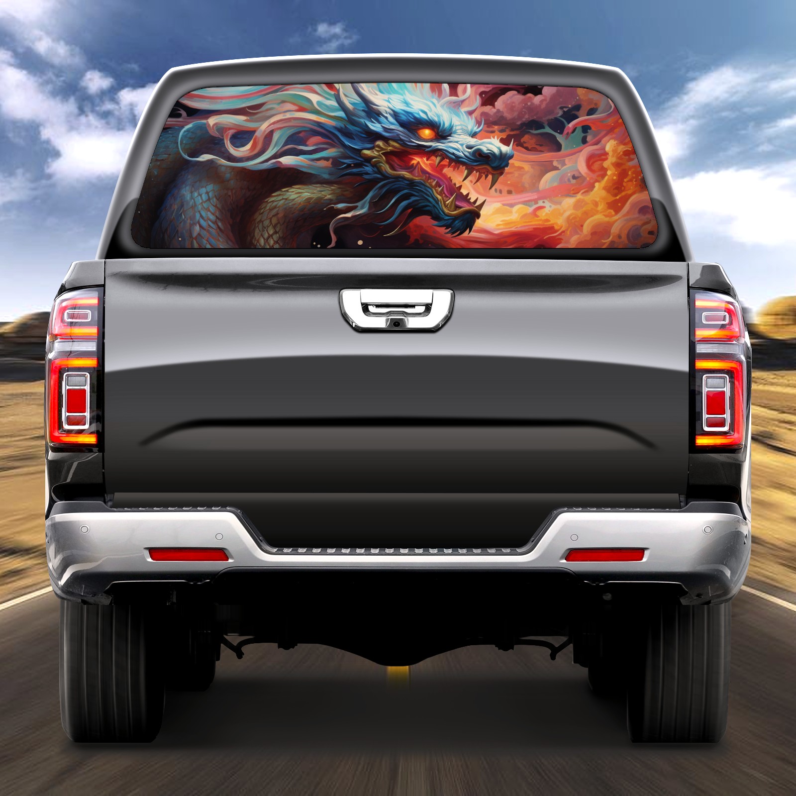 Truck Rear Window Graphics Decals Pickup Trucks Back Window Sticker Full Window Film Decal One Way Visual Waterproof Car Rear Tint Chinese Dragon (96)