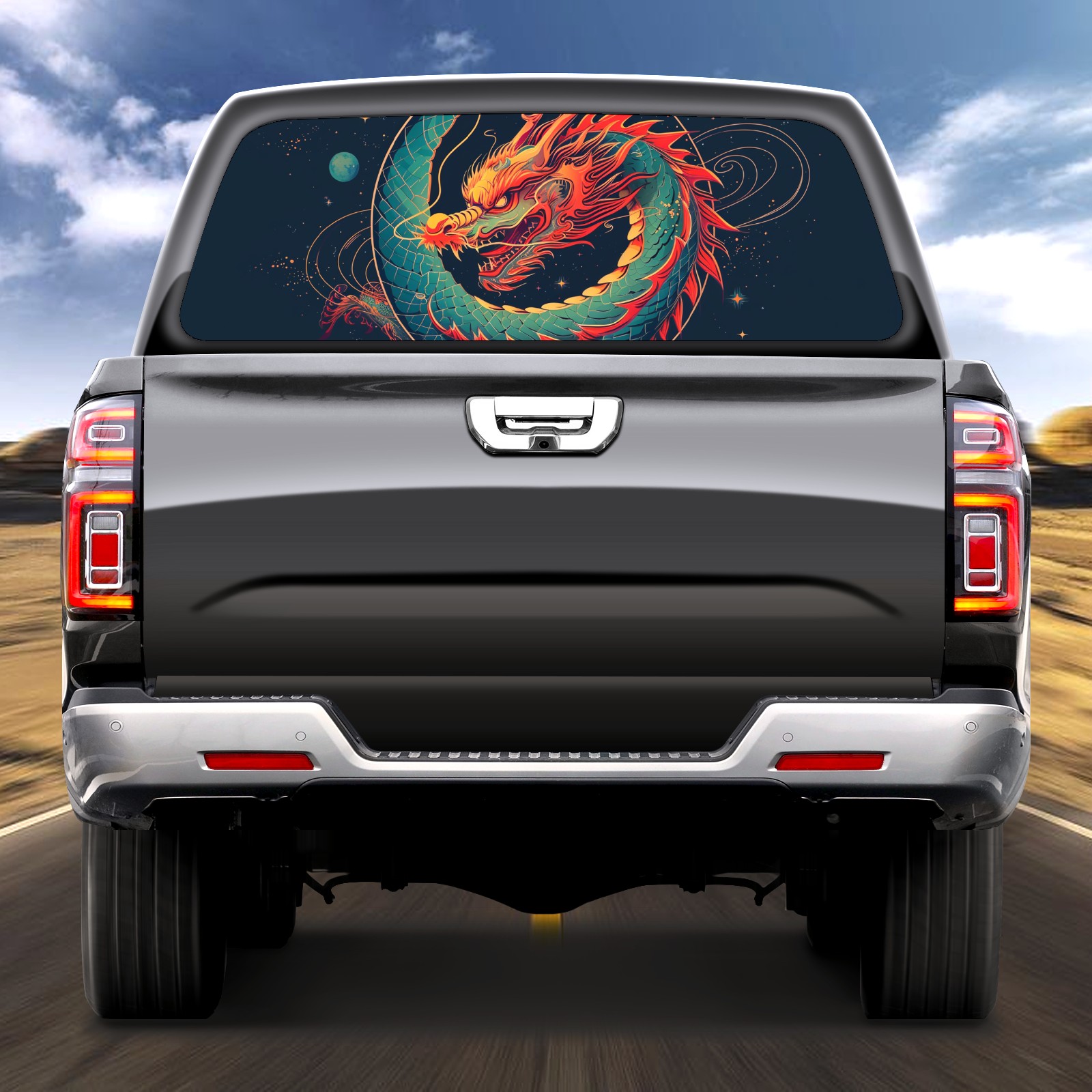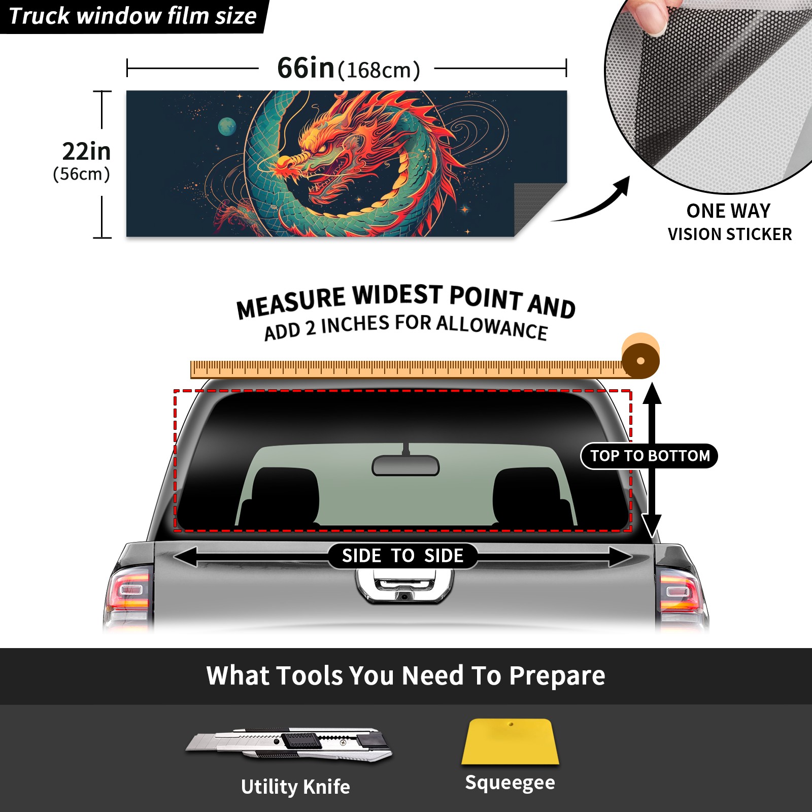 Truck Rear Window Graphics Decals Pickup Trucks Back Window Sticker Full Window Film Decal One Way Visual Waterproof Car Rear Tint Chinese Dragon (9)