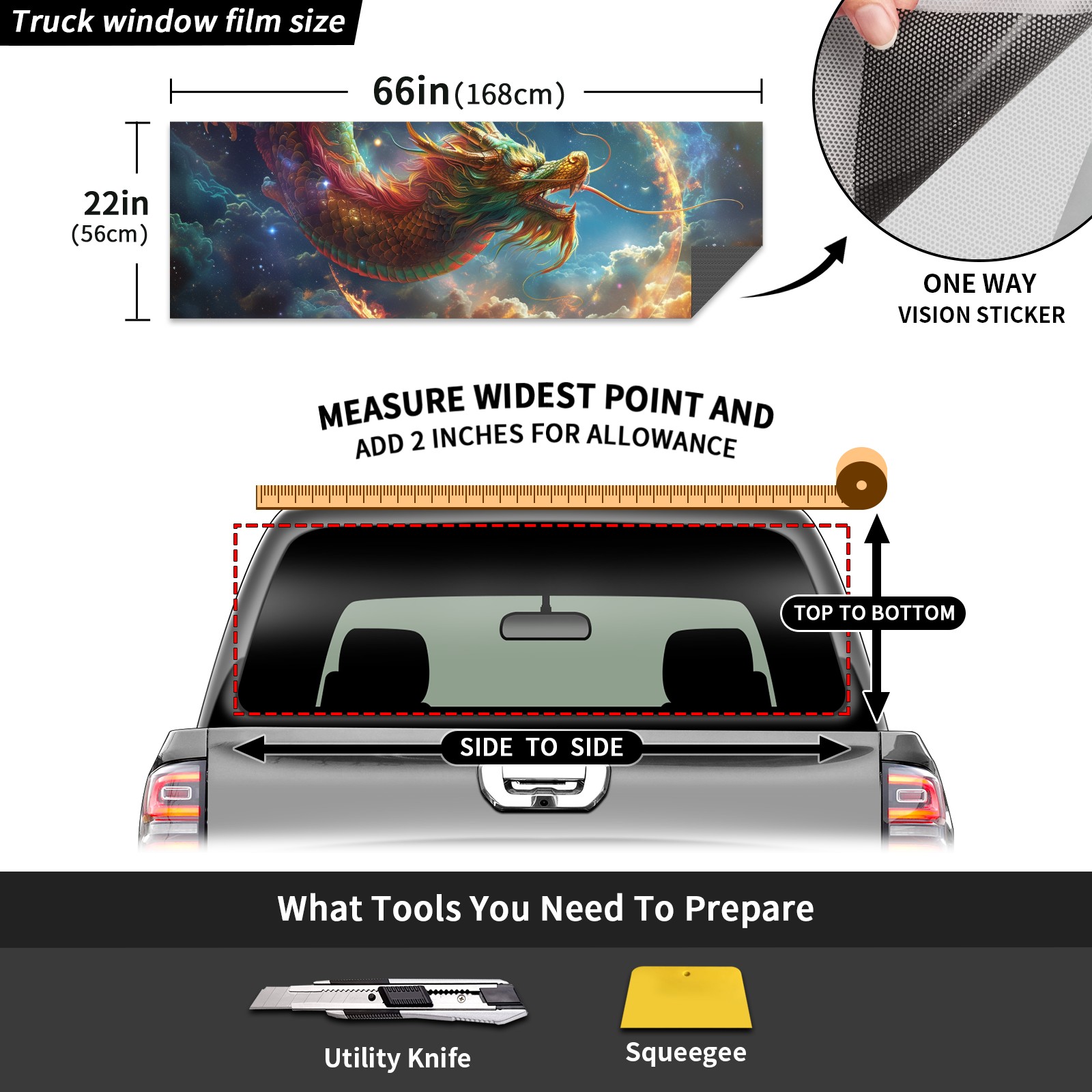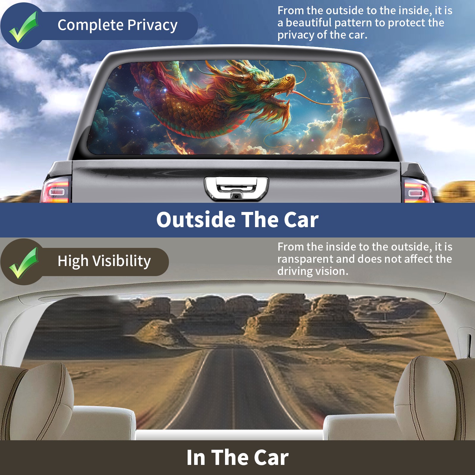 Truck Rear Window Graphics Decals Pickup Trucks Back Window Sticker Full Window Film Decal One Way Visual Waterproof Car Rear Tint Chinese Dragon (6)