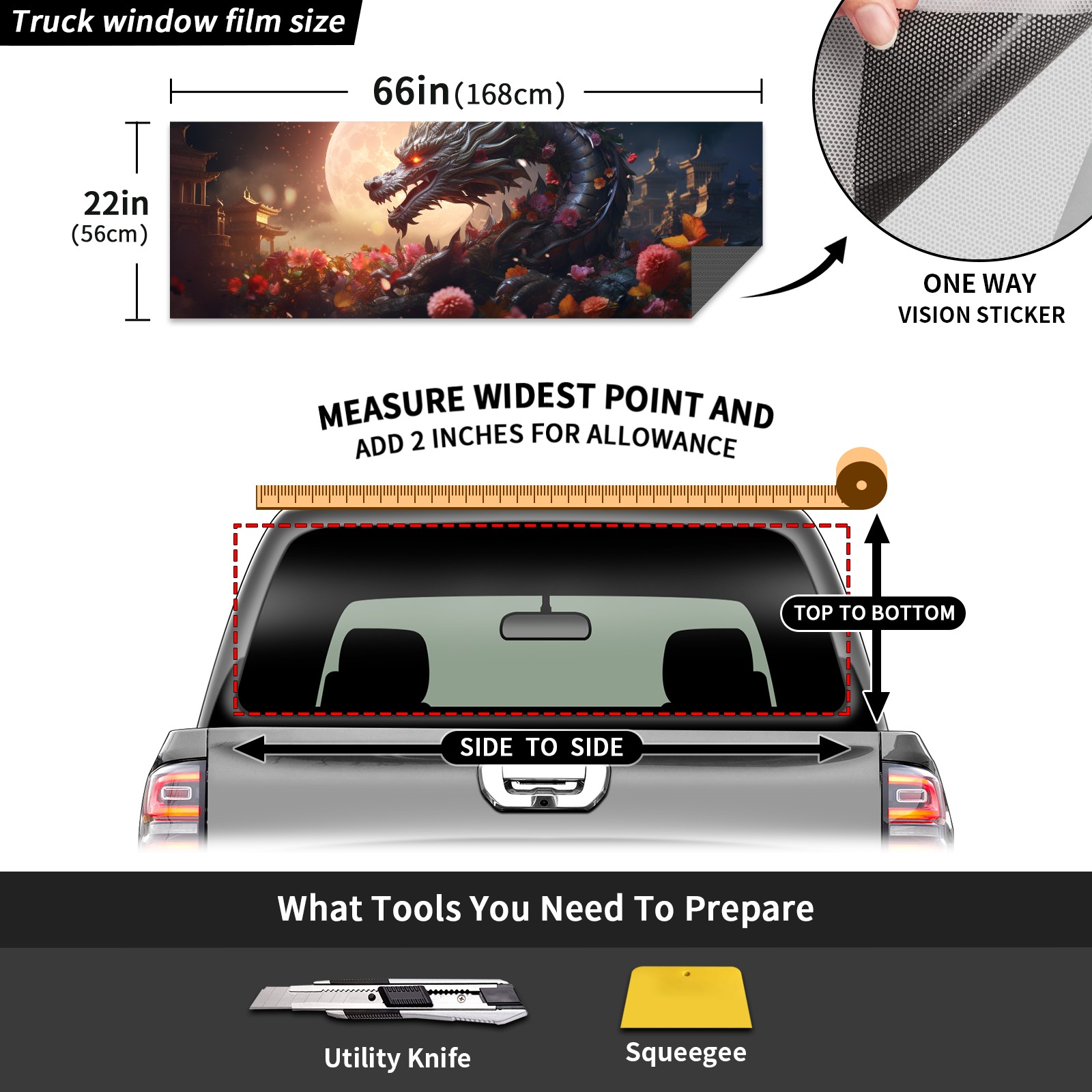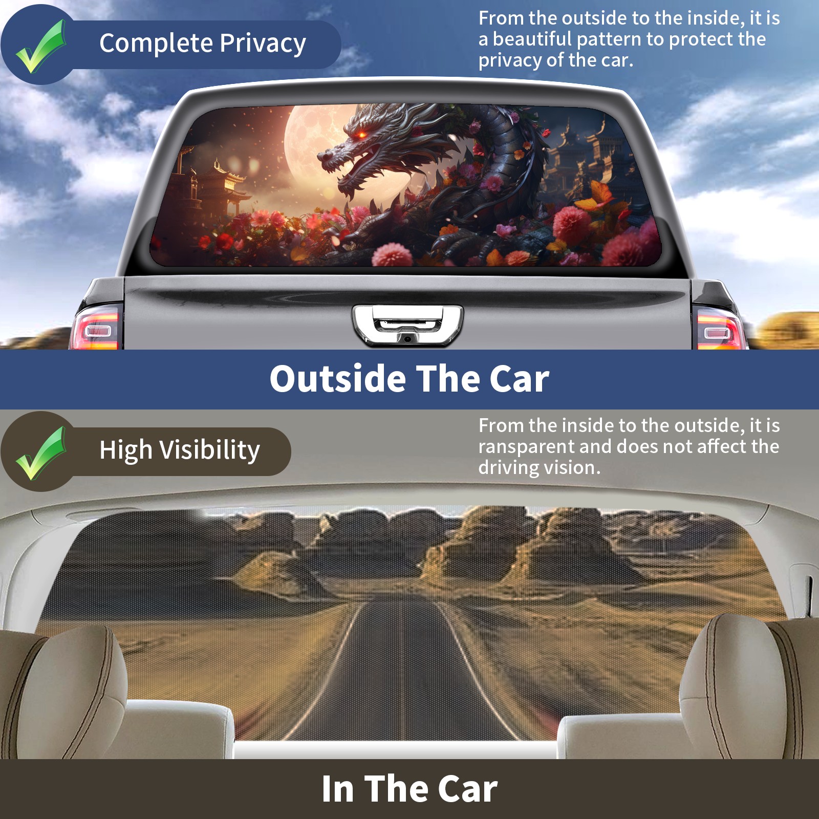 Truck Rear Window Graphics Decals Pickup Trucks Back Window Sticker Full Window Film Decal One Way Visual Waterproof Car Rear Tint Chinese Dragon (14)