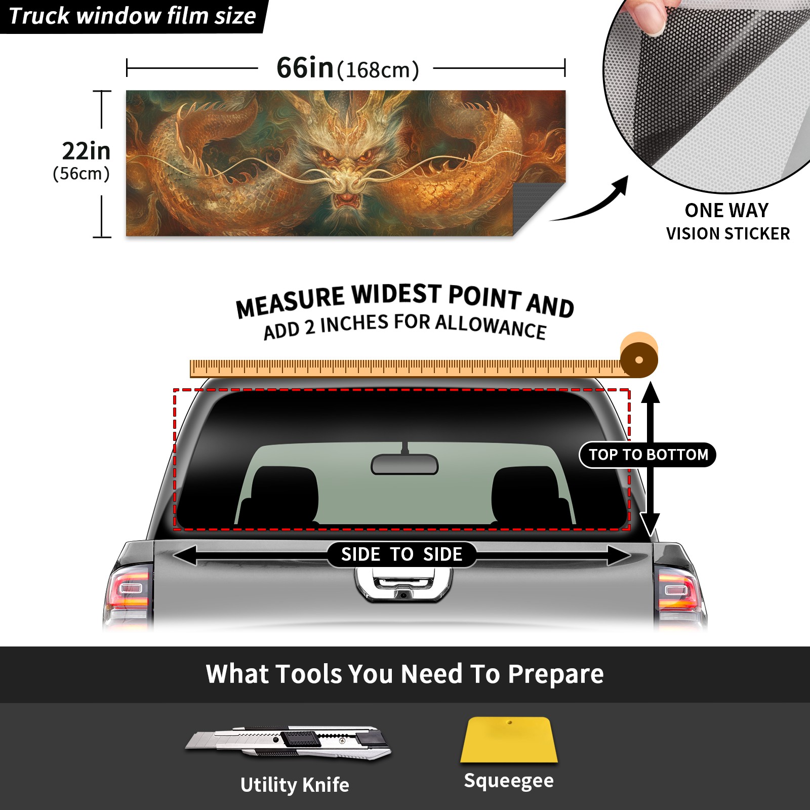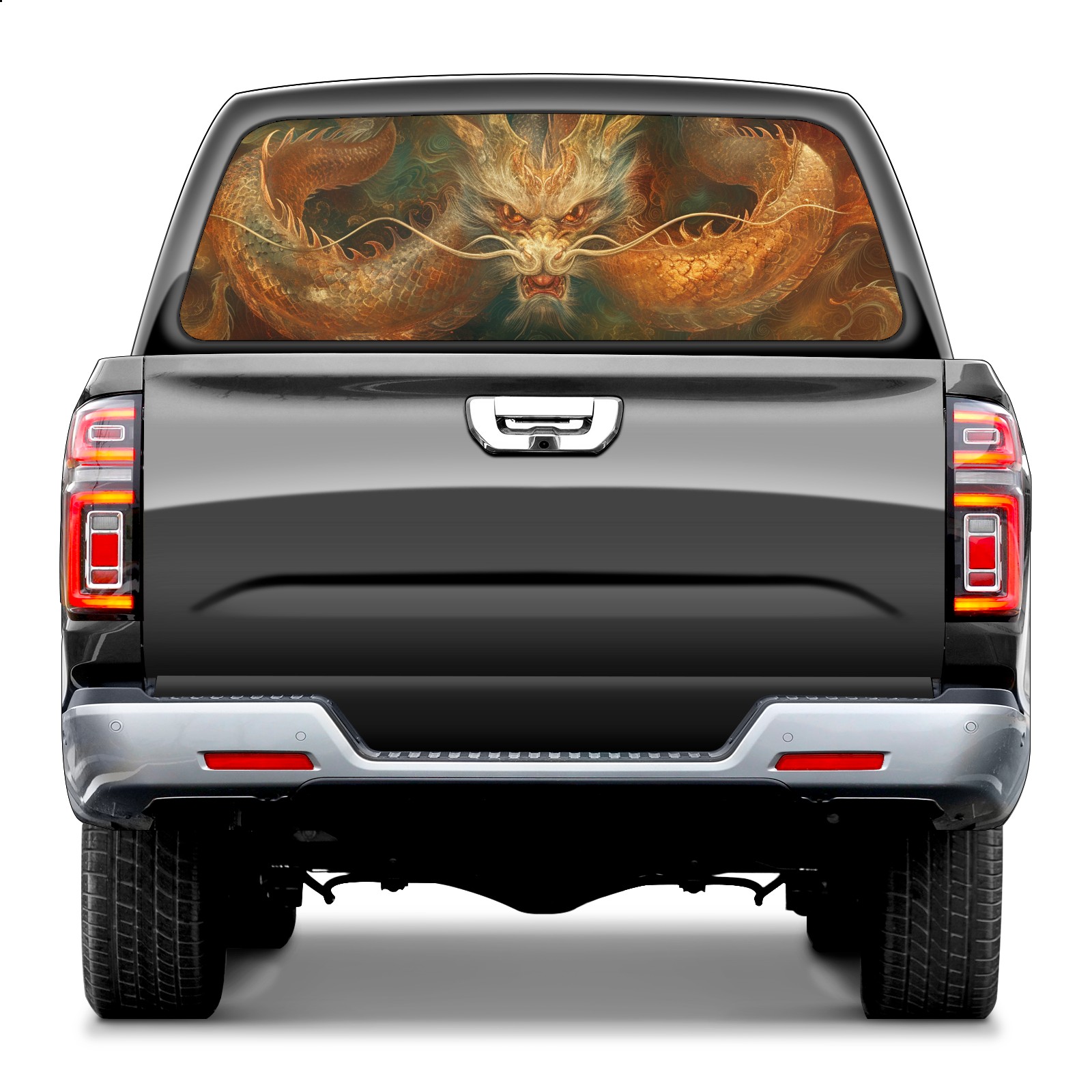 Truck Rear Window Graphics Decals Pickup Trucks Back Window Sticker Full Window Film Decal One Way Visual Waterproof Car Rear Tint Chinese Dragon (51)