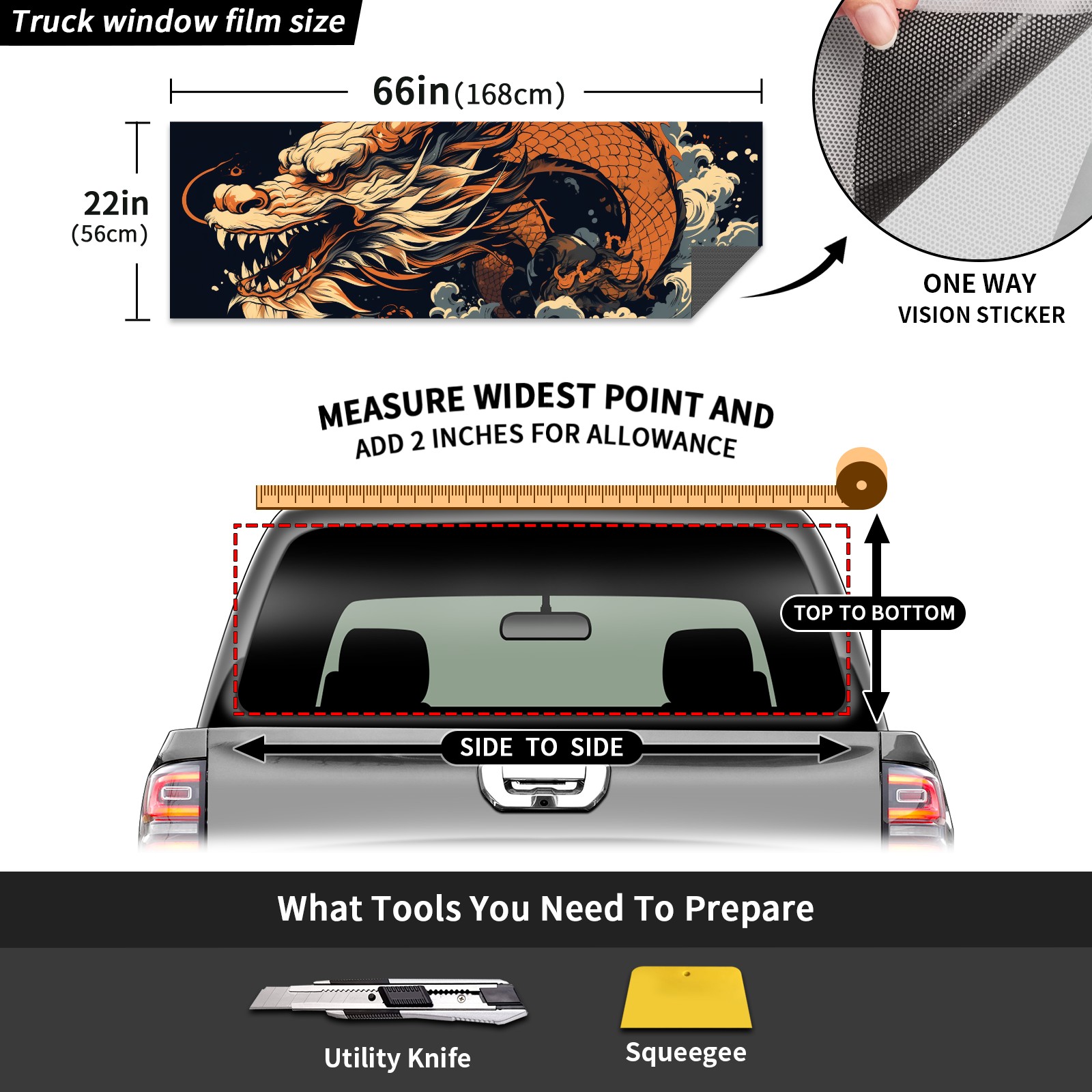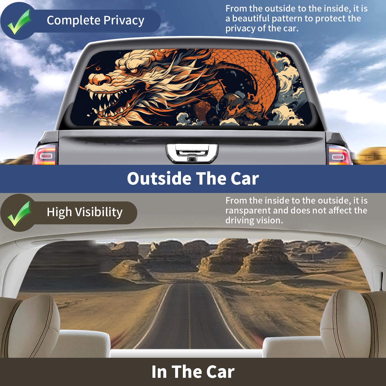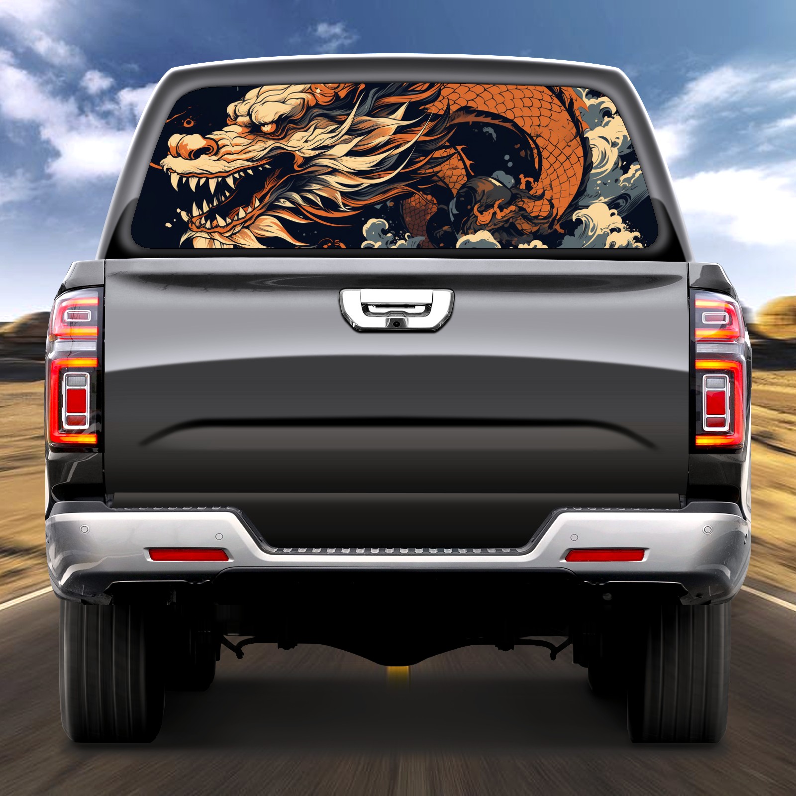Truck Rear Window Graphics Decals Pickup Trucks Back Window Sticker Full Window Film Decal One Way Visual Waterproof Car Rear Tint Chinese Dragon (34)