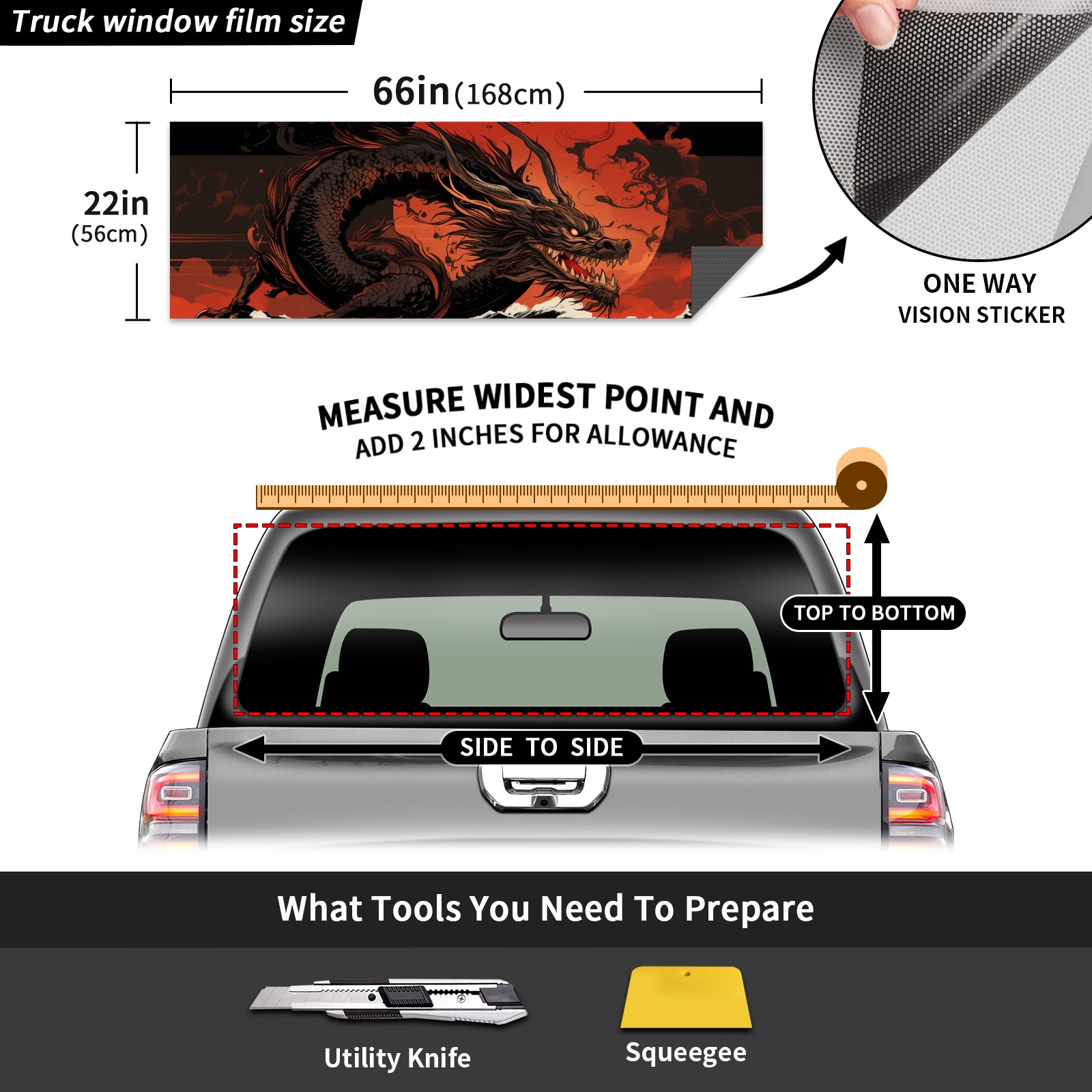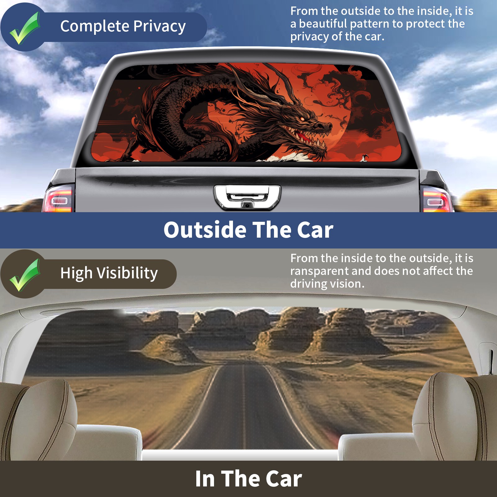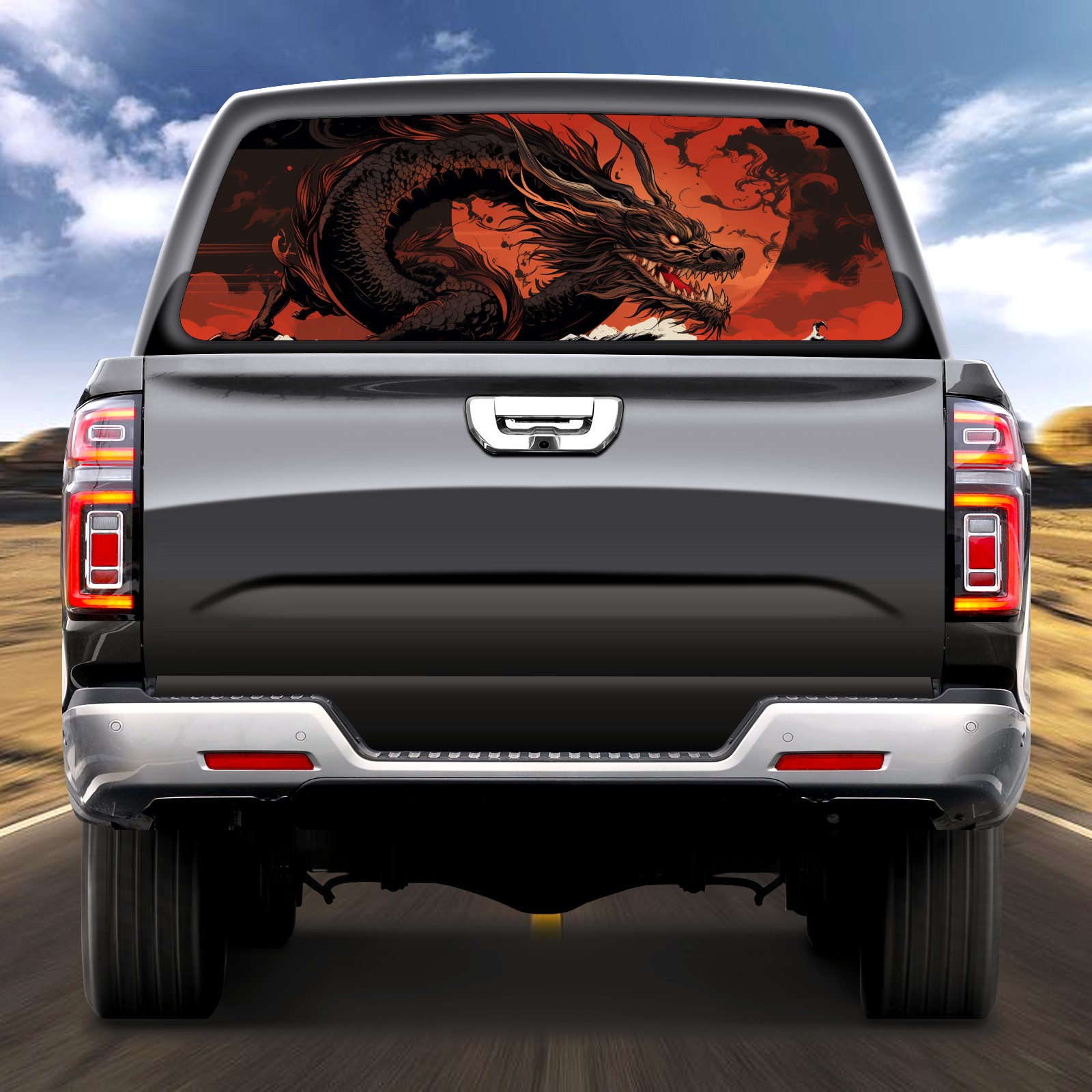 Truck Rear Window Graphics Decals Pickup Trucks Back Window Sticker Full Window Film Decal One Way Visual Waterproof Car Rear Tint Chinese Dragon (31)