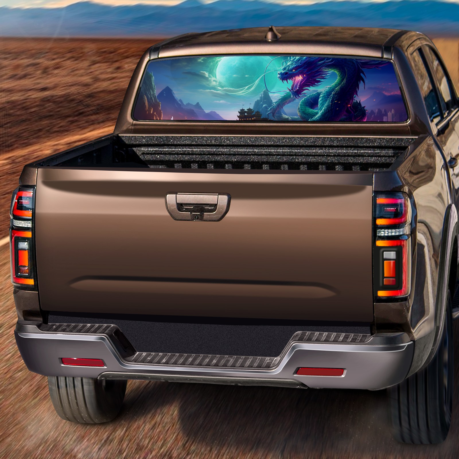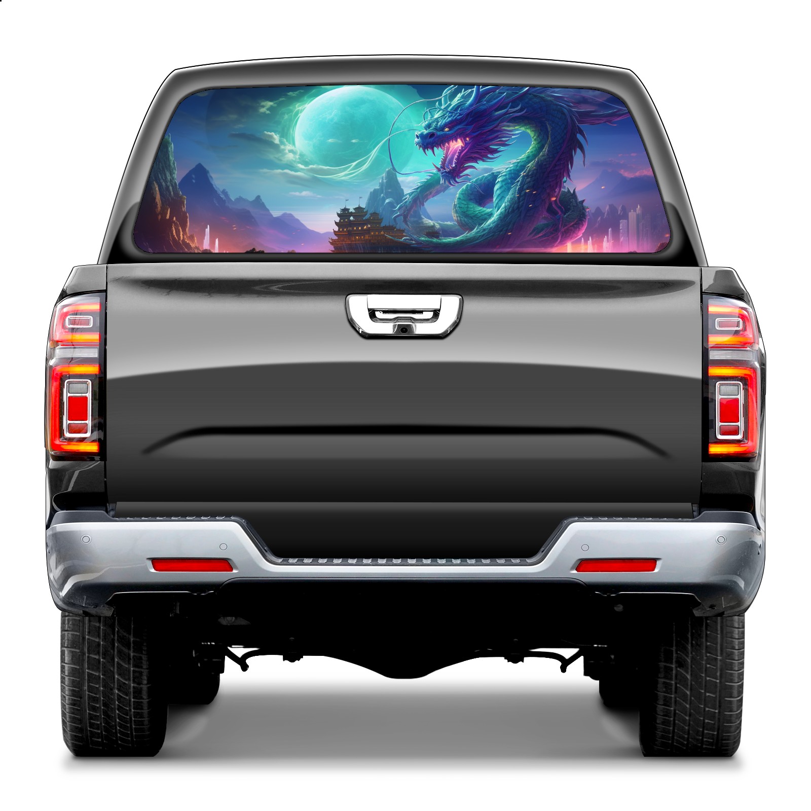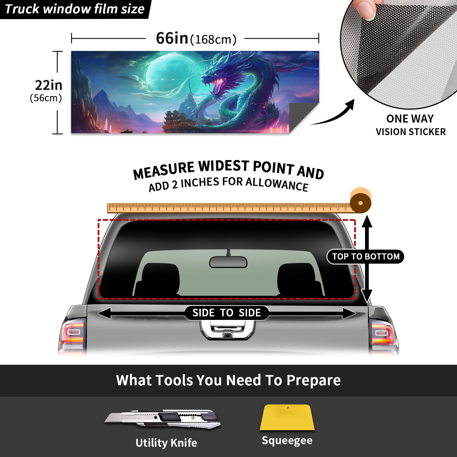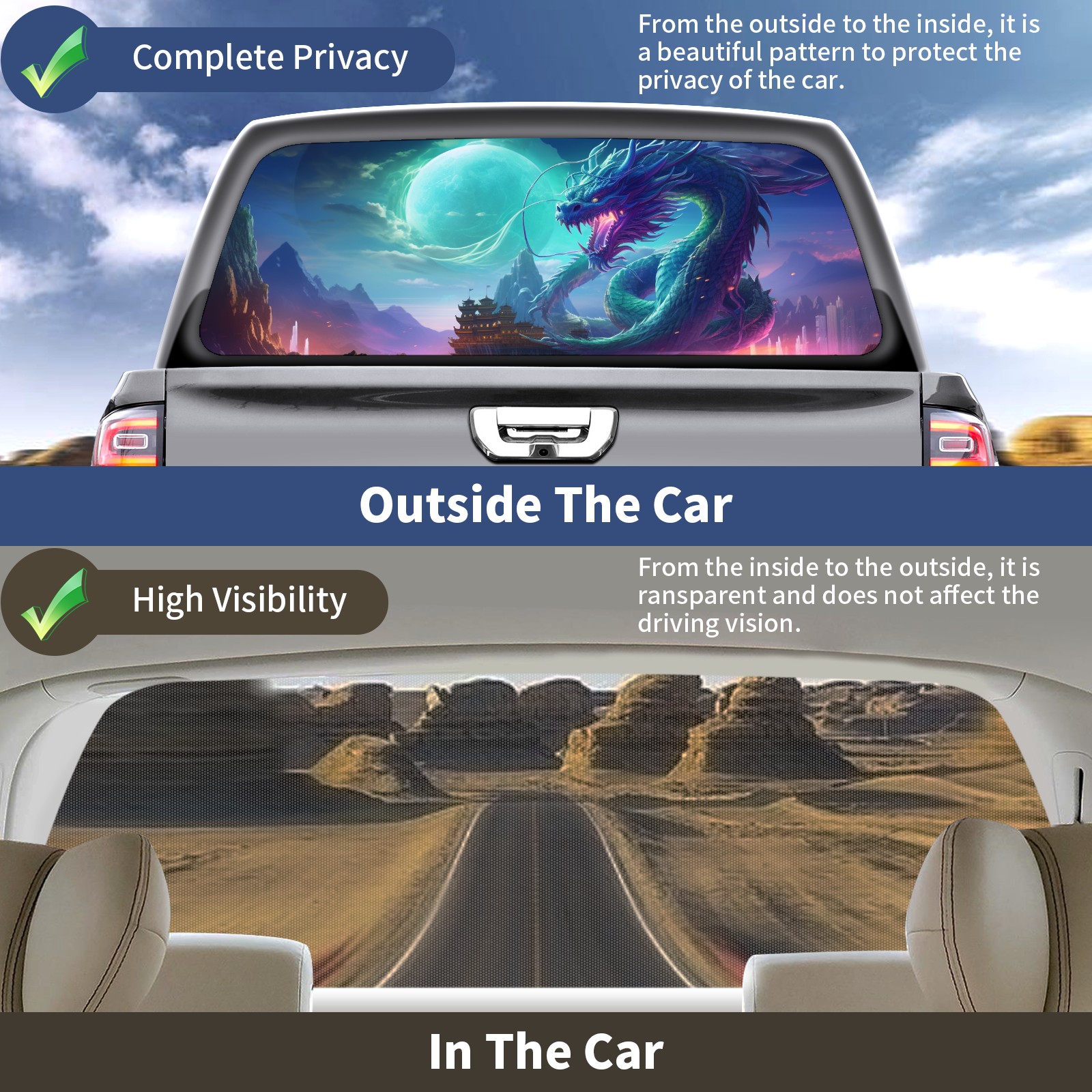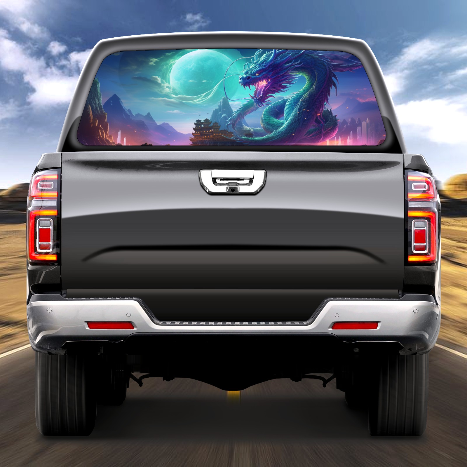 Truck Rear Window Graphics Decals Pickup Trucks Back Window Sticker Full Window Film Decal One Way Visual Waterproof Car Rear Tint Chinese Dragon (43)