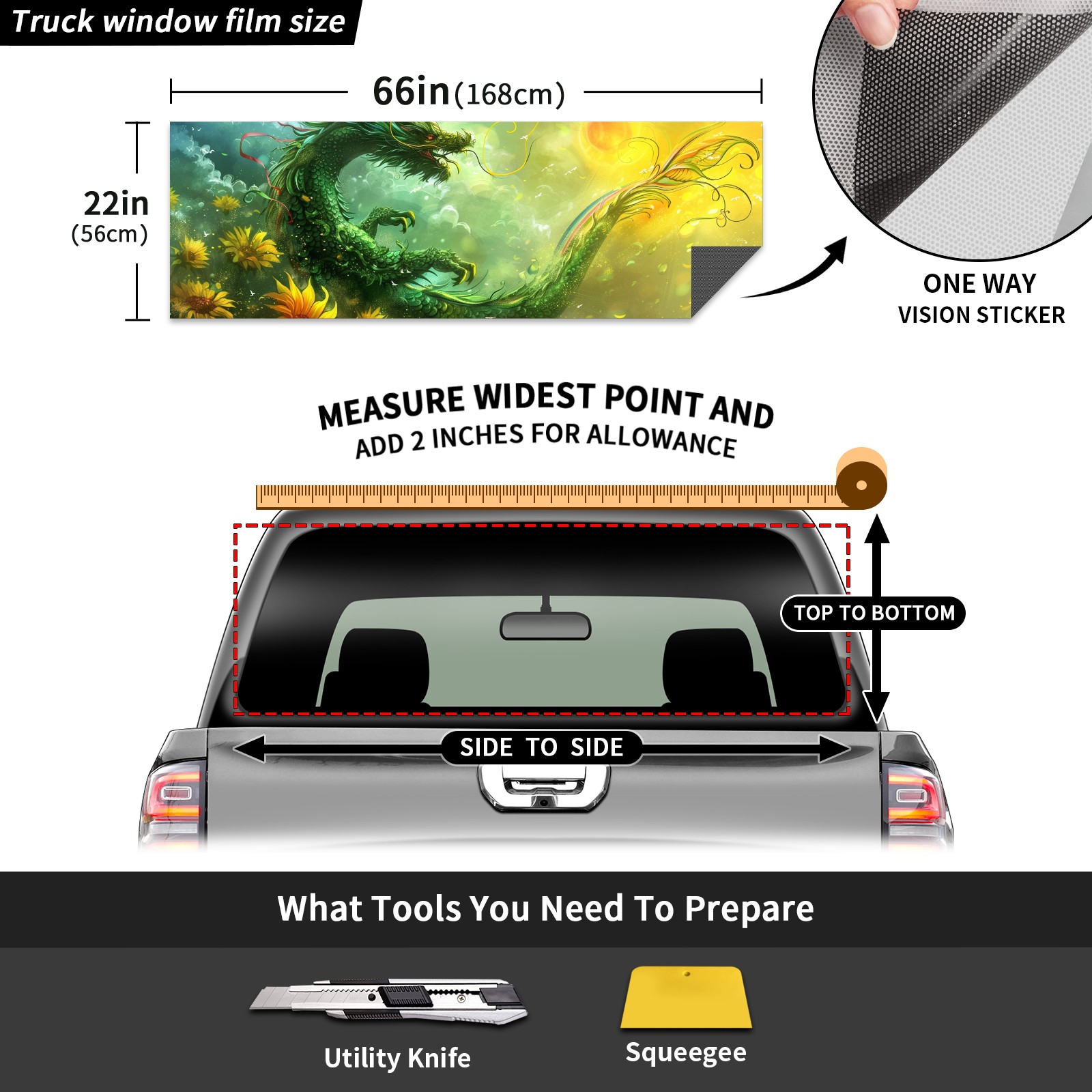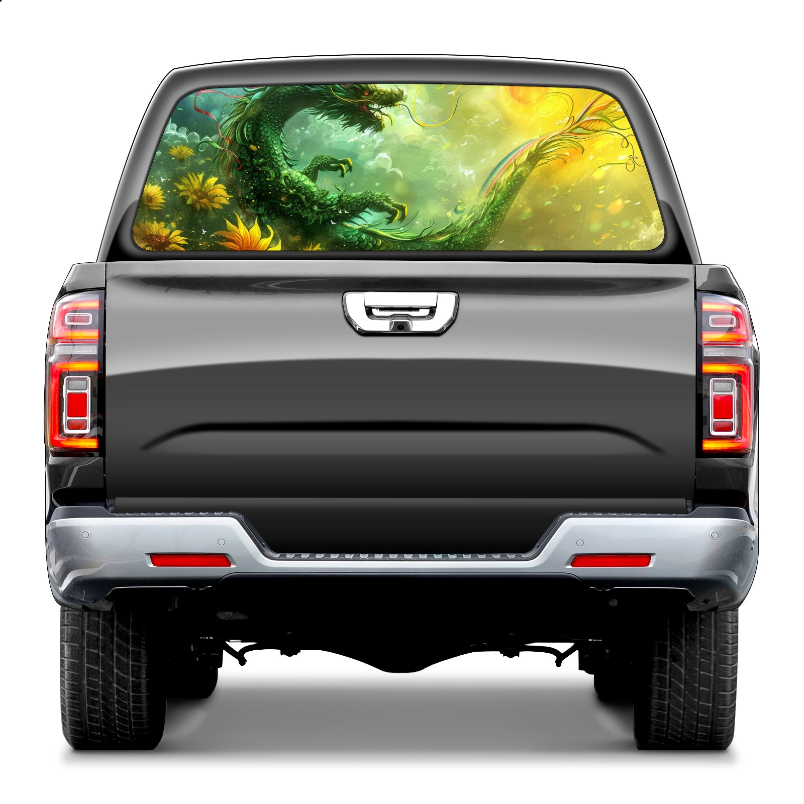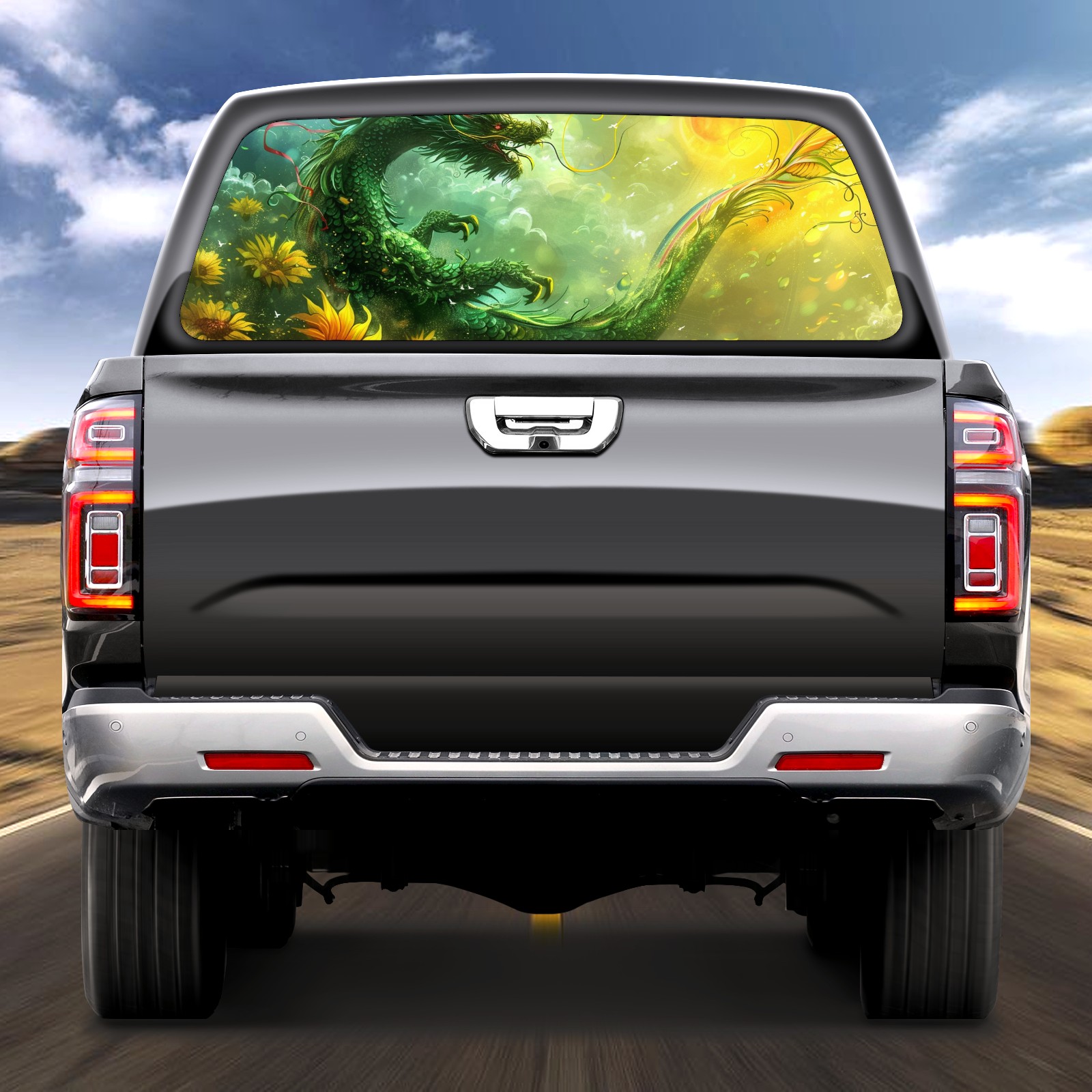Truck Rear Window Graphics Decals Pickup Trucks Back Window Sticker Full Window Film Decal One Way Visual Waterproof Car Rear Tint Chinese Dragon (79)