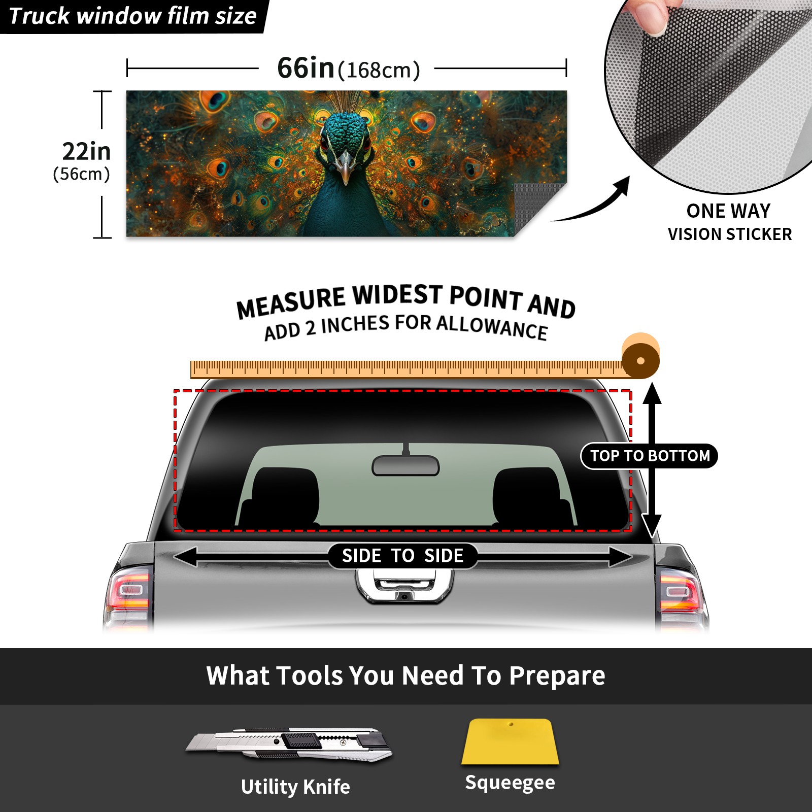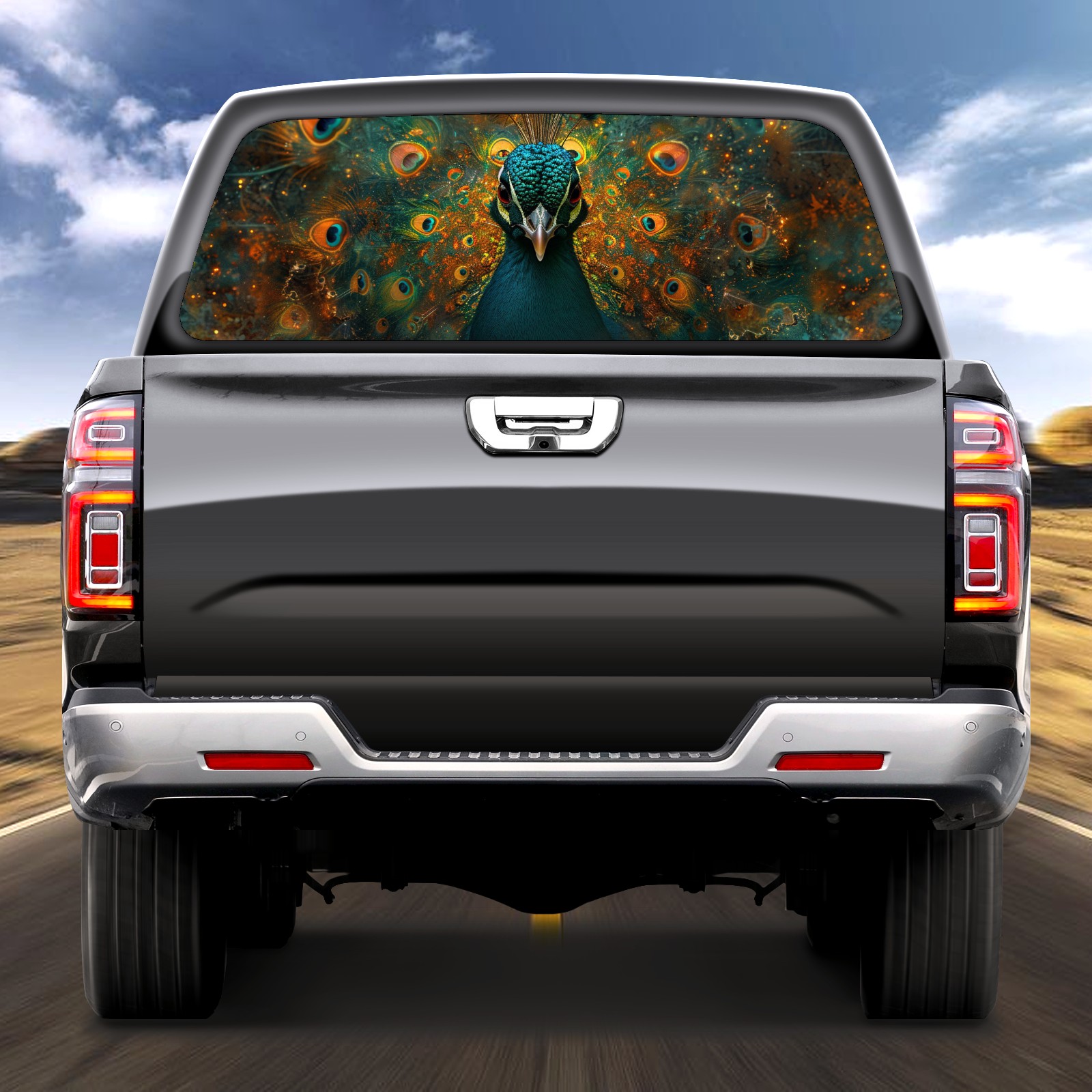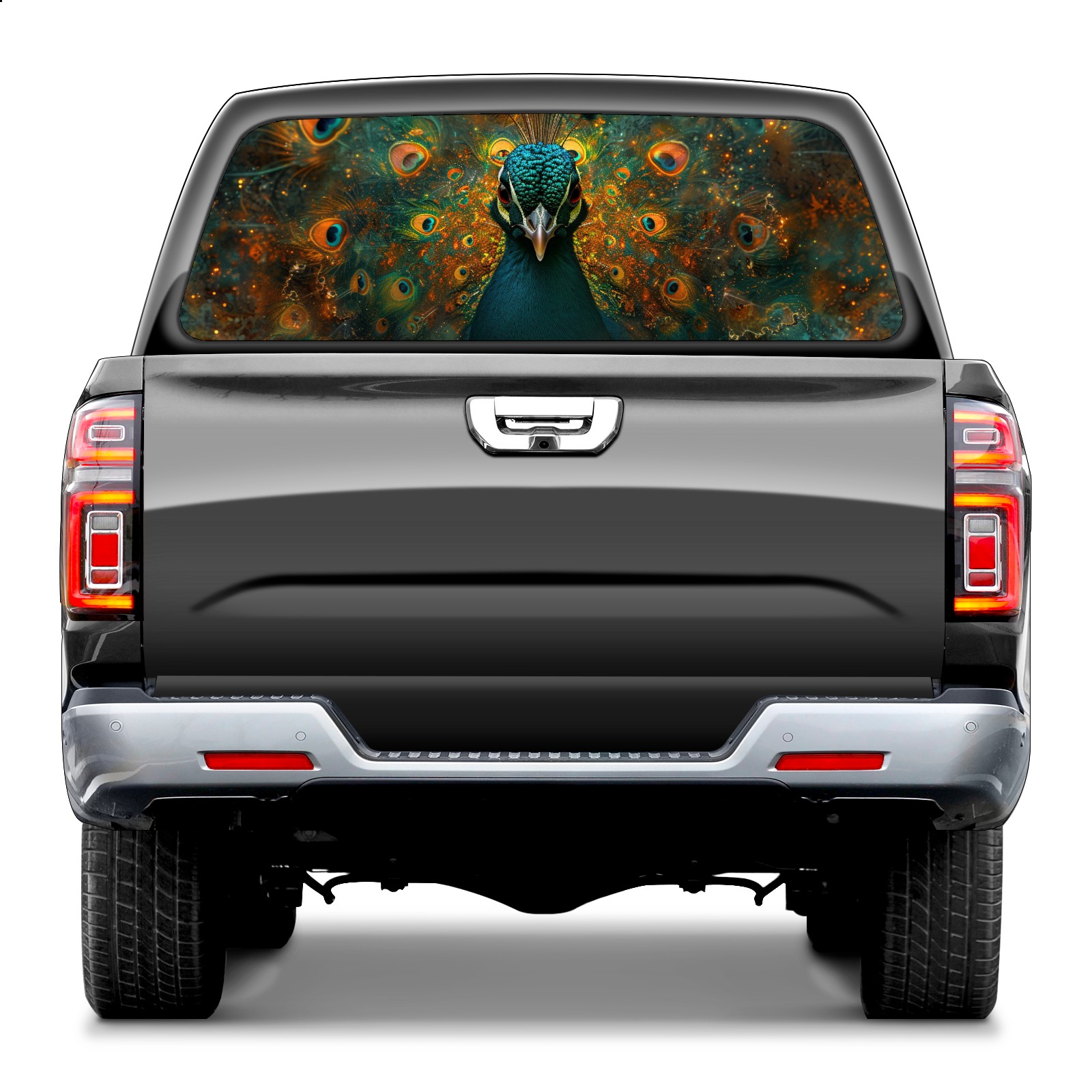 Truck Rear Window Graphics Decals Pickup Trucks Back Window Sticker Full Window Film Decal One Way Visual Waterproof Car Rear Tint Peacock (79)