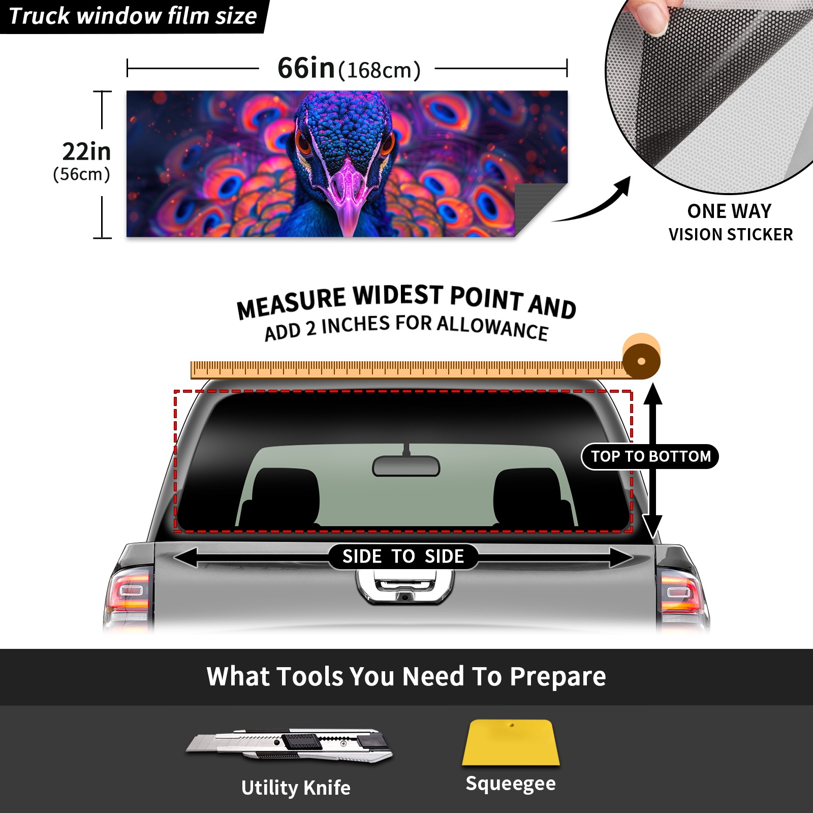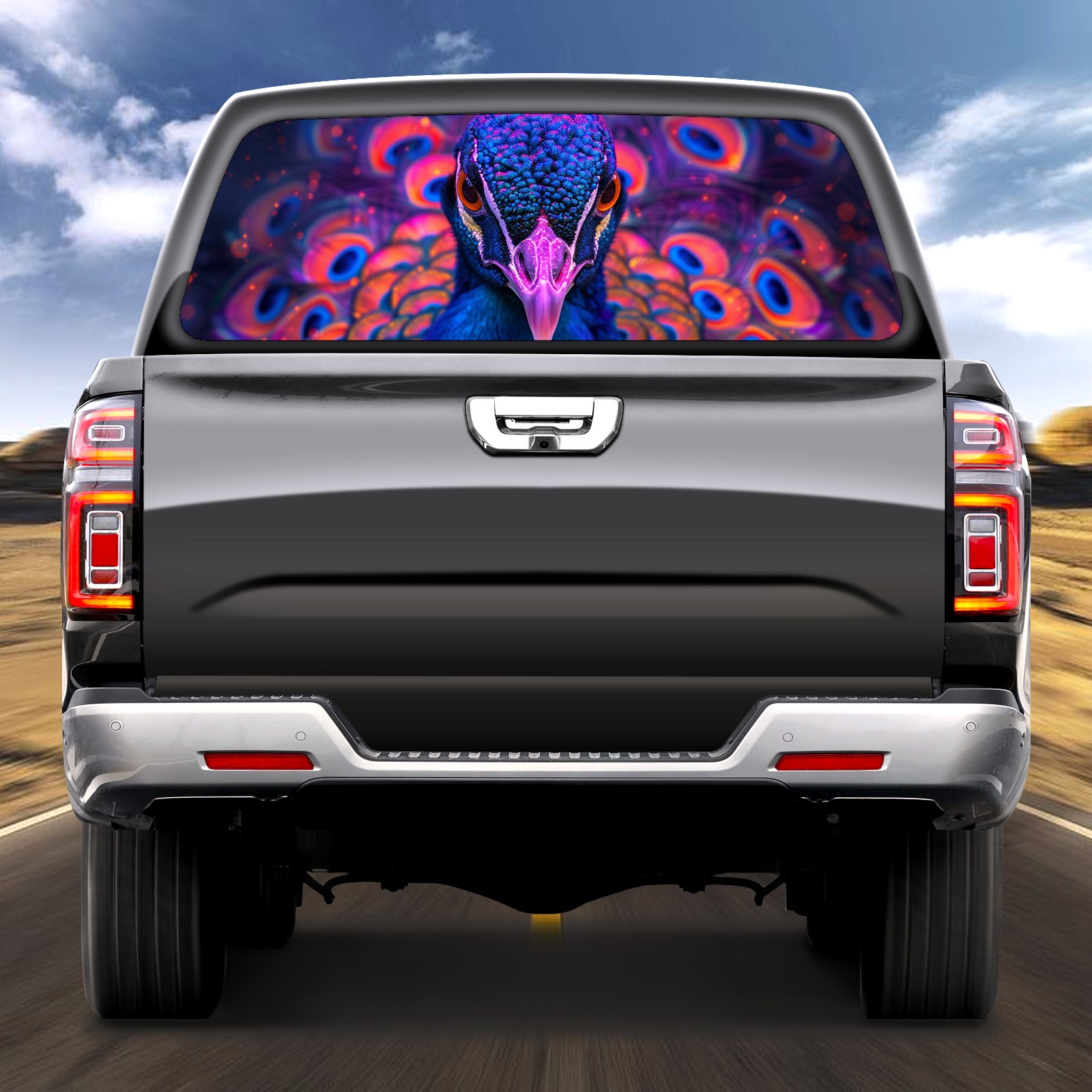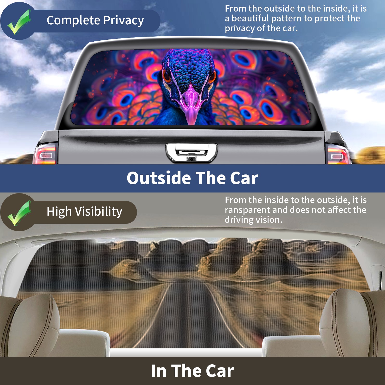 Truck Rear Window Graphics Decals Pickup Trucks Back Window Sticker Full Window Film Decal One Way Visual Waterproof Car Rear Tint Peacock (76)