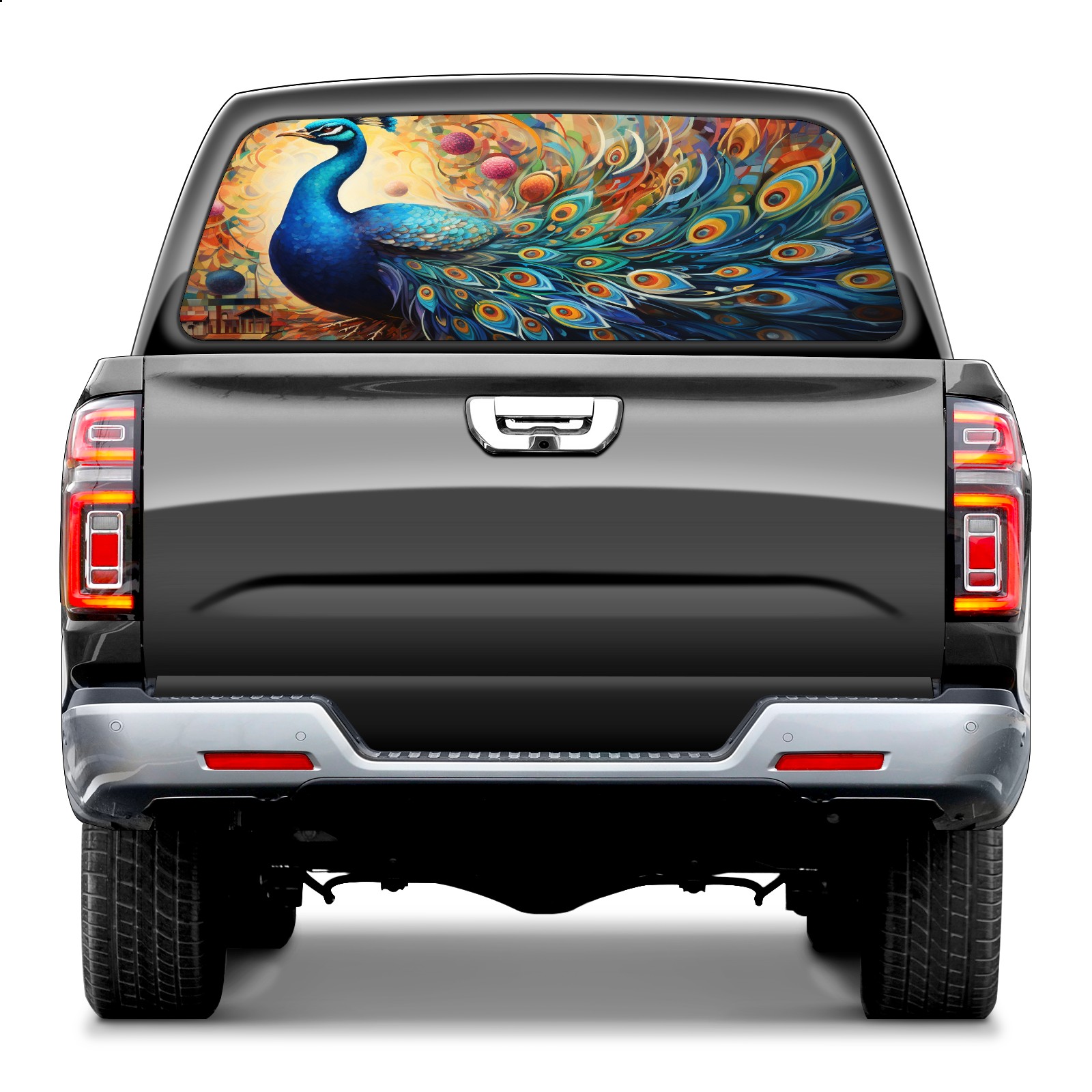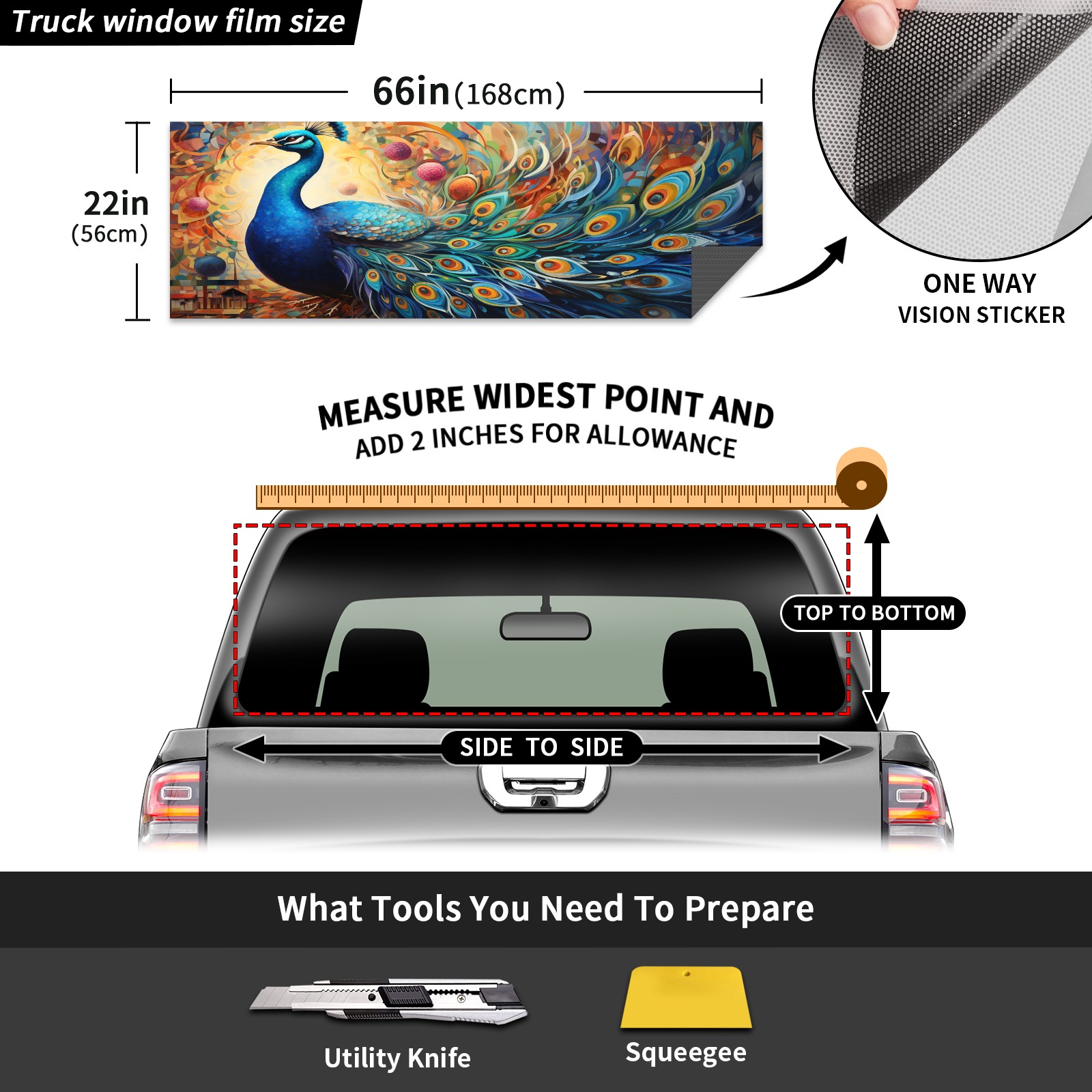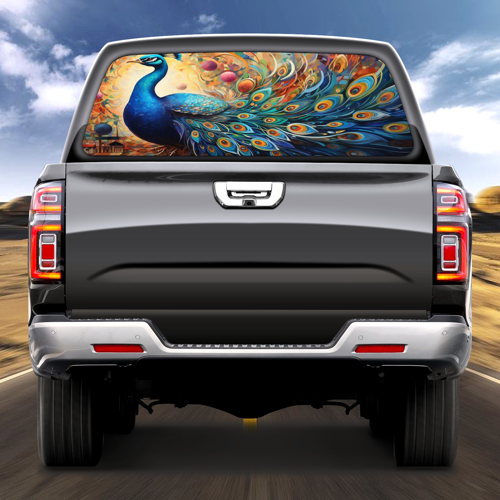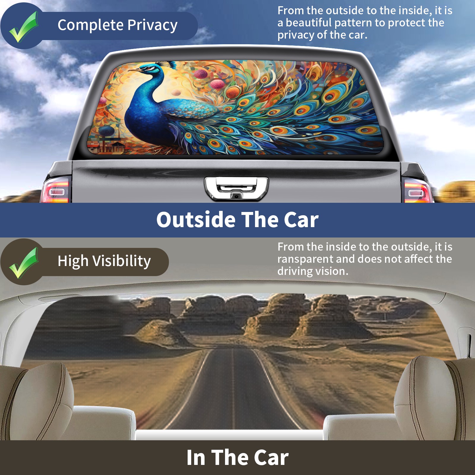Truck Rear Window Graphics Decals Pickup Trucks Back Window Sticker Full Window Film Decal One Way Visual Waterproof Car Rear Tint Peacock (4)