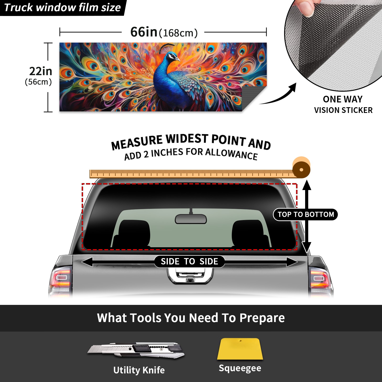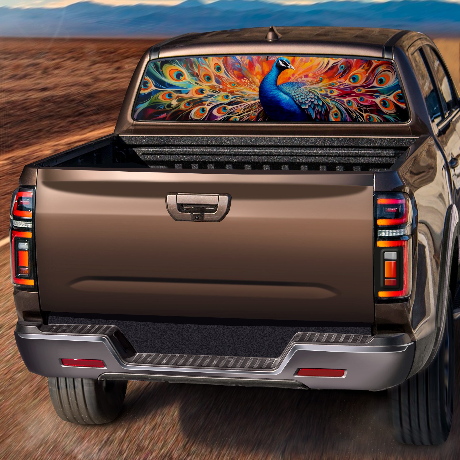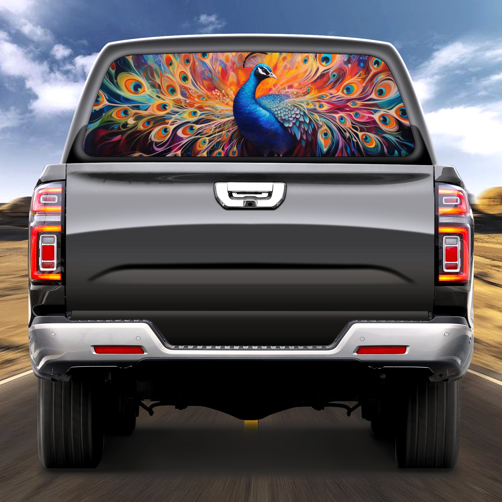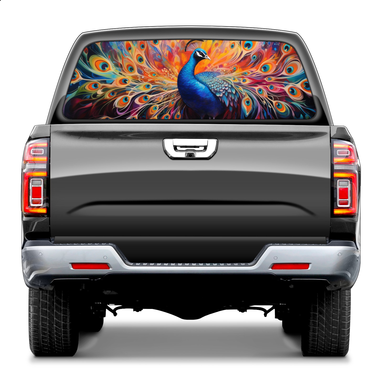 Truck Rear Window Graphics Decals Pickup Trucks Back Window Sticker Full Window Film Decal One Way Visual Waterproof Car Rear Tint Peacock (3)