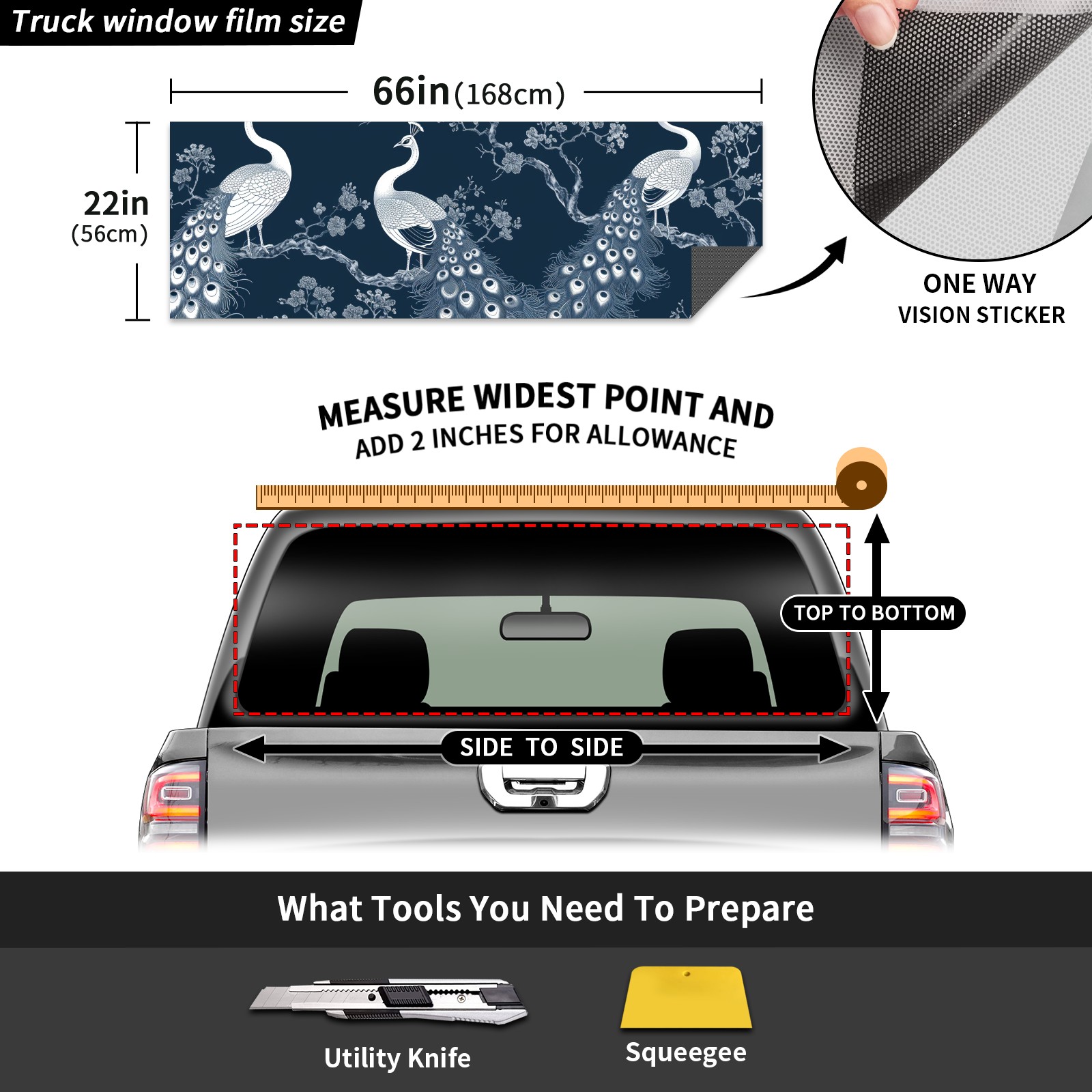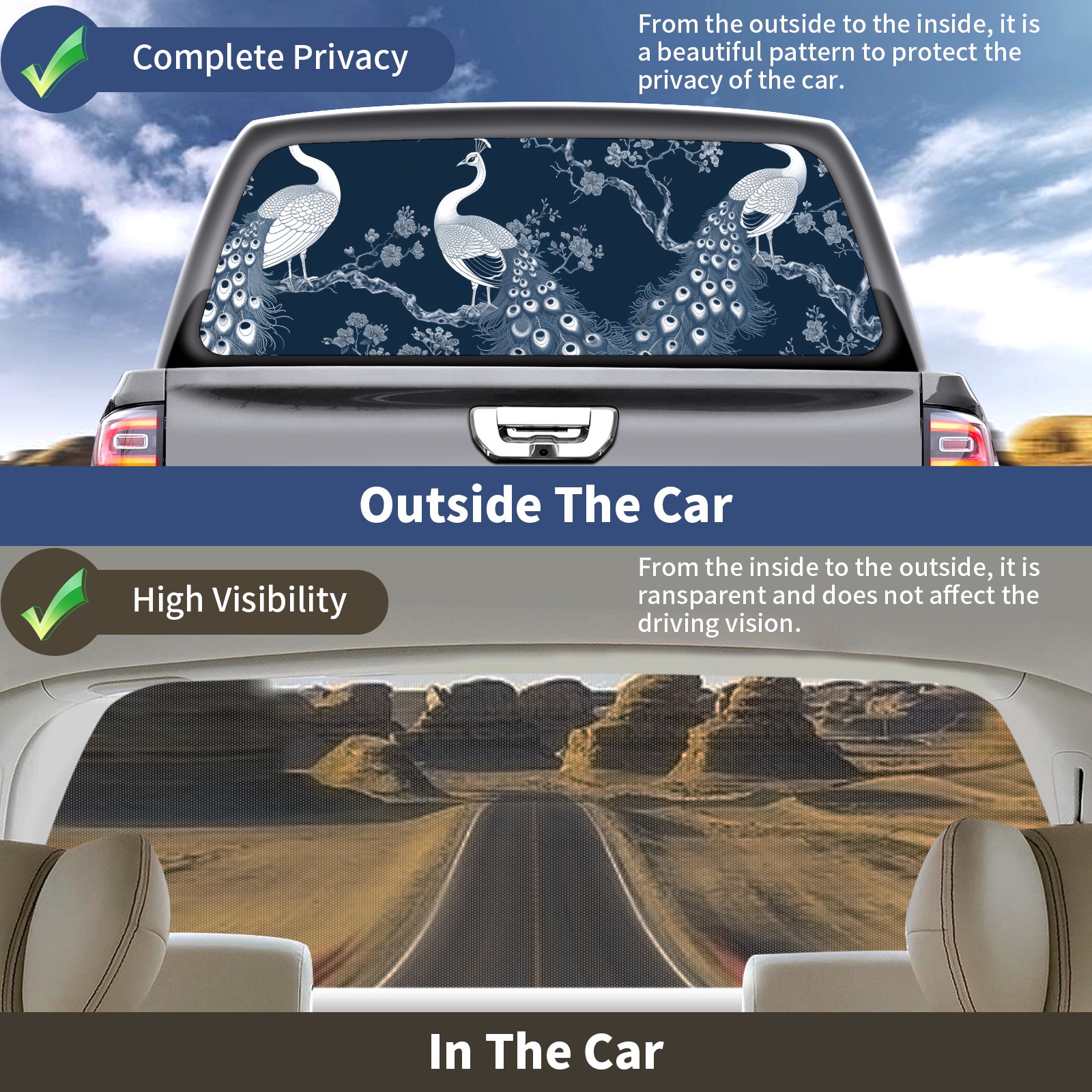 Truck Rear Window Graphics Decals Pickup Trucks Back Window Sticker Full Window Film Decal One Way Visual Waterproof Car Rear Tint Peacock (12)