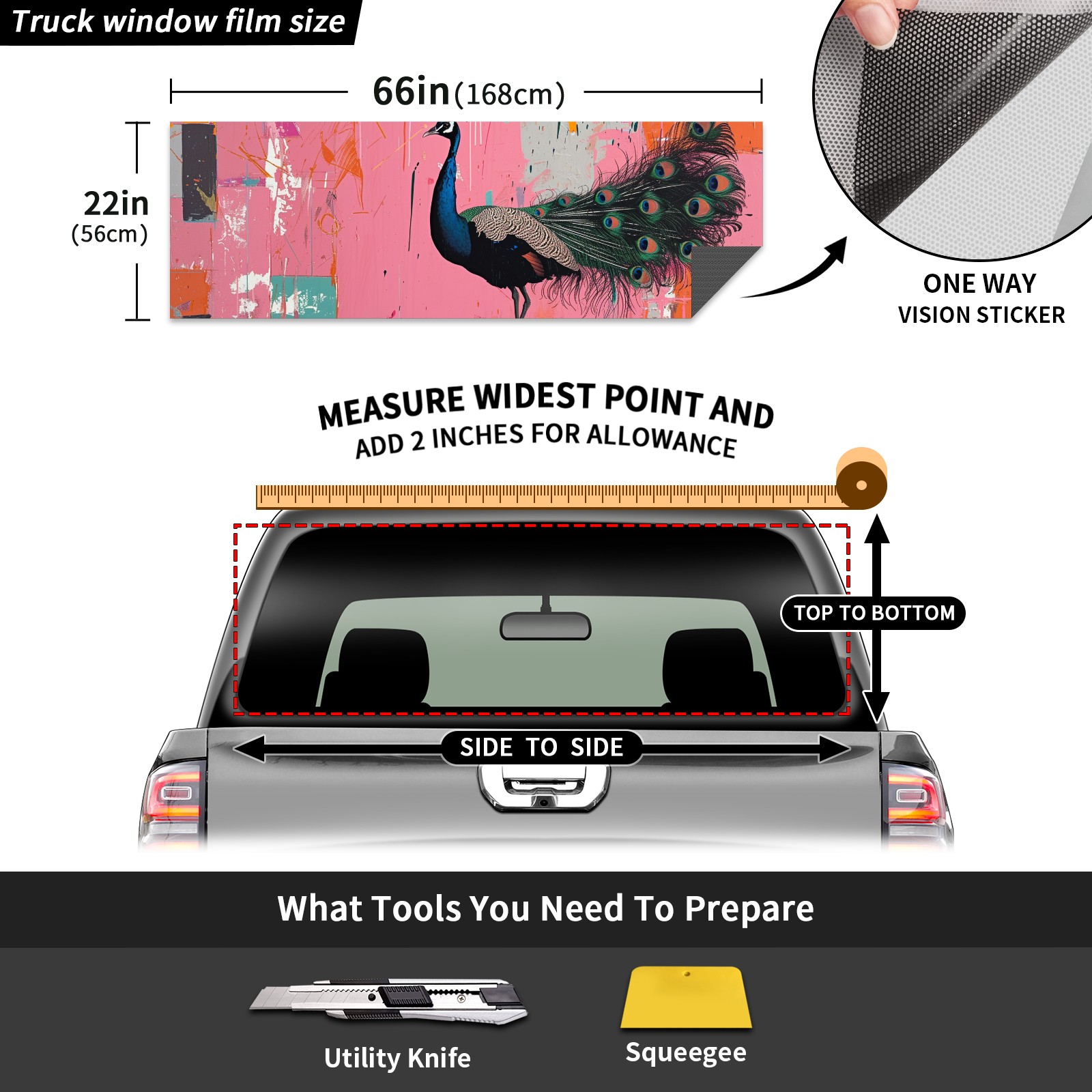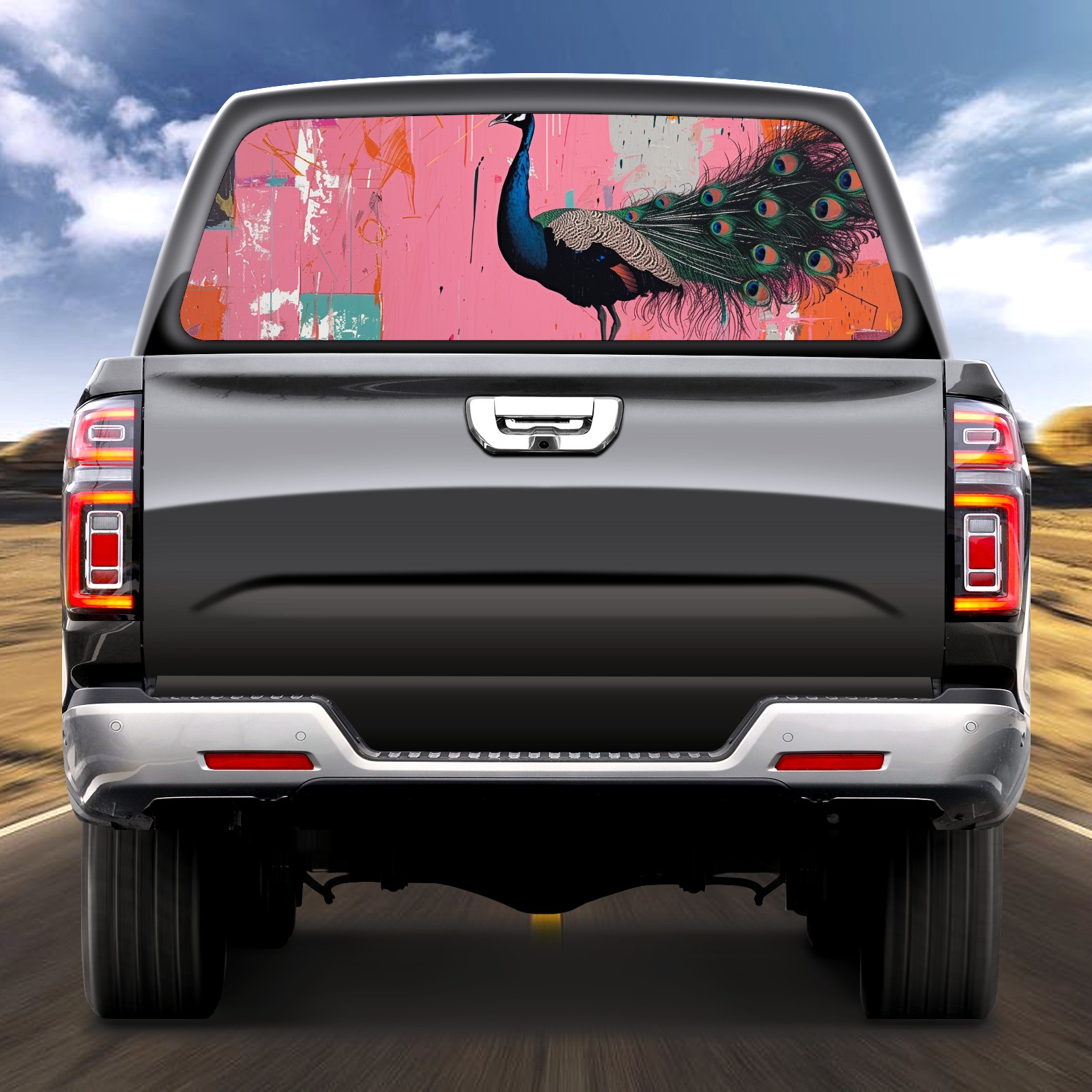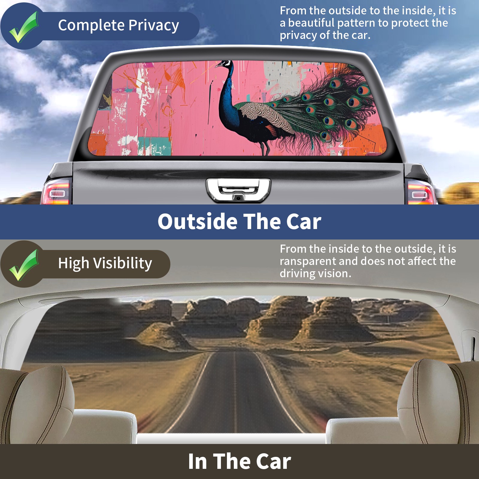 Truck Rear Window Graphics Decals Pickup Trucks Back Window Sticker Full Window Film Decal One Way Visual Waterproof Car Rear Tint Peacock (24)