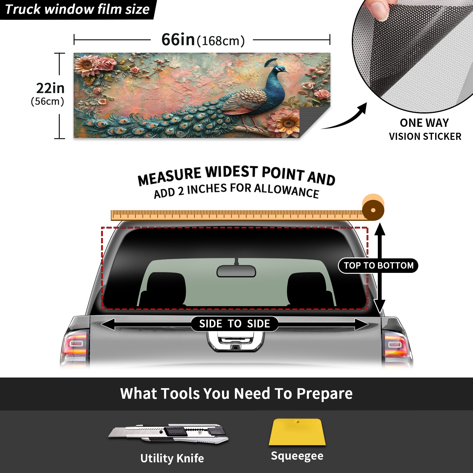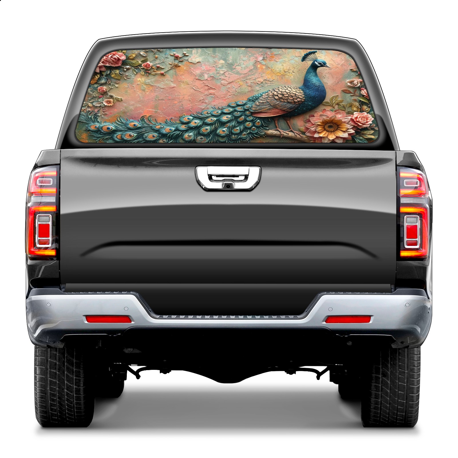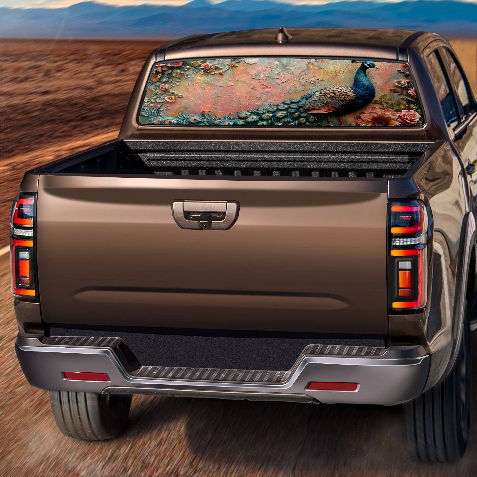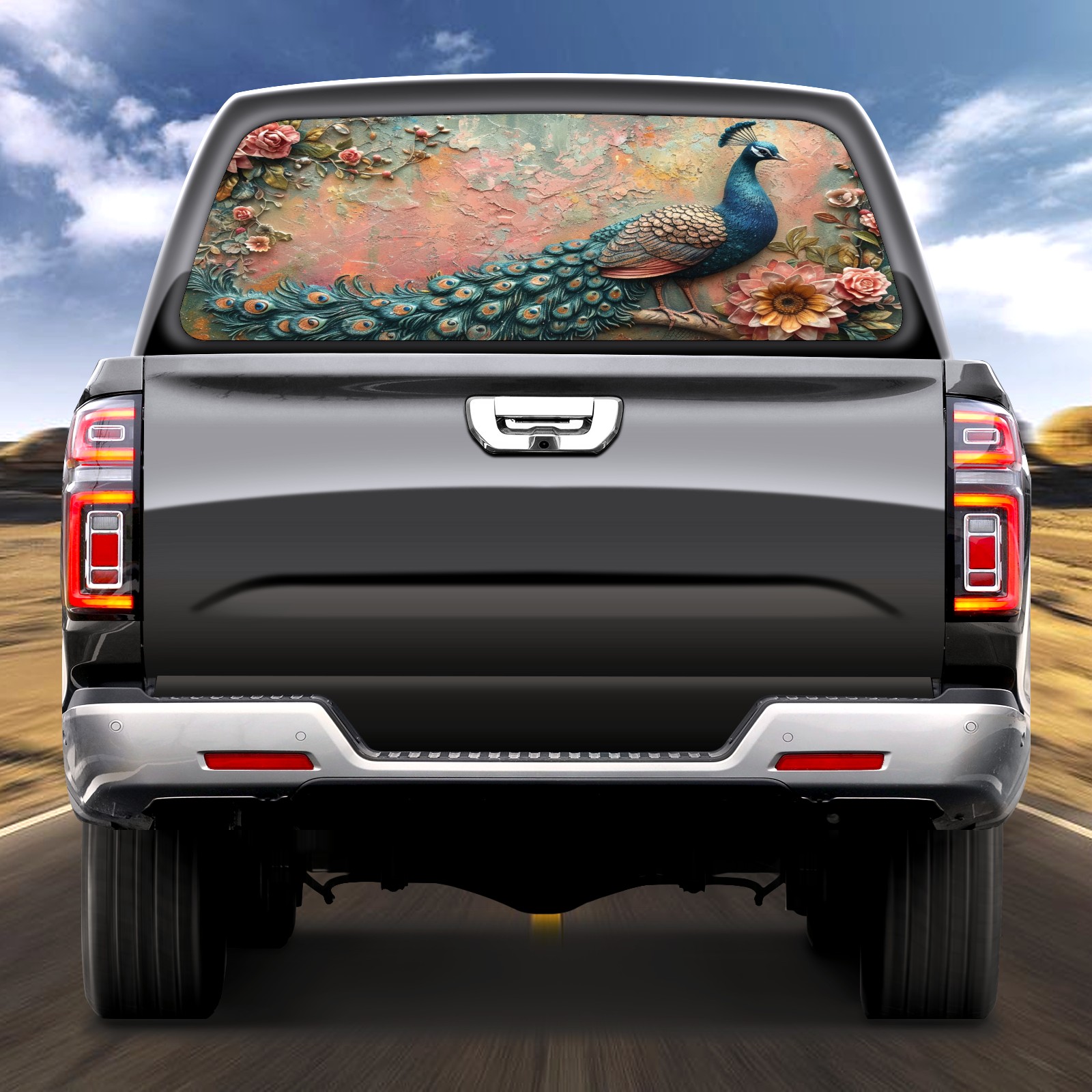 Truck Rear Window Graphics Decals Pickup Trucks Back Window Sticker Full Window Film Decal One Way Visual Waterproof Car Rear Tint Peacock (41)