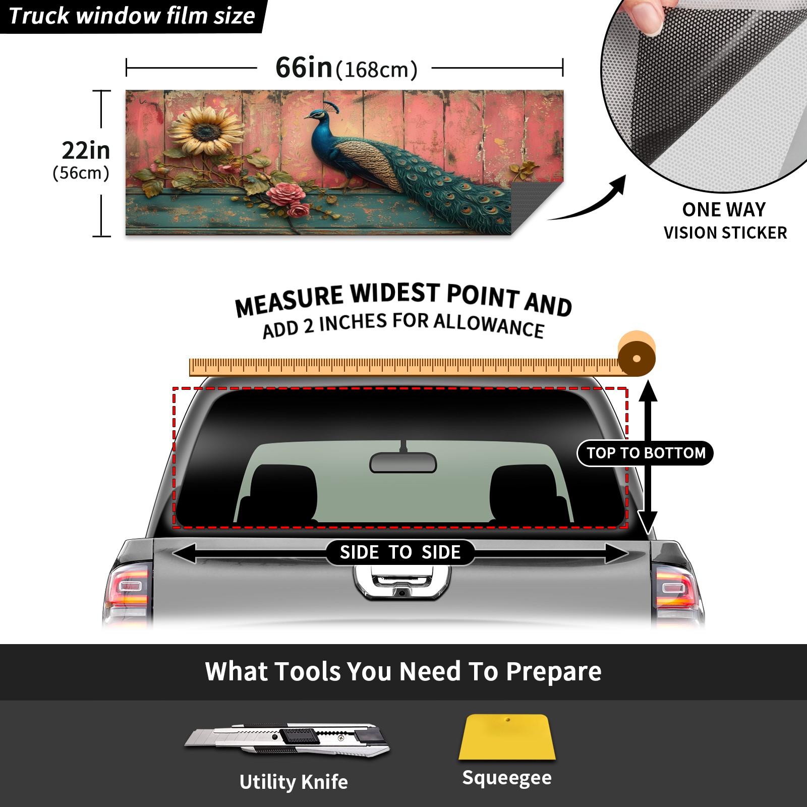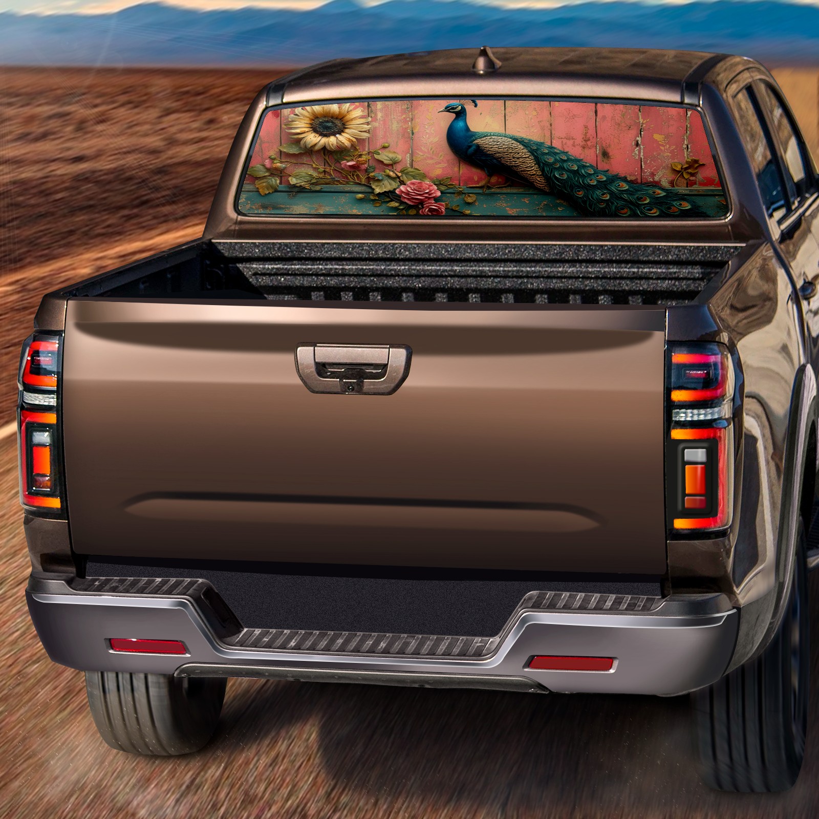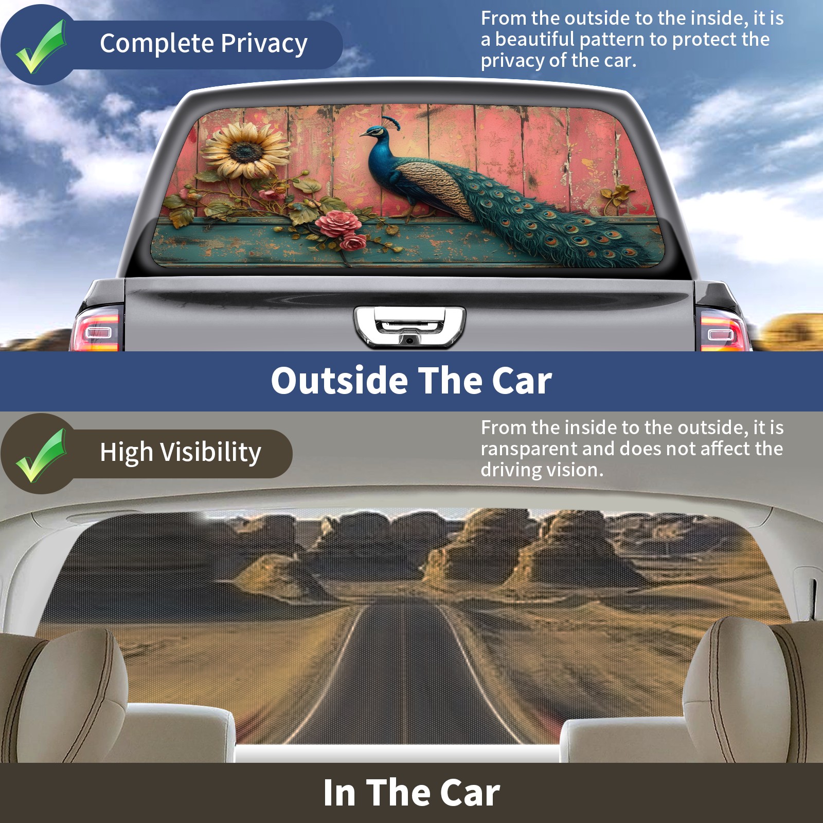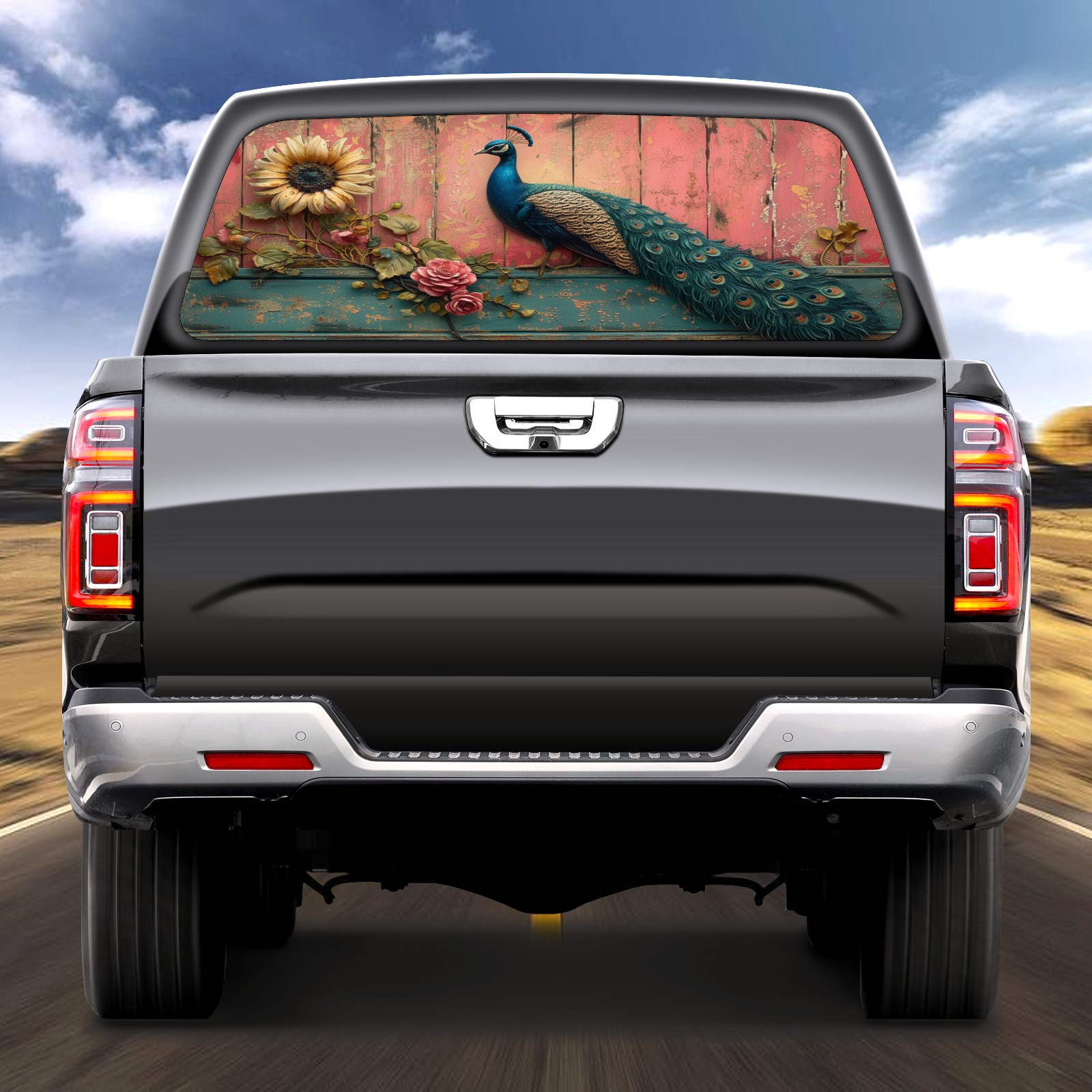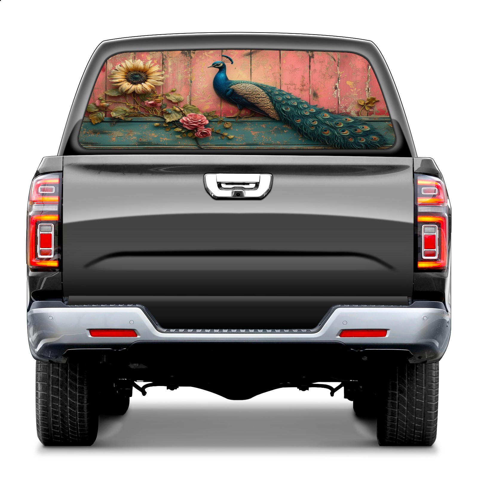 Truck Rear Window Graphics Decals Pickup Trucks Back Window Sticker Full Window Film Decal One Way Visual Waterproof Car Rear Tint Peacock (39)