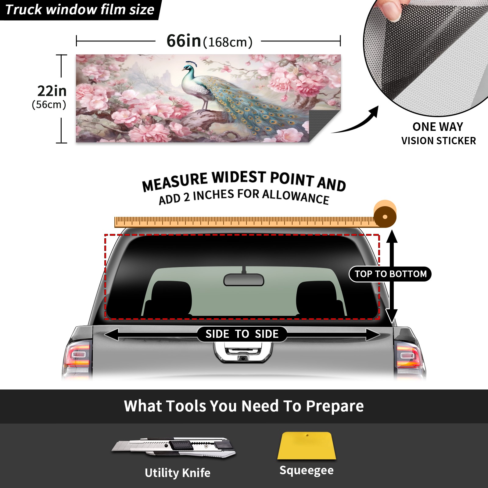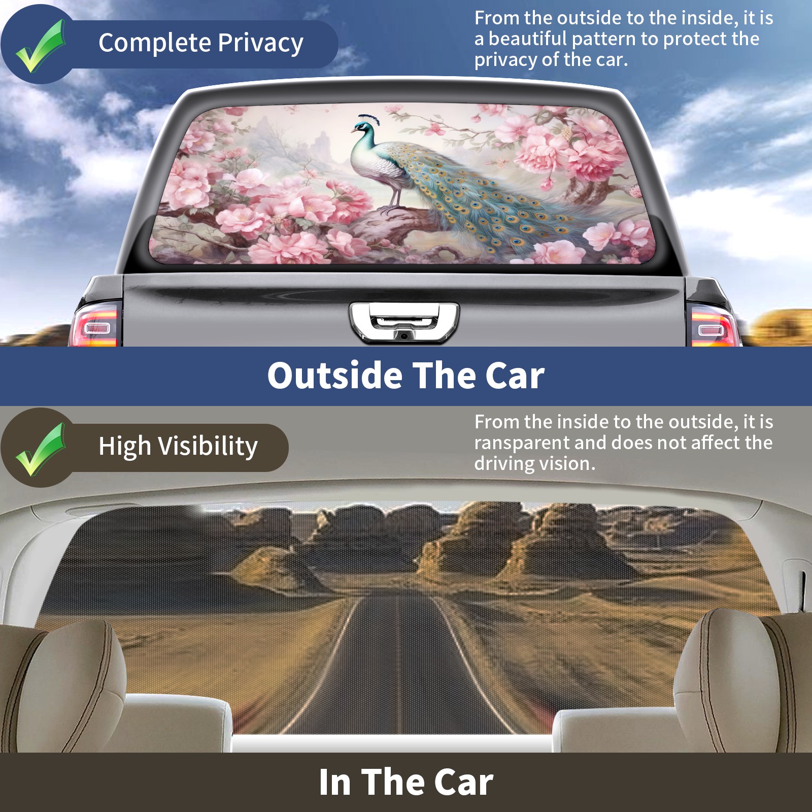 Truck Rear Window Graphics Decals Pickup Trucks Back Window Sticker Full Window Film Decal One Way Visual Waterproof Car Rear Tint Peacock (43)