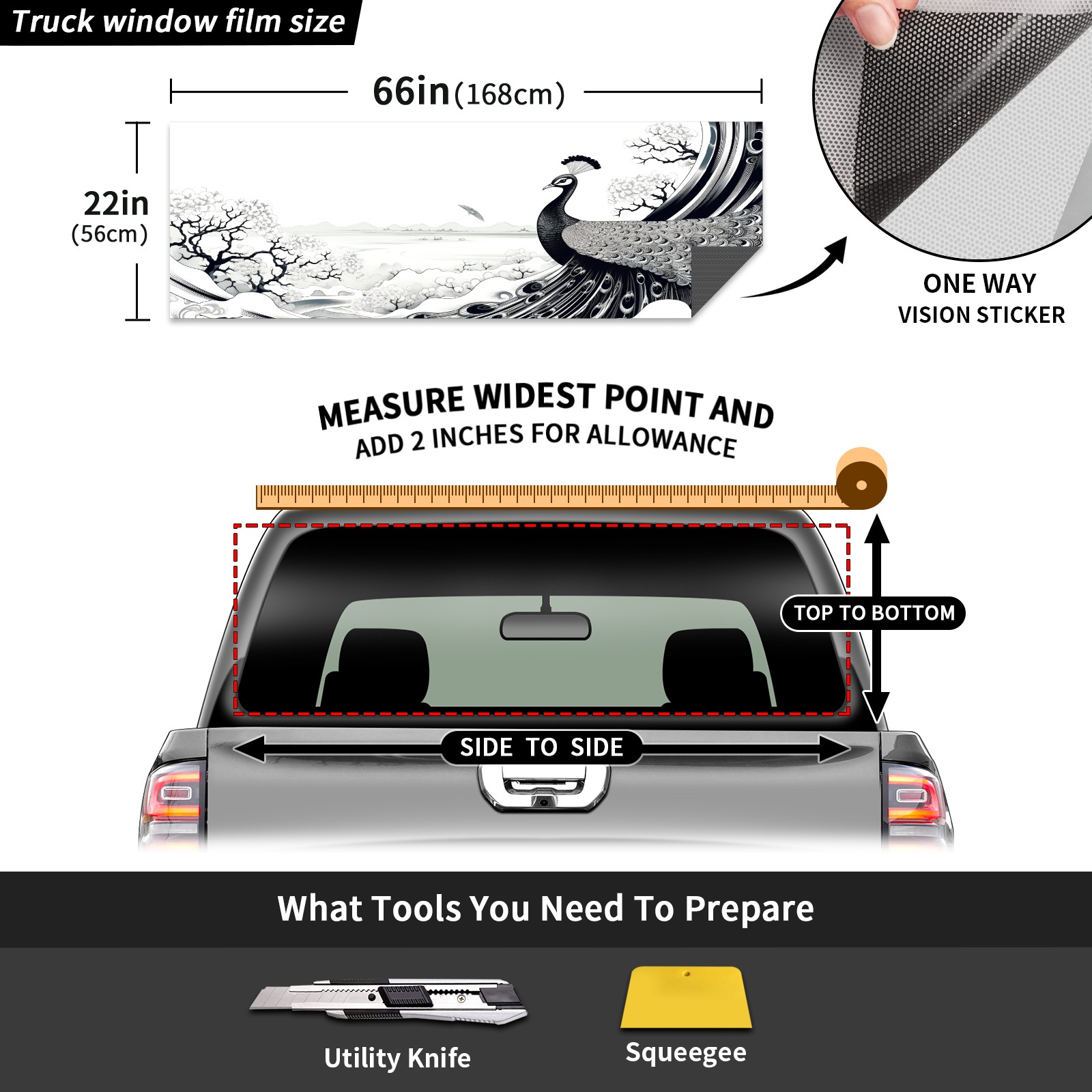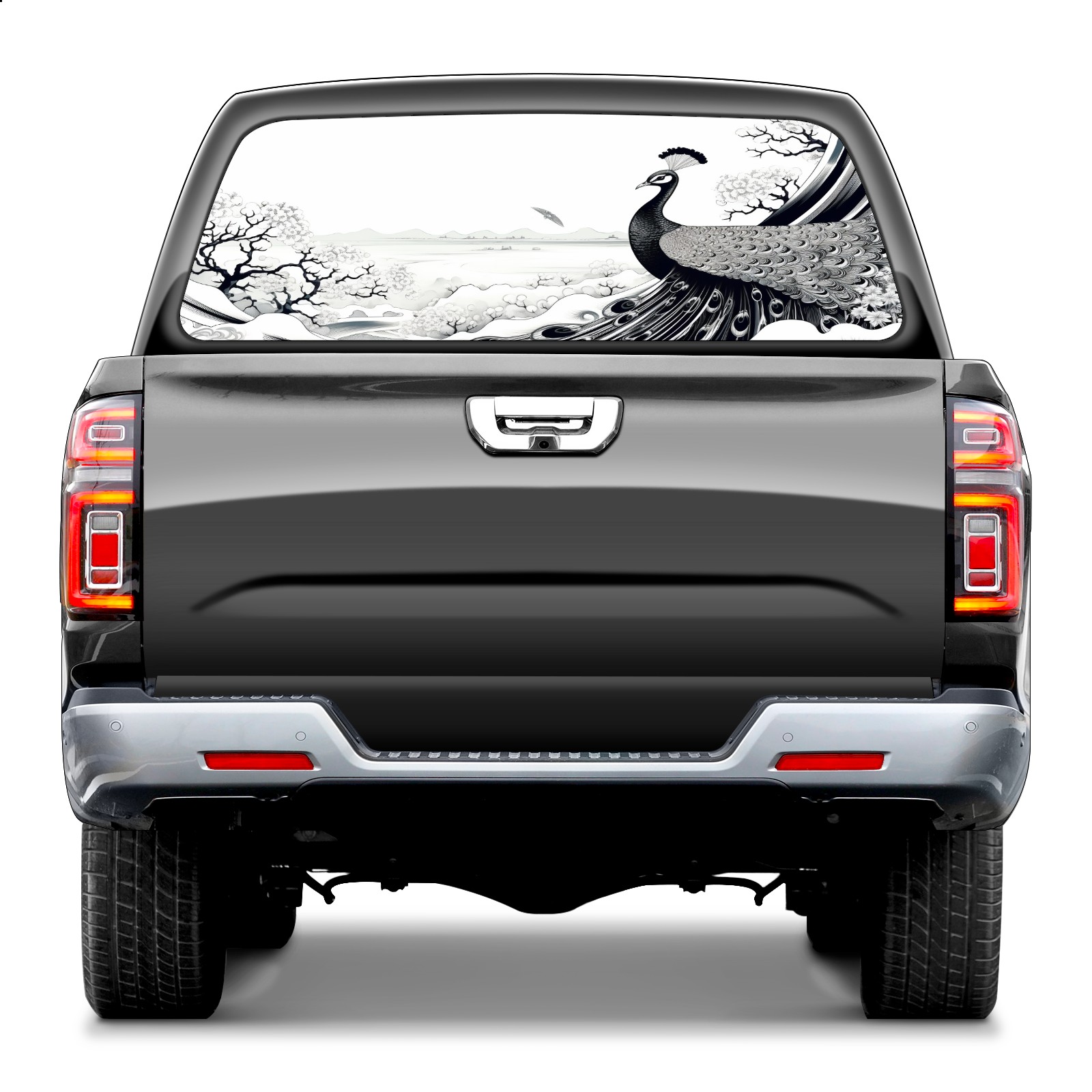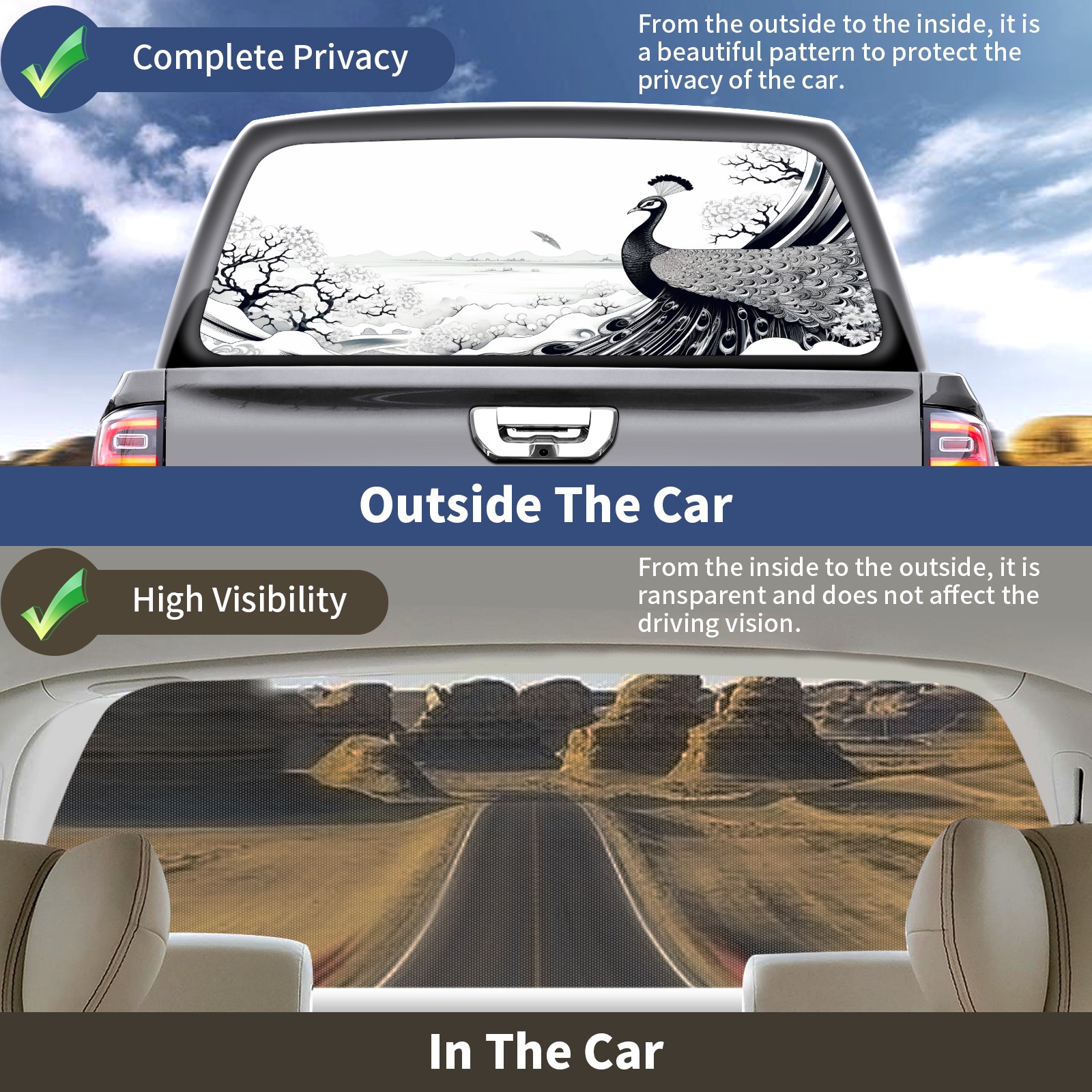 Truck Rear Window Graphics Decals Pickup Trucks Back Window Sticker Full Window Film Decal One Way Visual Waterproof Car Rear Tint Peacock (45)