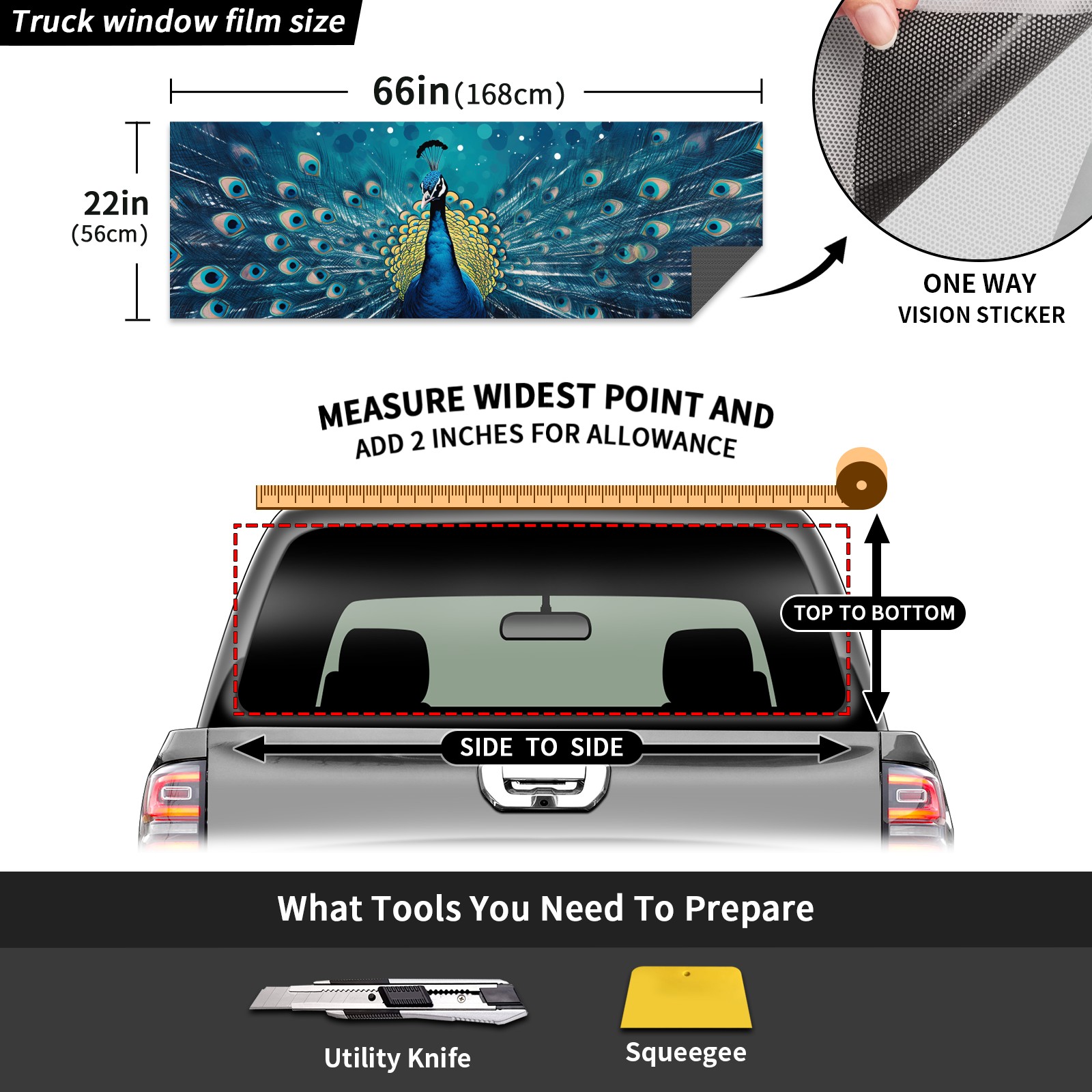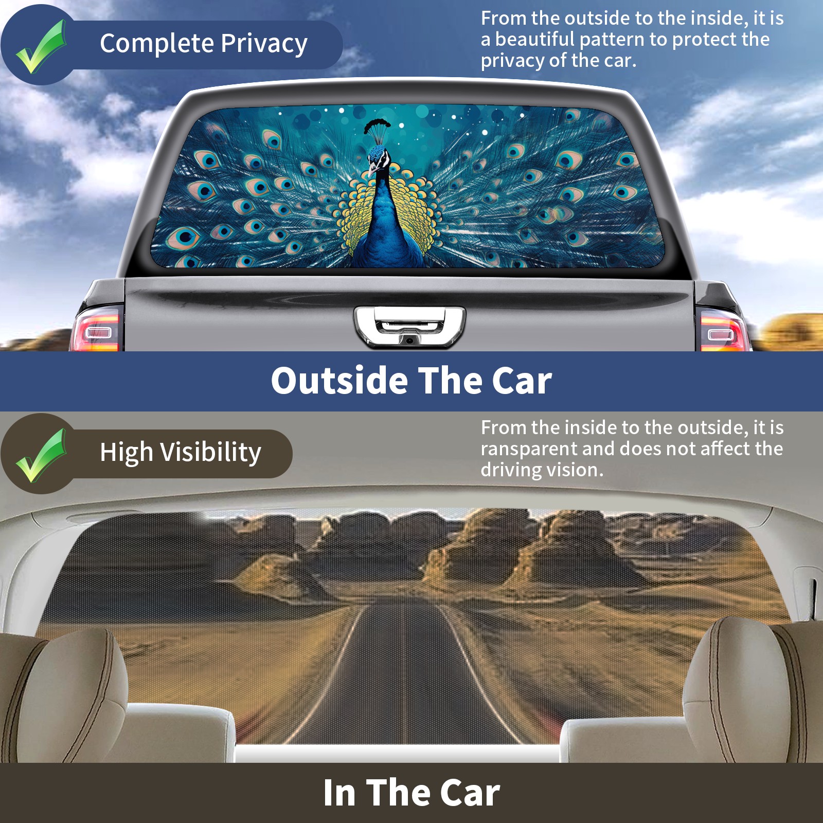 Truck Rear Window Graphics Decals Pickup Trucks Back Window Sticker Full Window Film Decal One Way Visual Waterproof Car Rear Tint Peacock (51)