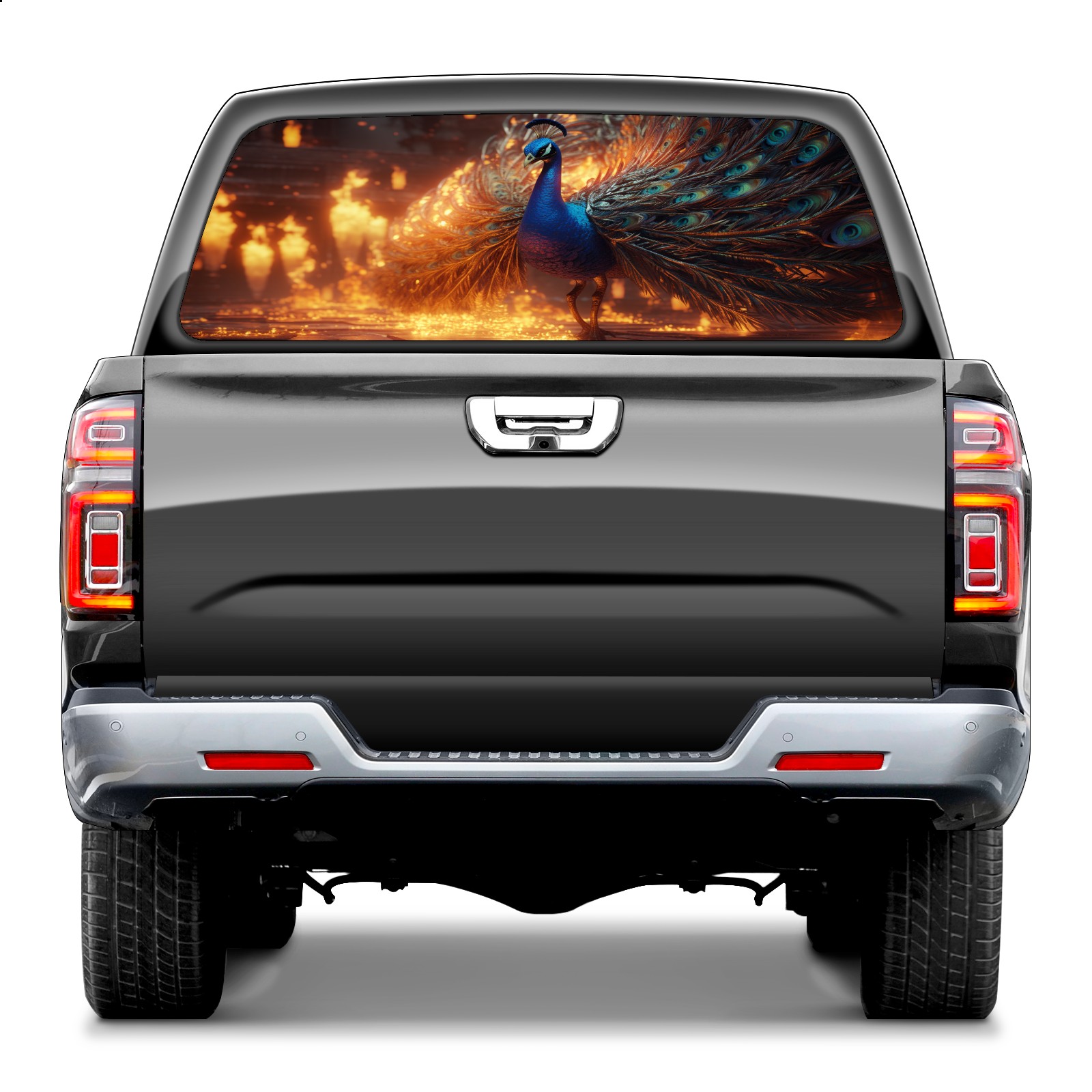 Truck Rear Window Graphics Decals Pickup Trucks Back Window Sticker Full Window Film Decal One Way Visual Waterproof Car Rear Tint Peacock (61)