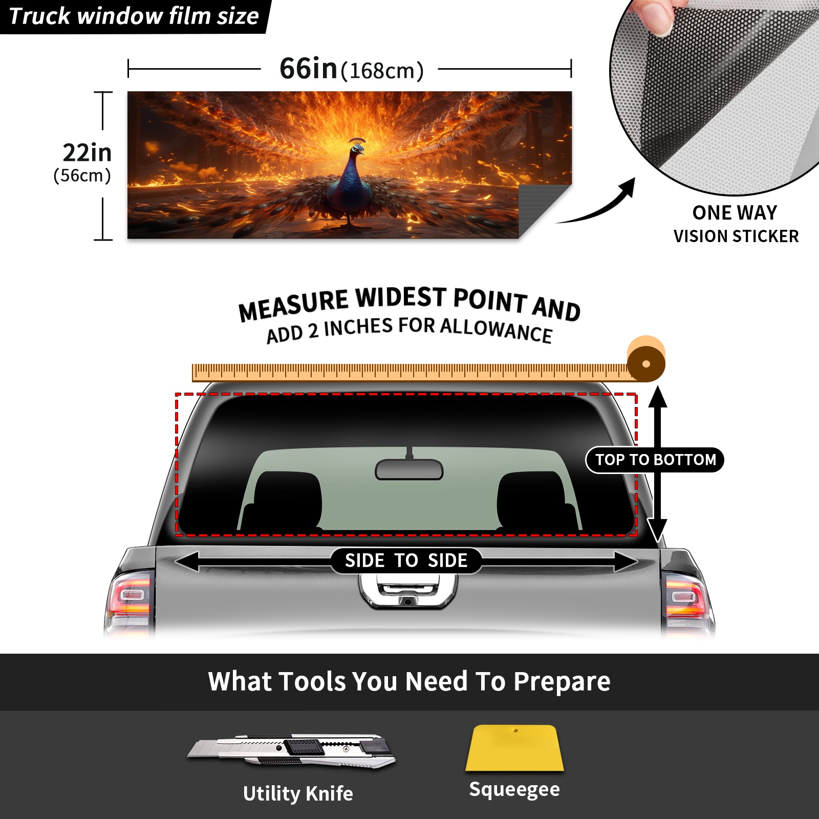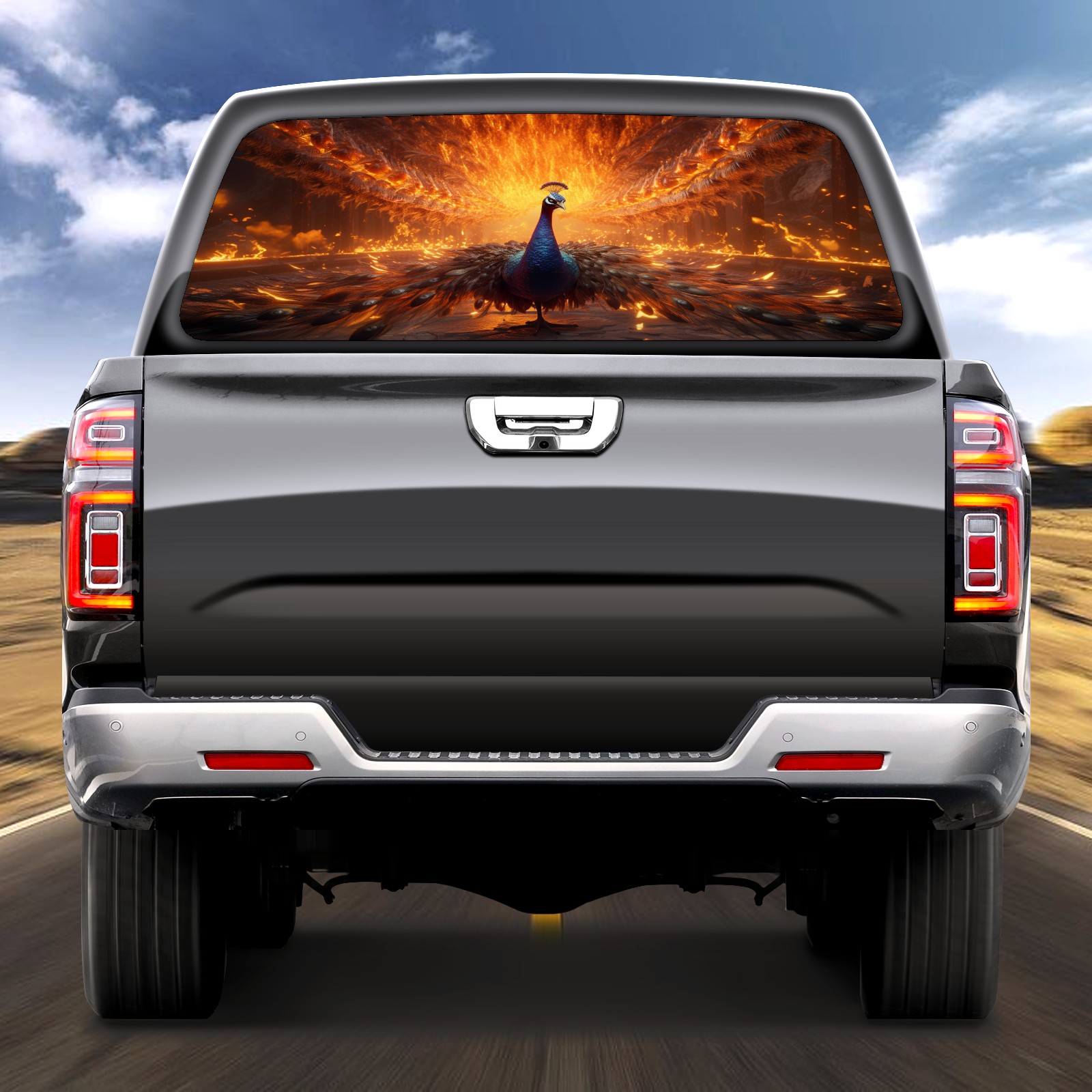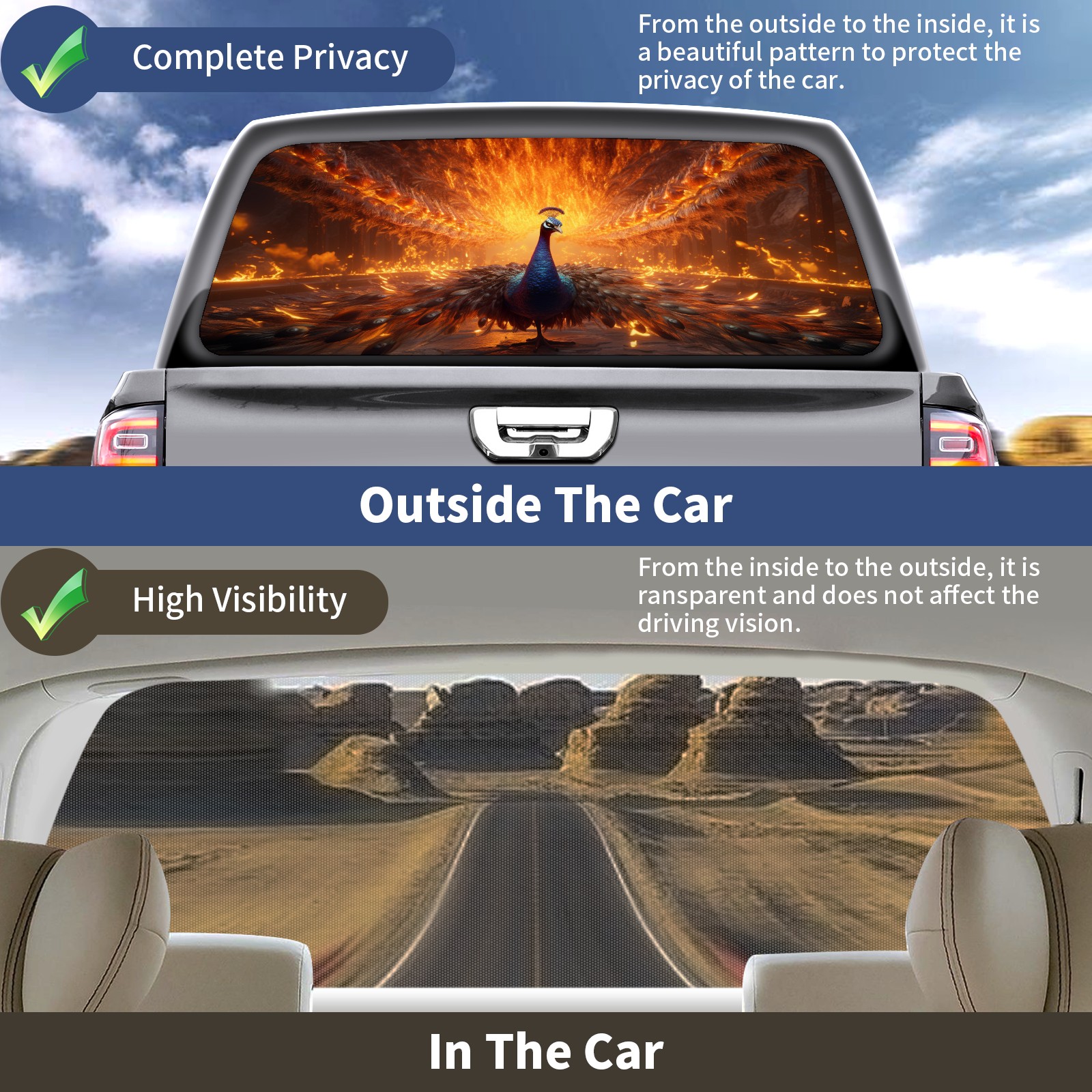 Truck Rear Window Graphics Decals Pickup Trucks Back Window Sticker Full Window Film Decal One Way Visual Waterproof Car Rear Tint Peacock (60)
