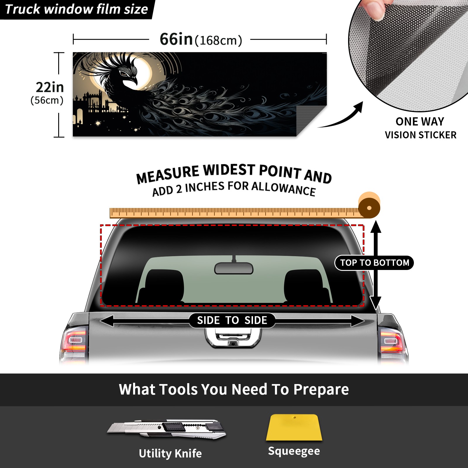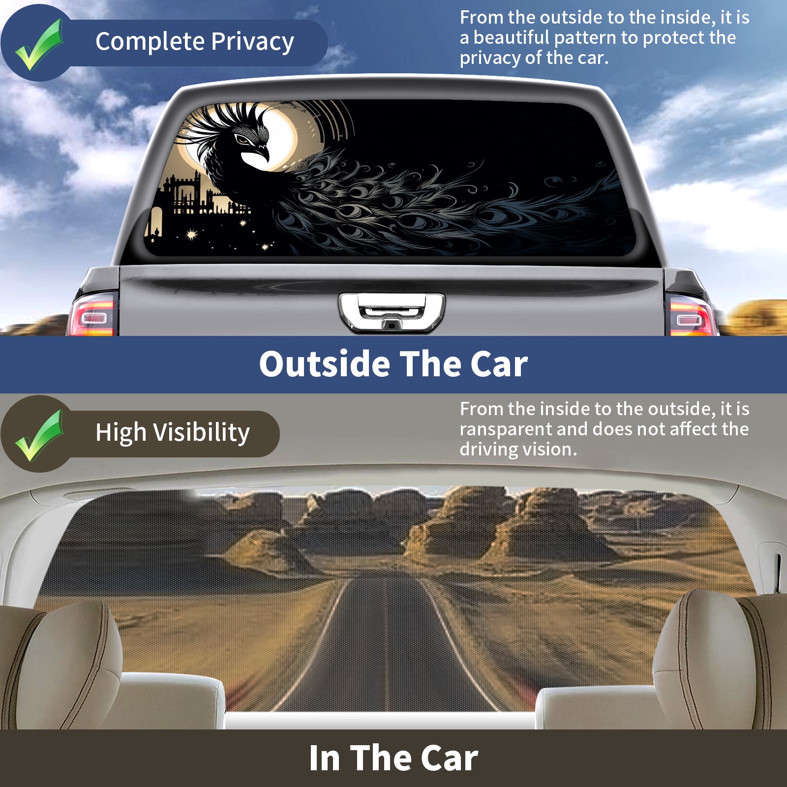 Truck Rear Window Graphics Decals Pickup Trucks Back Window Sticker Full Window Film Decal One Way Visual Waterproof Car Rear Tint Peacock (55)