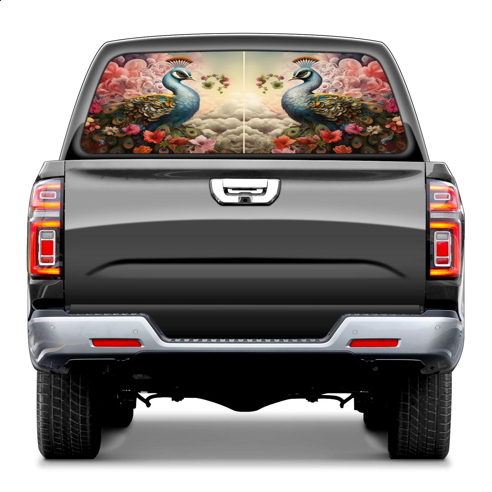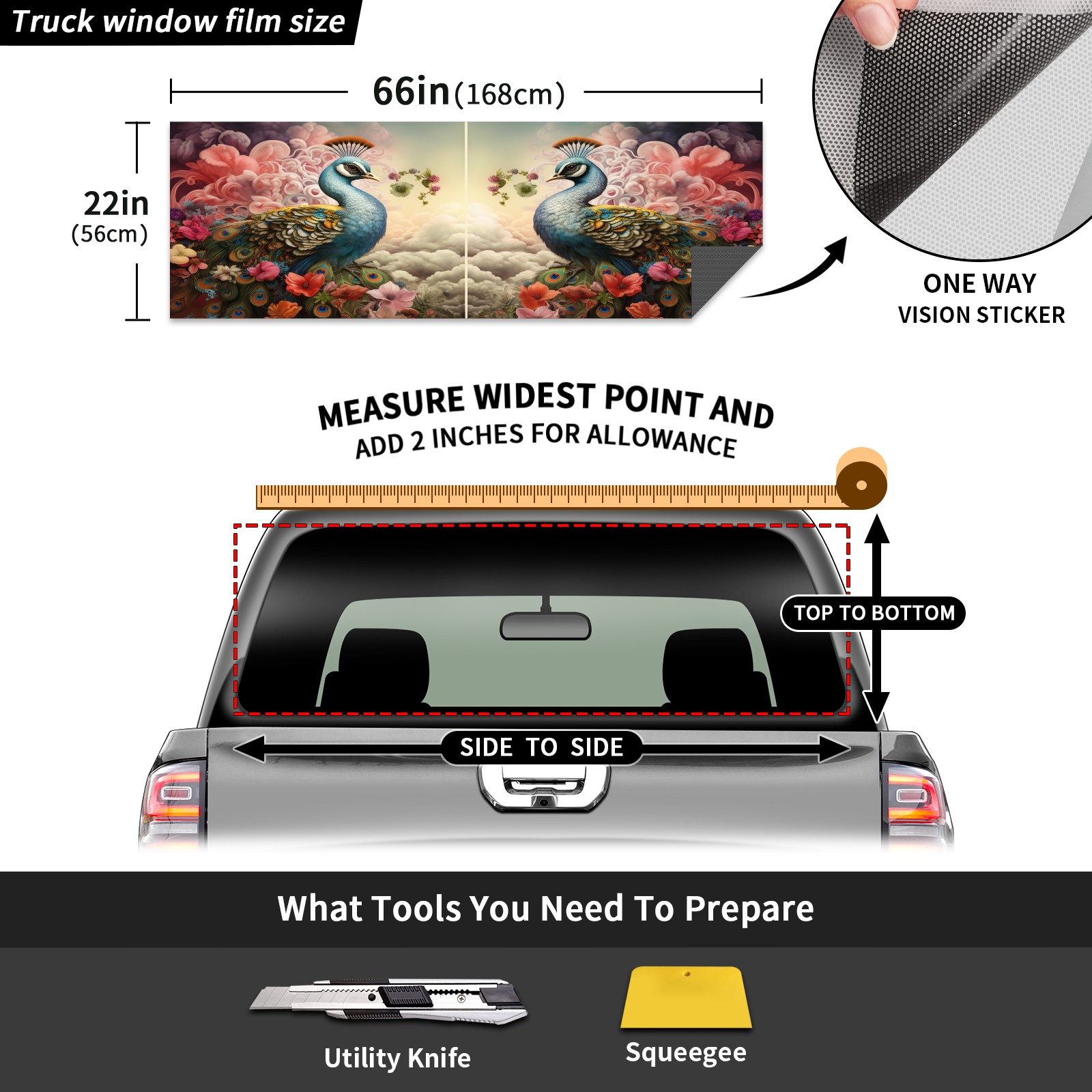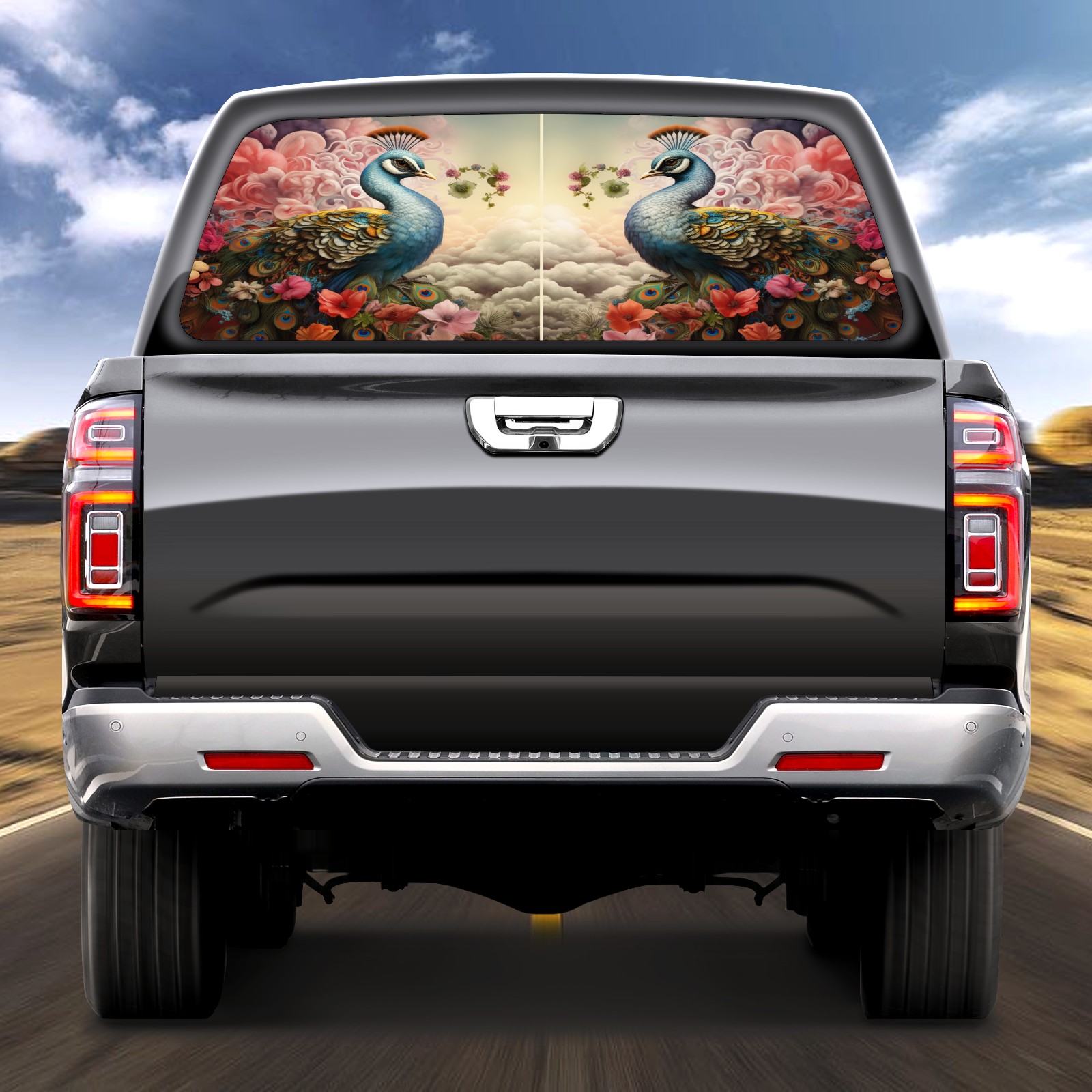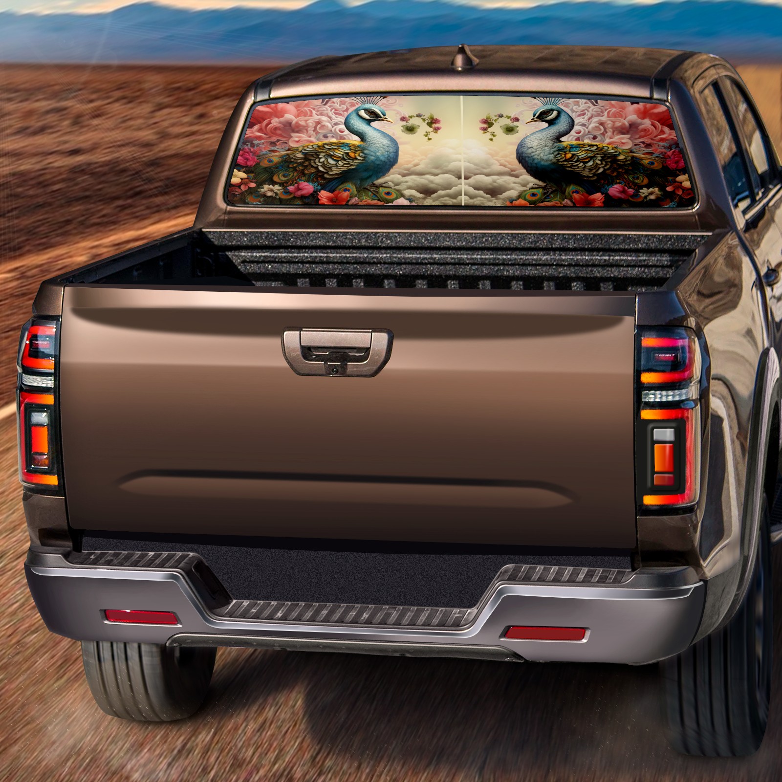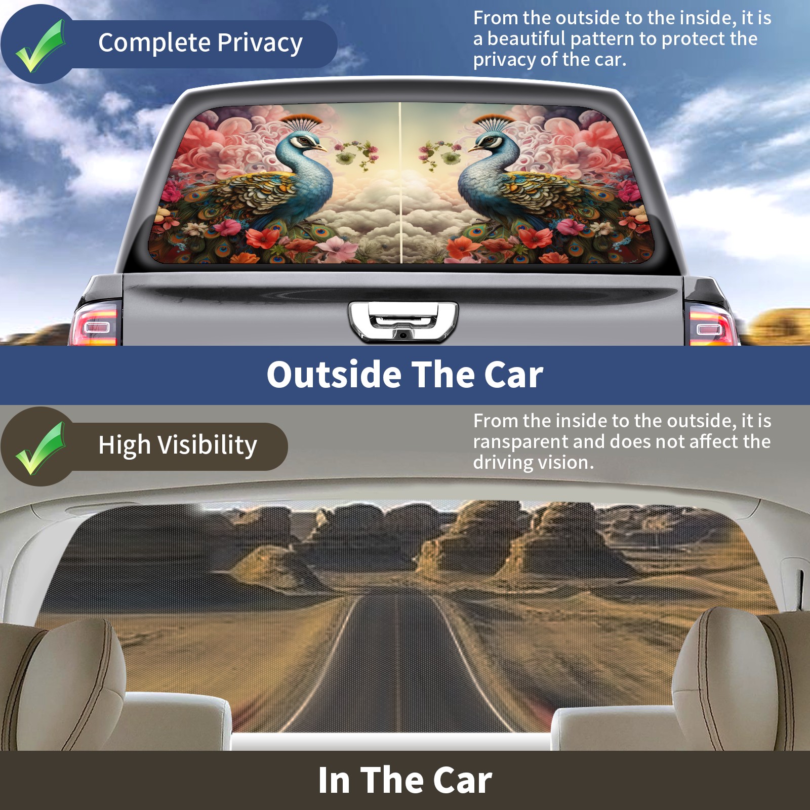 Truck Rear Window Graphics Decals Pickup Trucks Back Window Sticker Full Window Film Decal One Way Visual Waterproof Car Rear Tint Peacock (71)