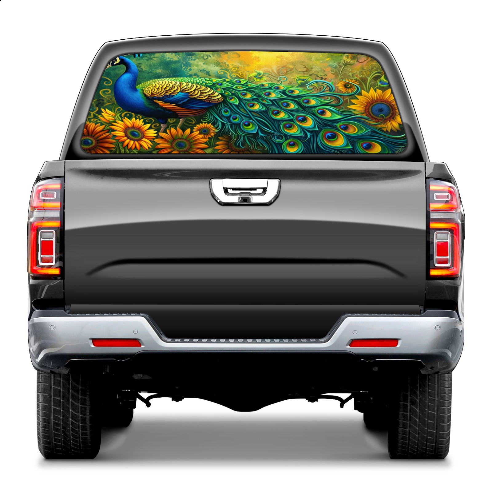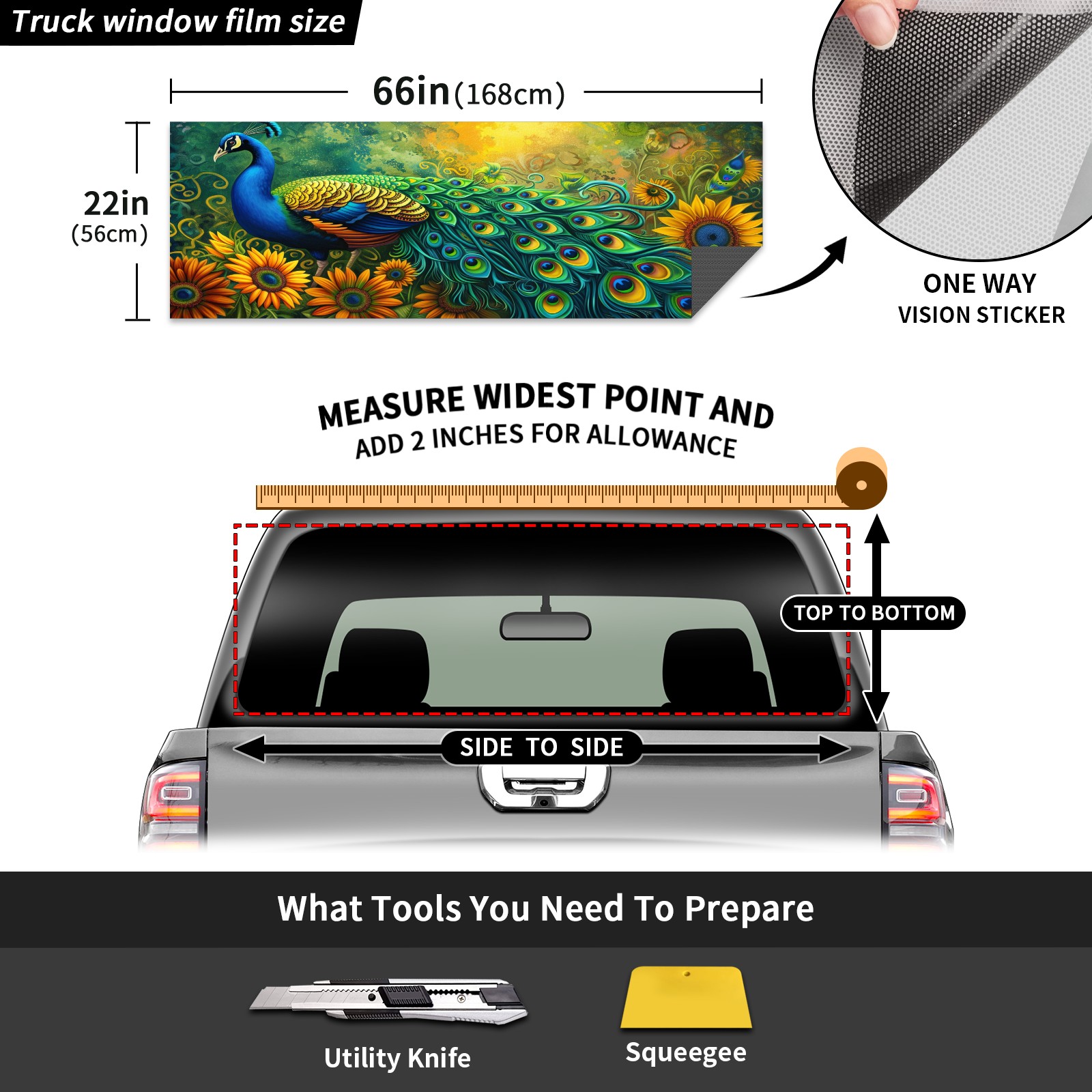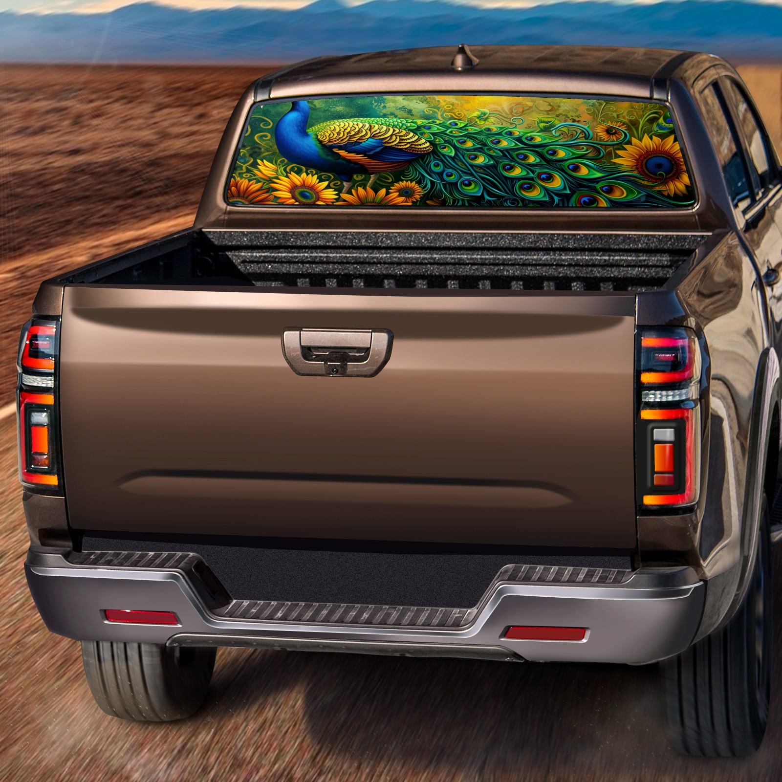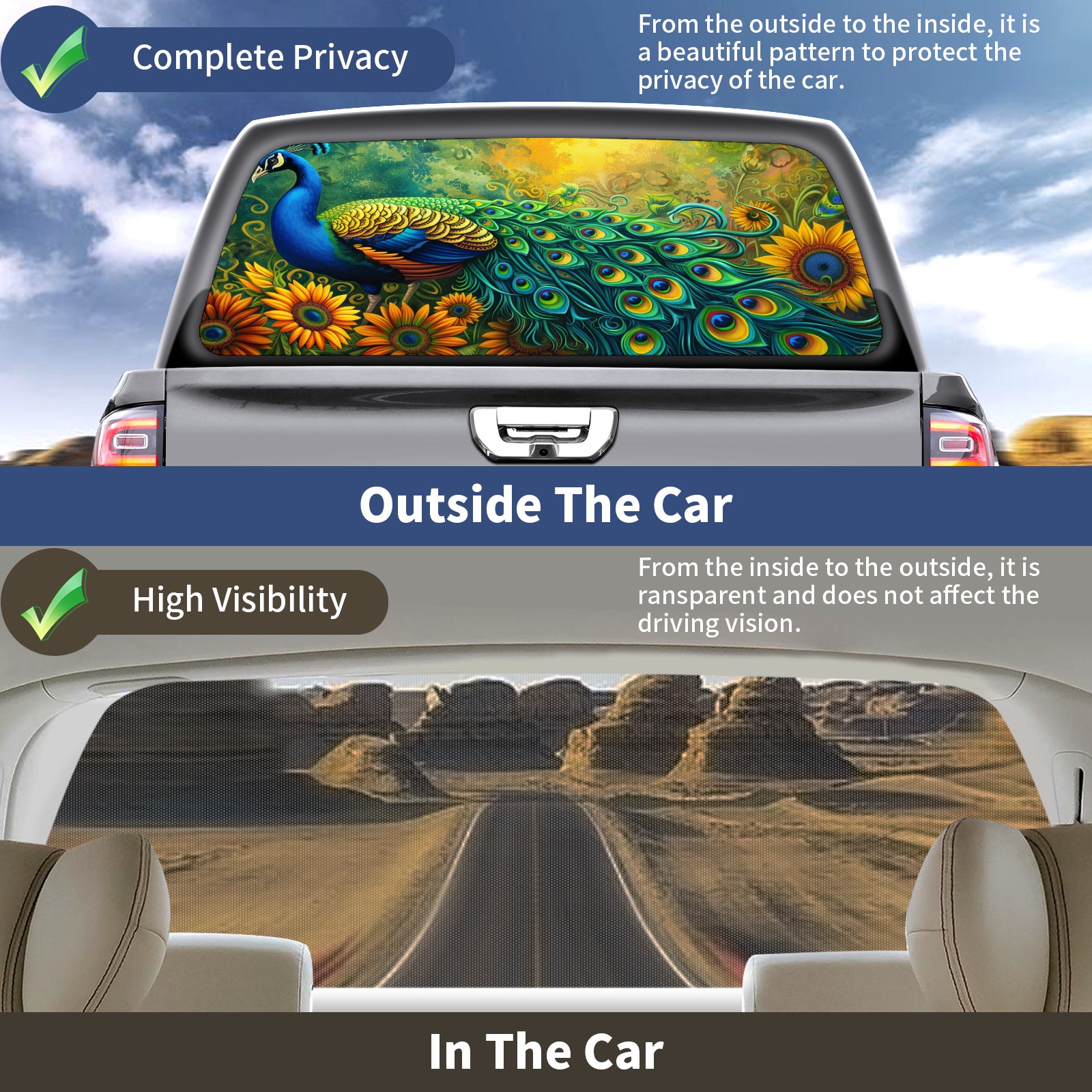 Truck Rear Window Graphics Decals Pickup Trucks Back Window Sticker Full Window Film Decal One Way Visual Waterproof Car Rear Tint Peacock (74)