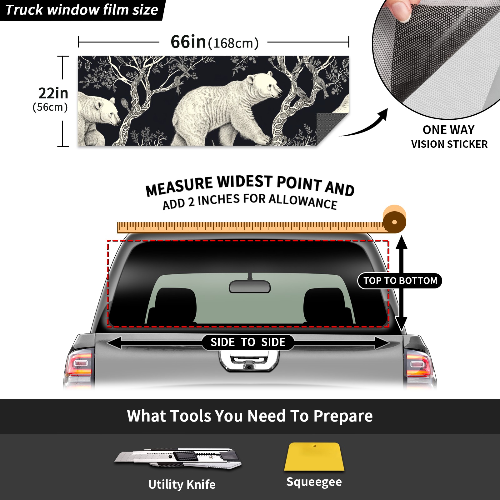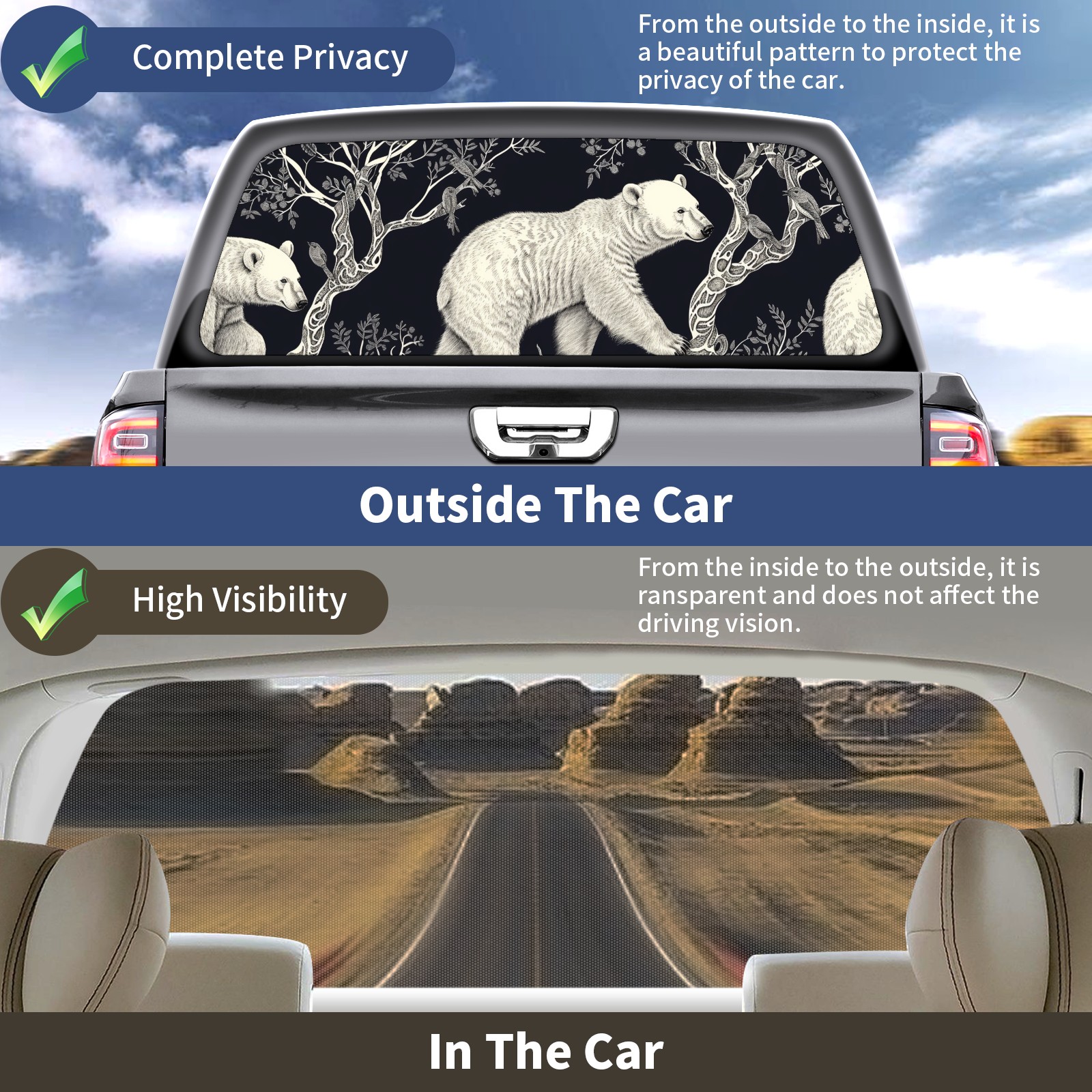 Truck Rear Window Graphics Decals Pickup Trucks Back Window Sticker Full Window Film Decal One Way Visual Waterproof Car Rear Tint Polar Bear (2)
