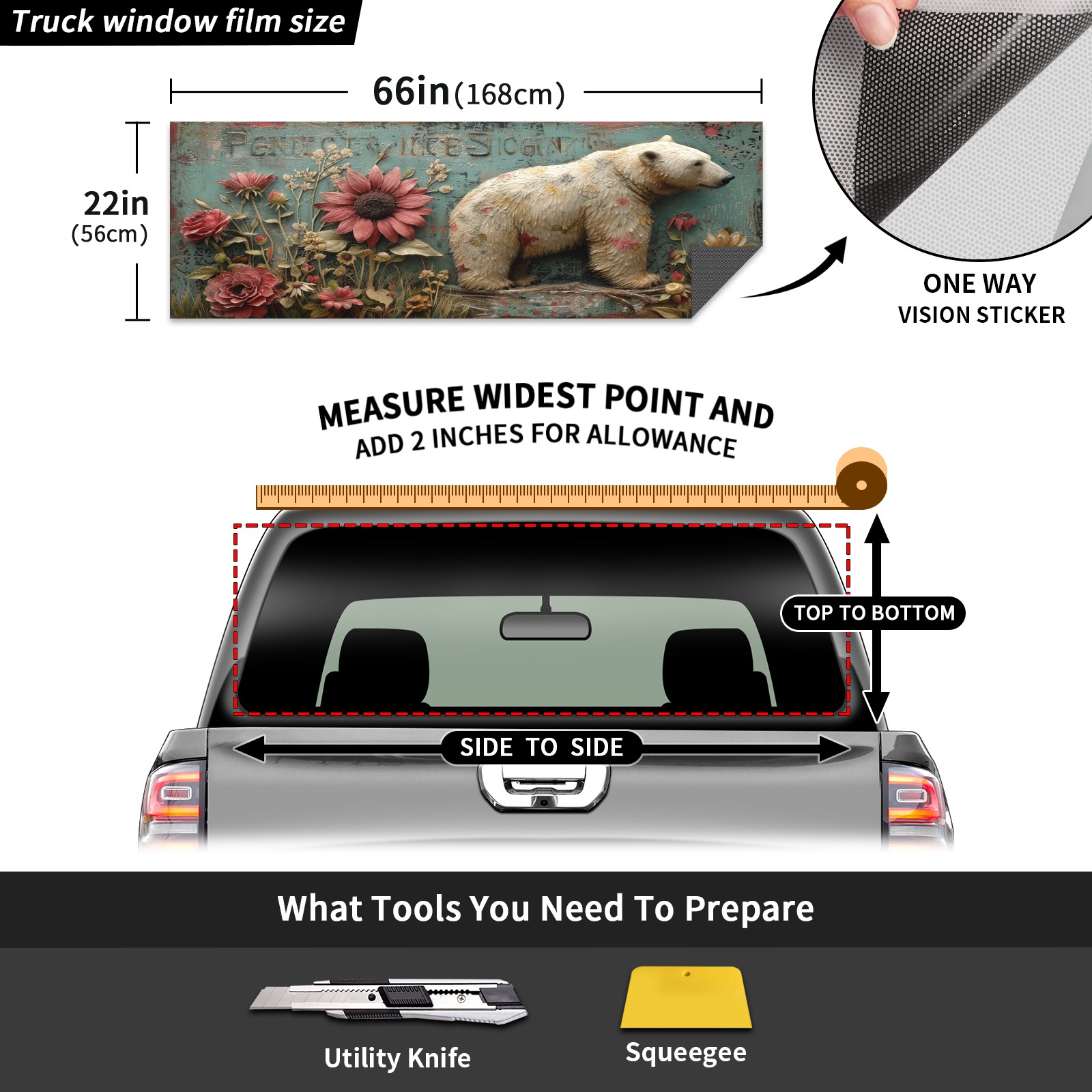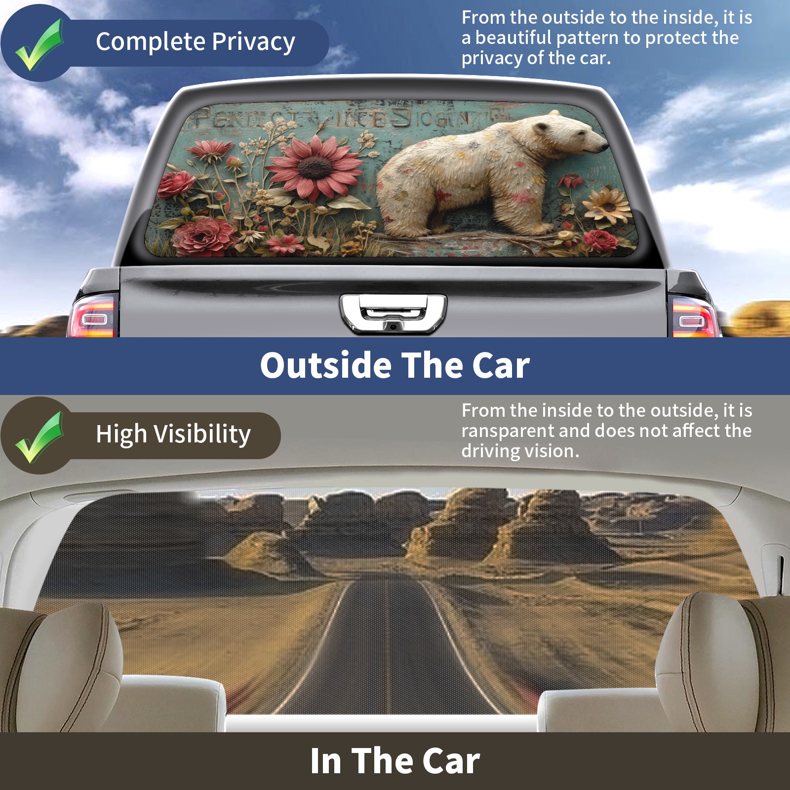 Truck Rear Window Graphics Decals Pickup Trucks Back Window Sticker Full Window Film Decal One Way Visual Waterproof Car Rear Tint Polar Bear (31)