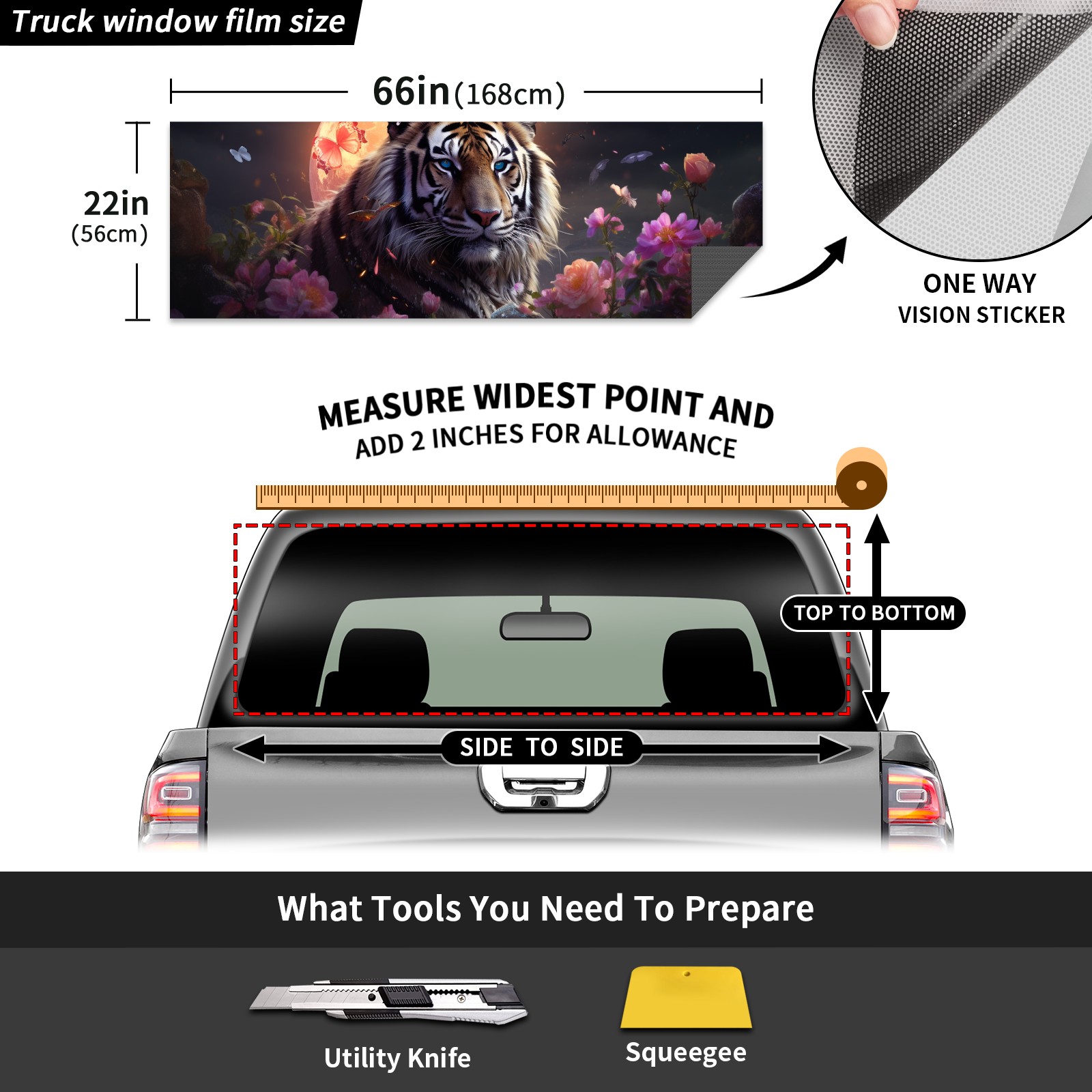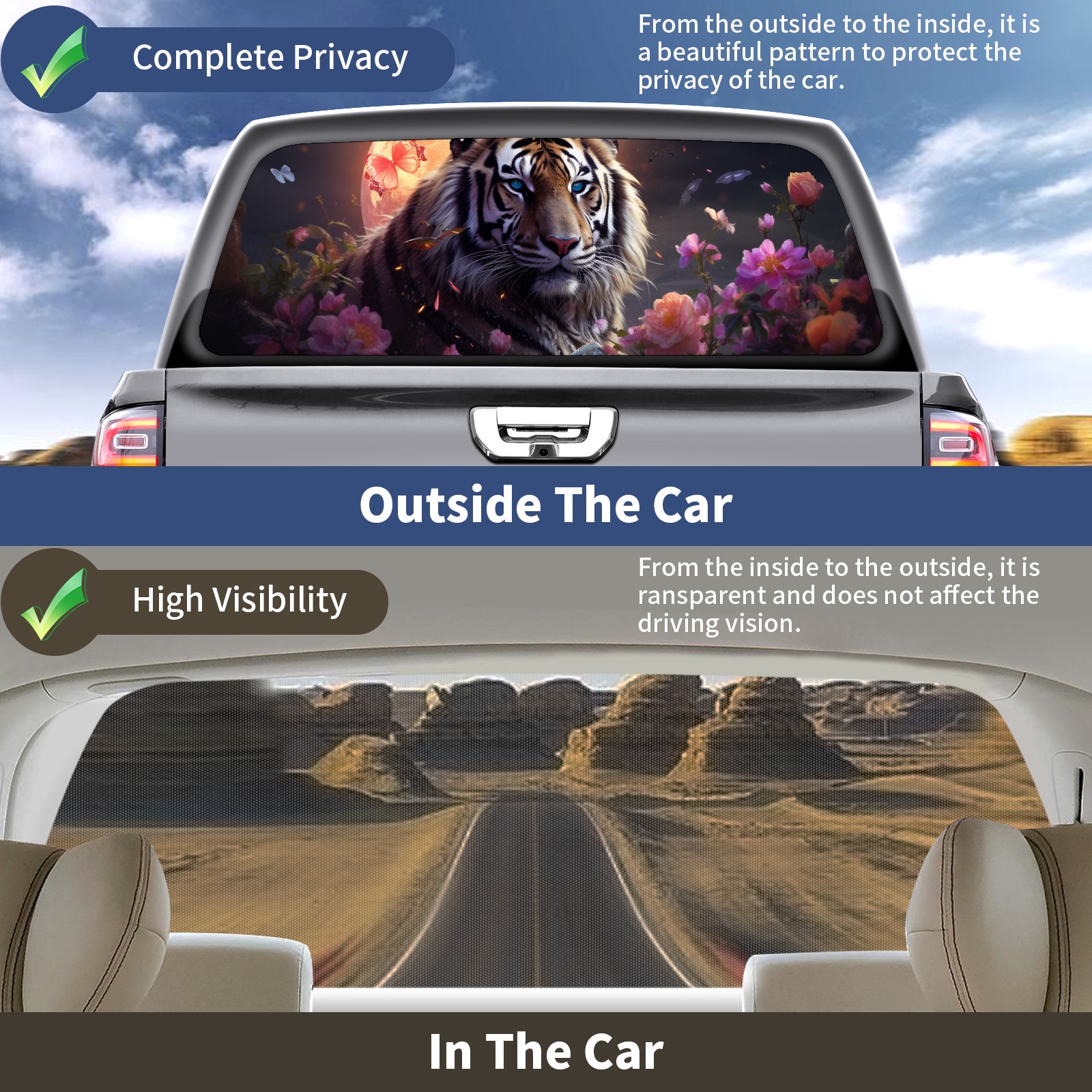 Truck Rear Window Graphics Decals Pickup Trucks Back Window Sticker Full Window Film Decal One Way Visual Waterproof Car Rear Tint Tiger (20)