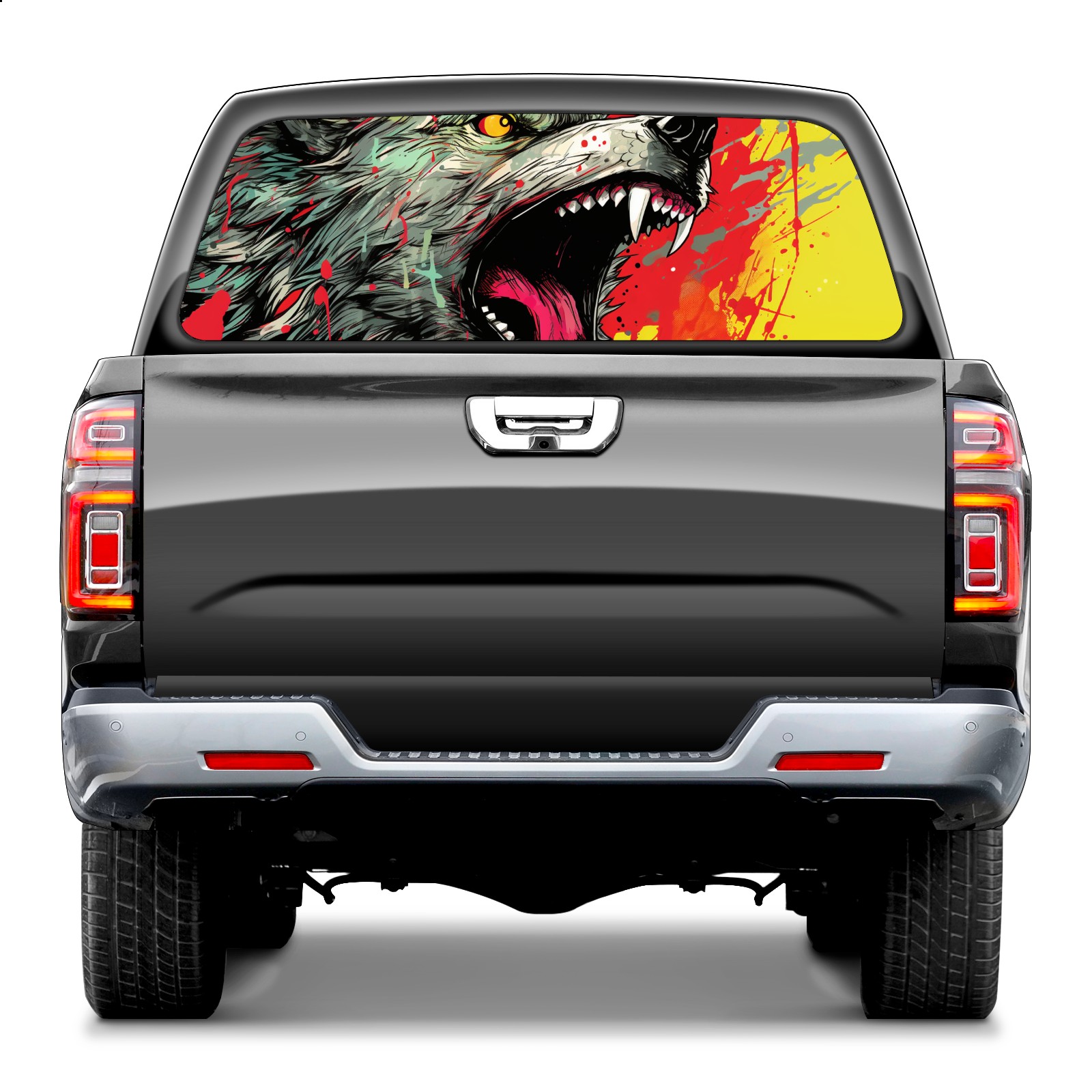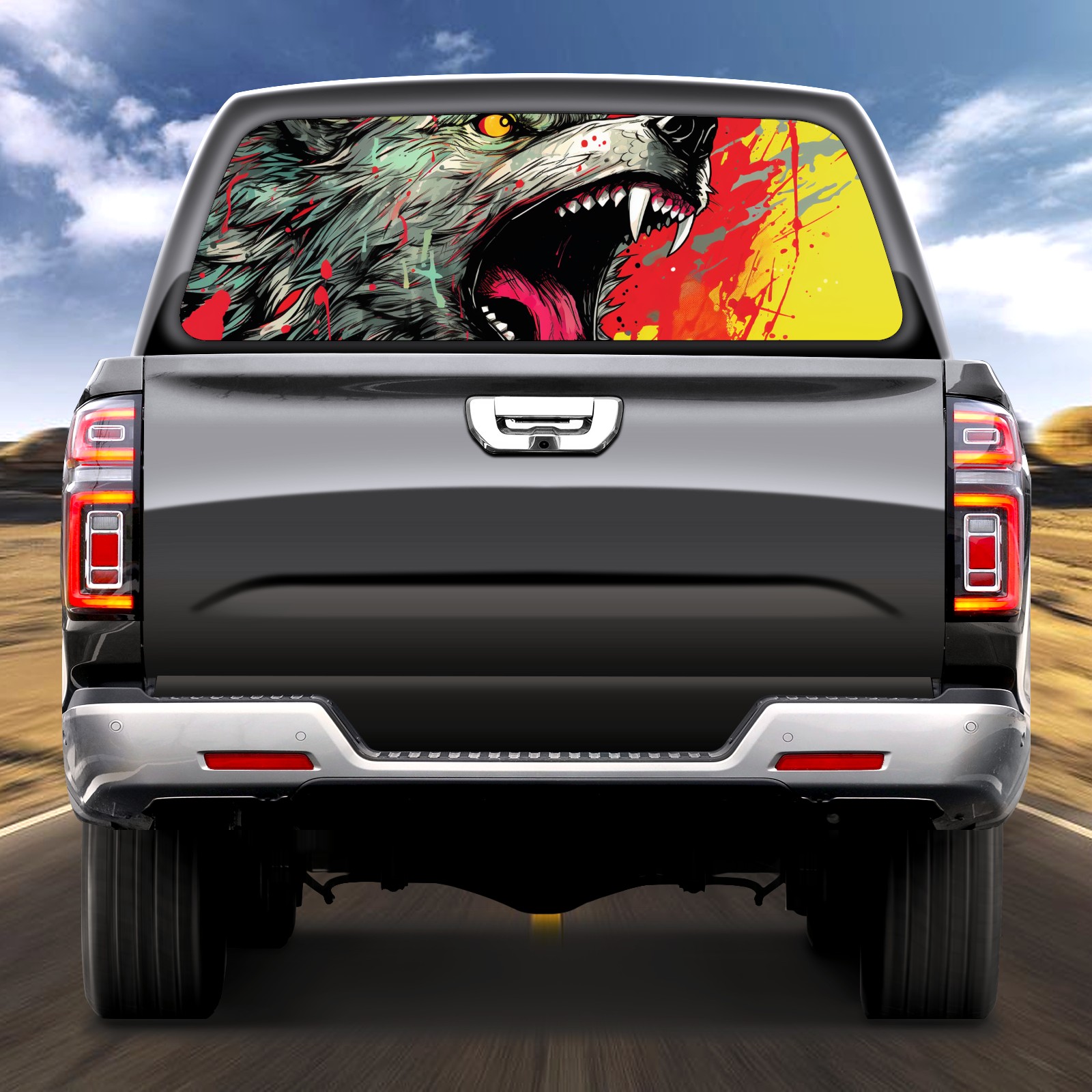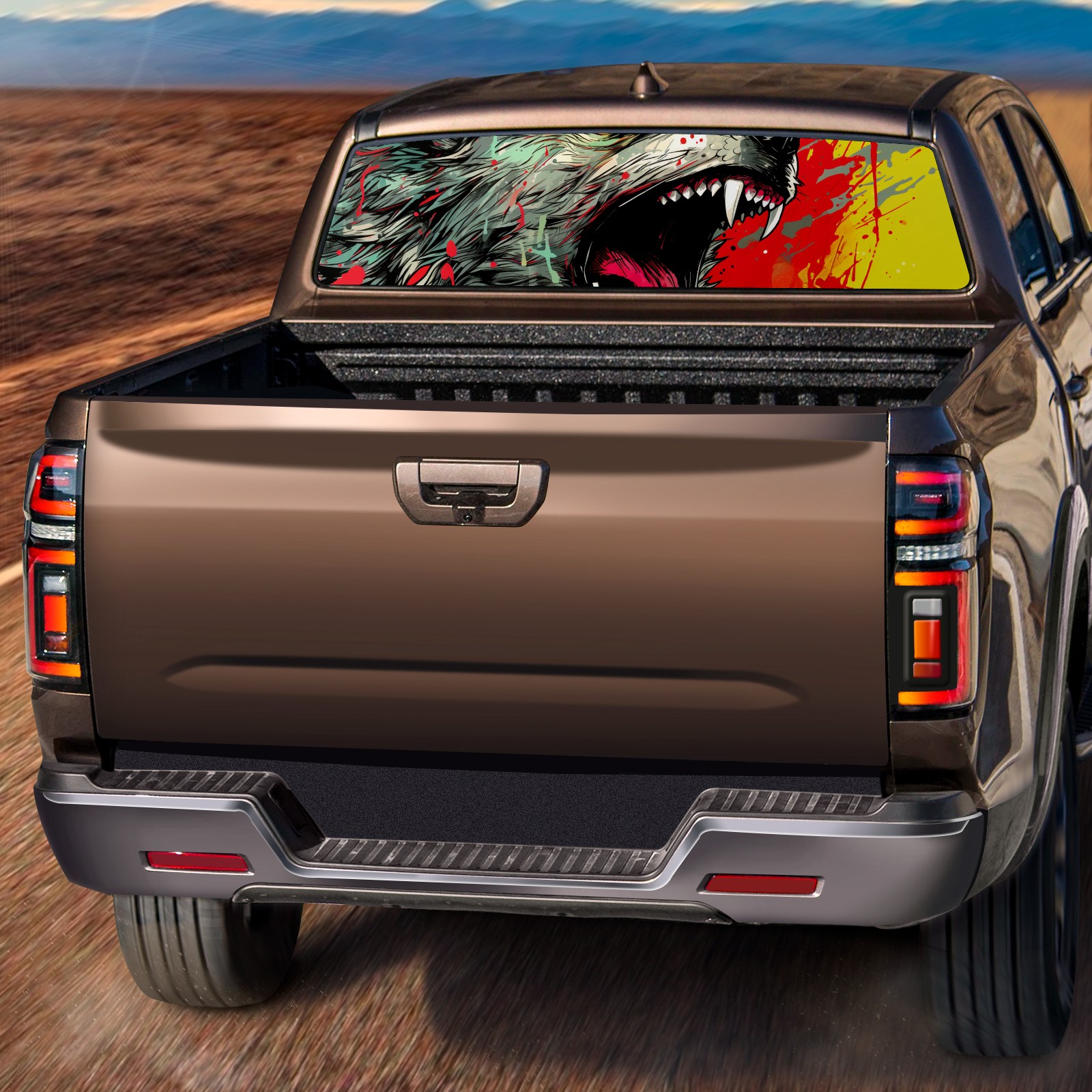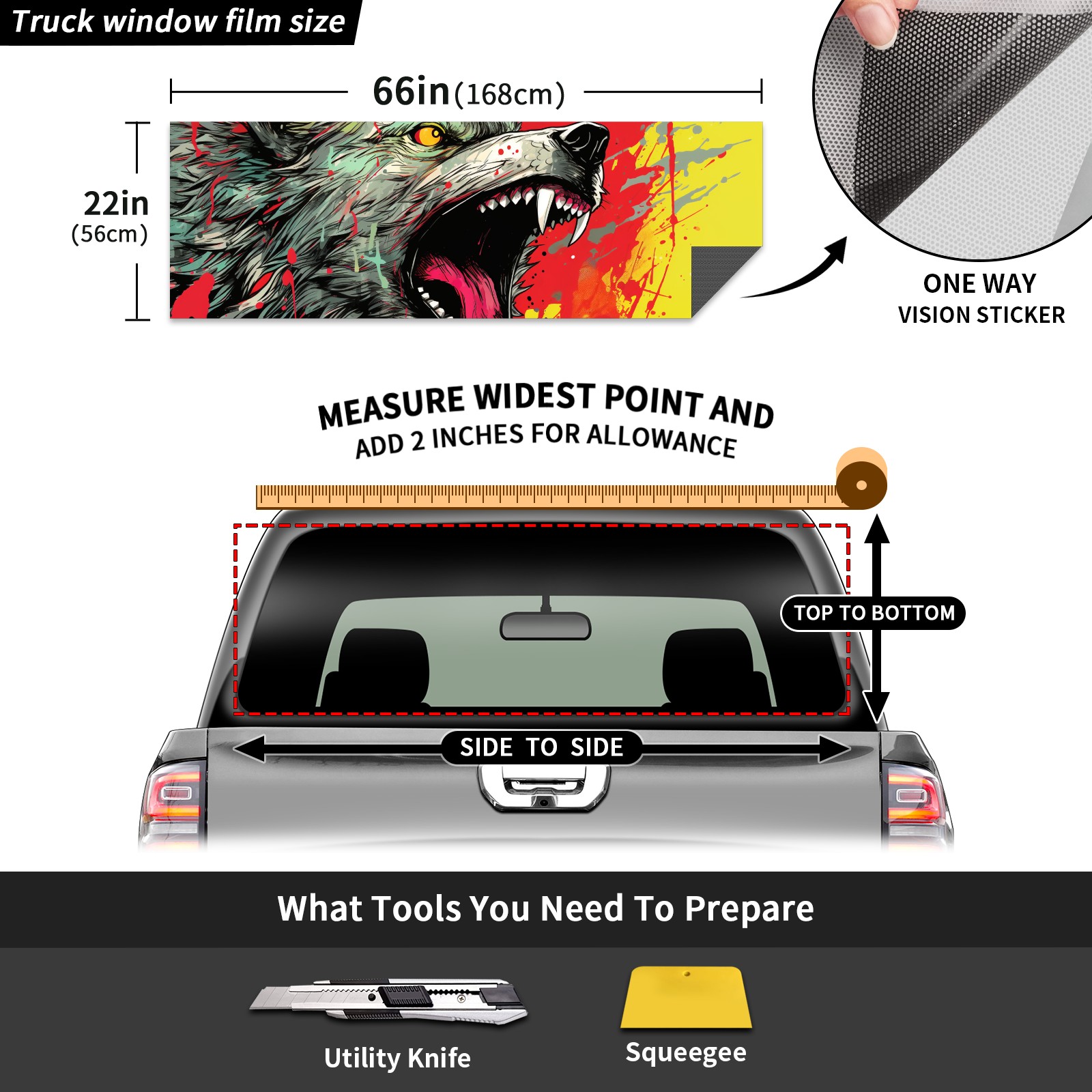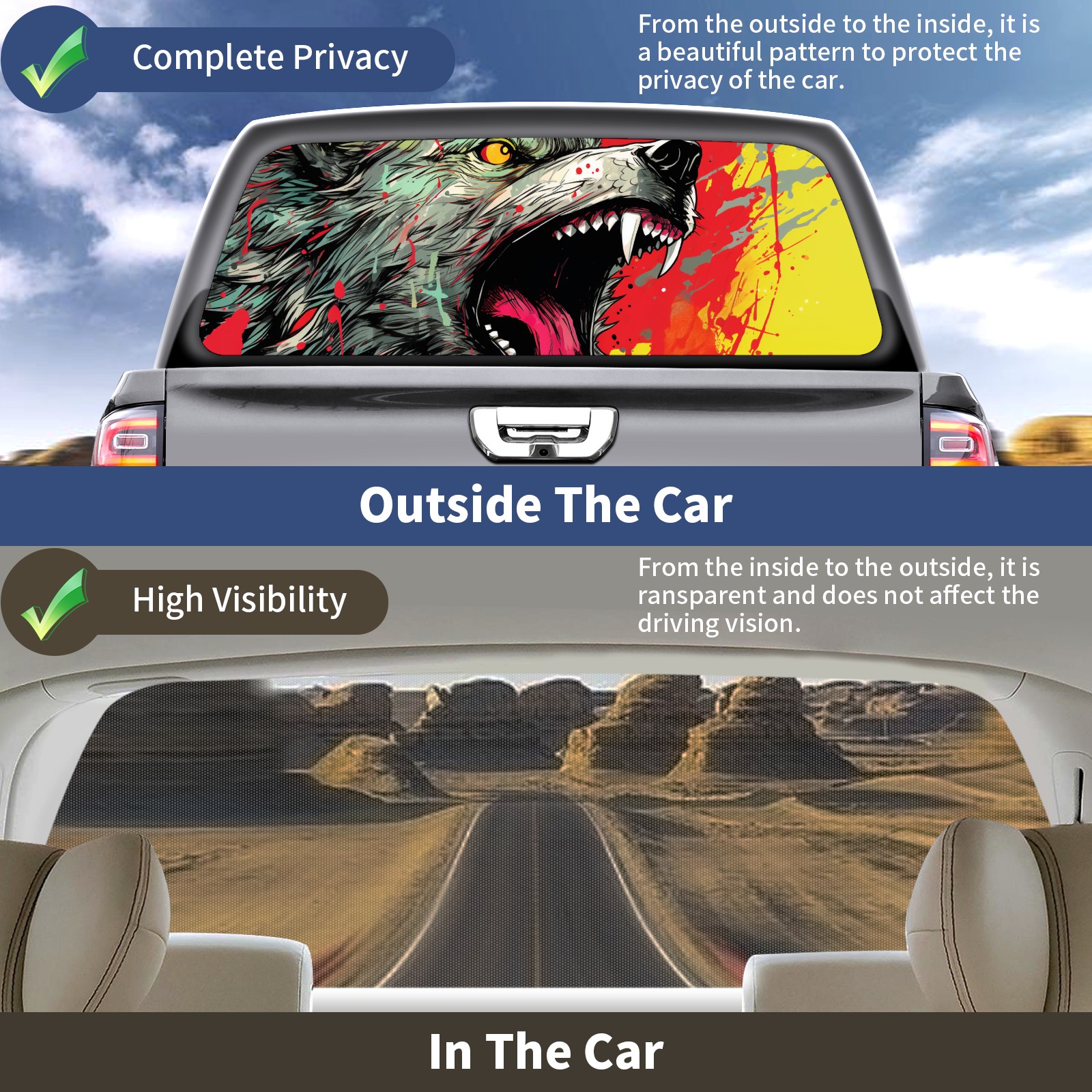 Truck Rear Window Graphics Decals Pickup Trucks Back Window Sticker Full Window Film Decal One Way Visual Waterproof Car Rear Tint Wolf (23)