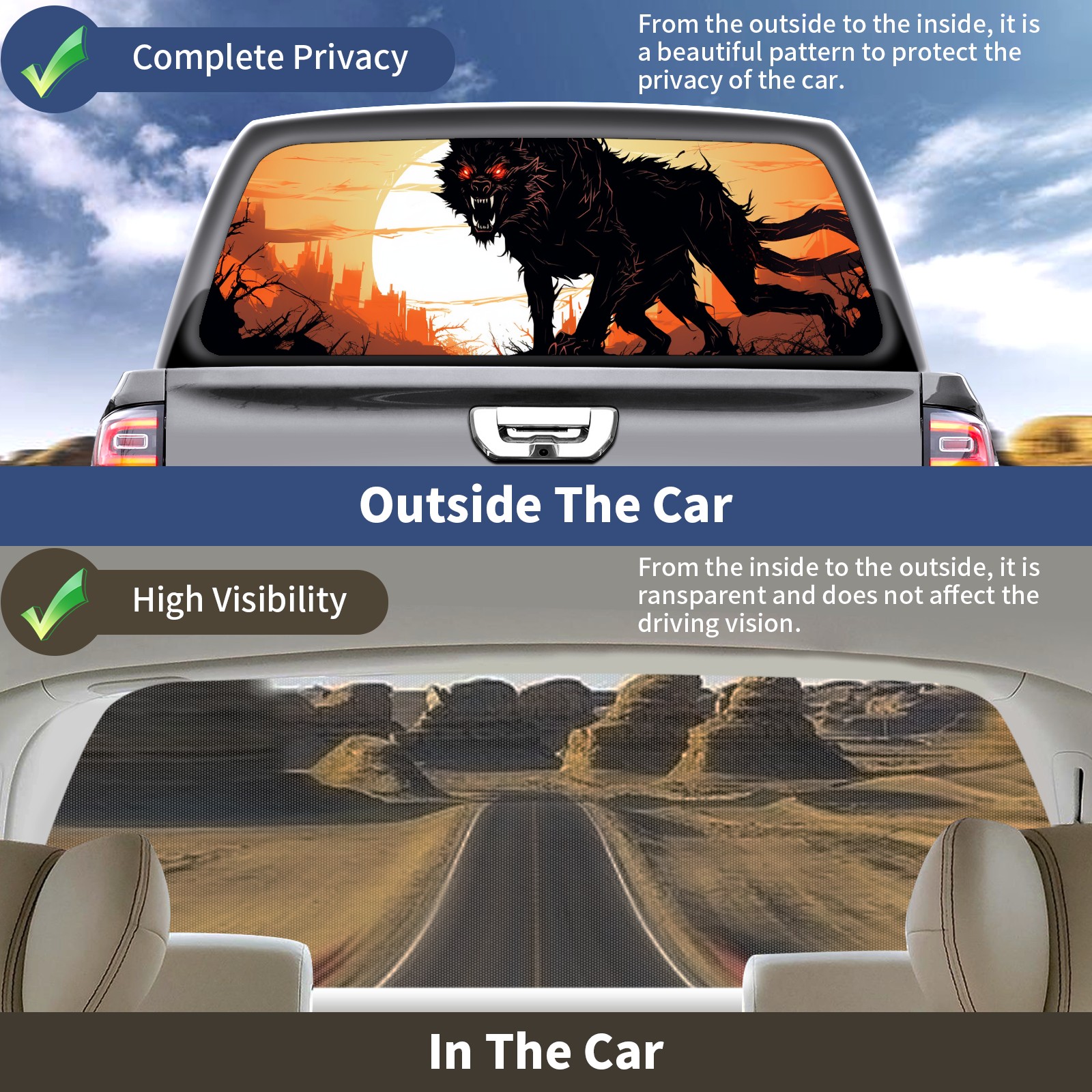 Truck Rear Window Graphics Decals Pickup Trucks Back Window Sticker Full Window Film Decal One Way Visual Waterproof Car Rear Tint Wolf (71)