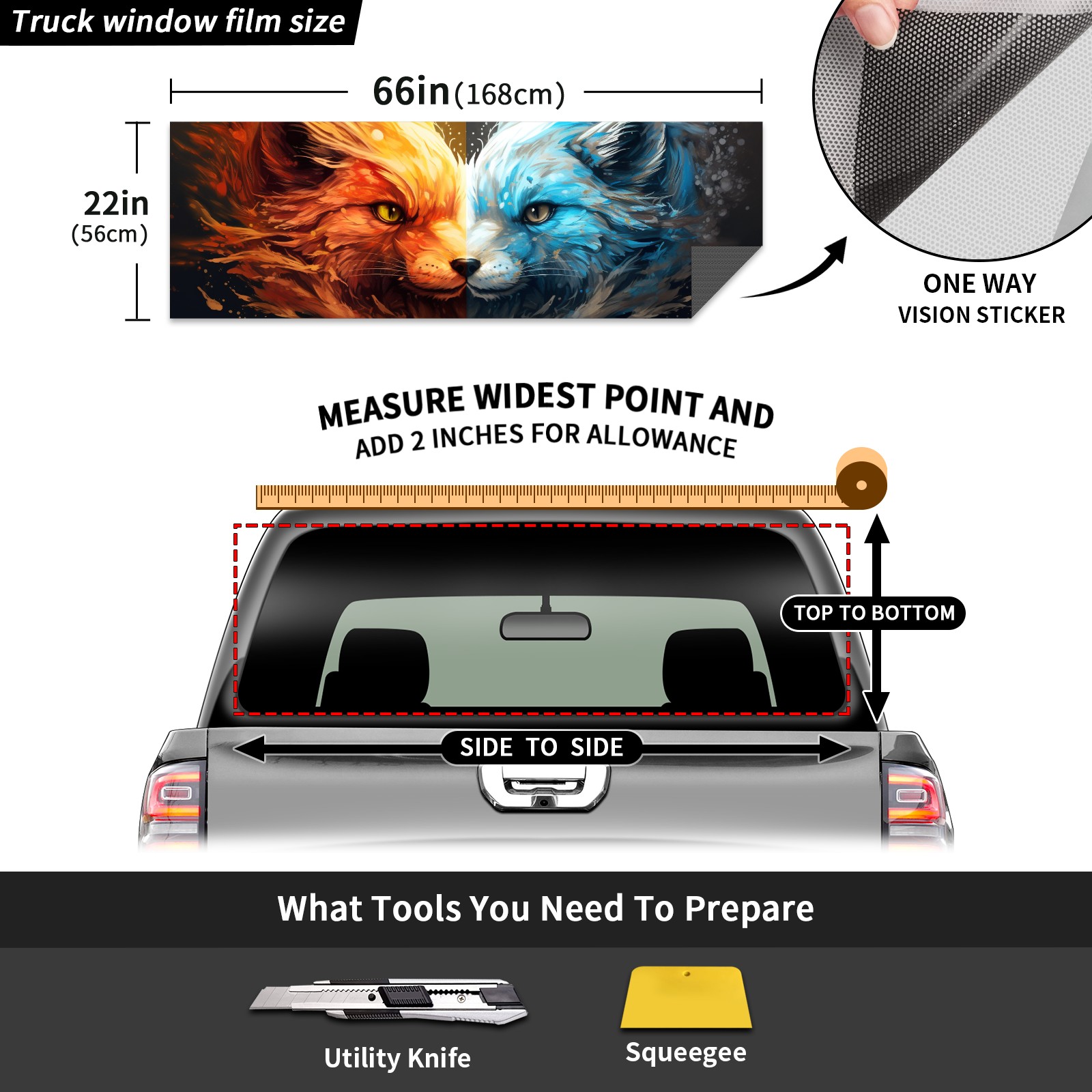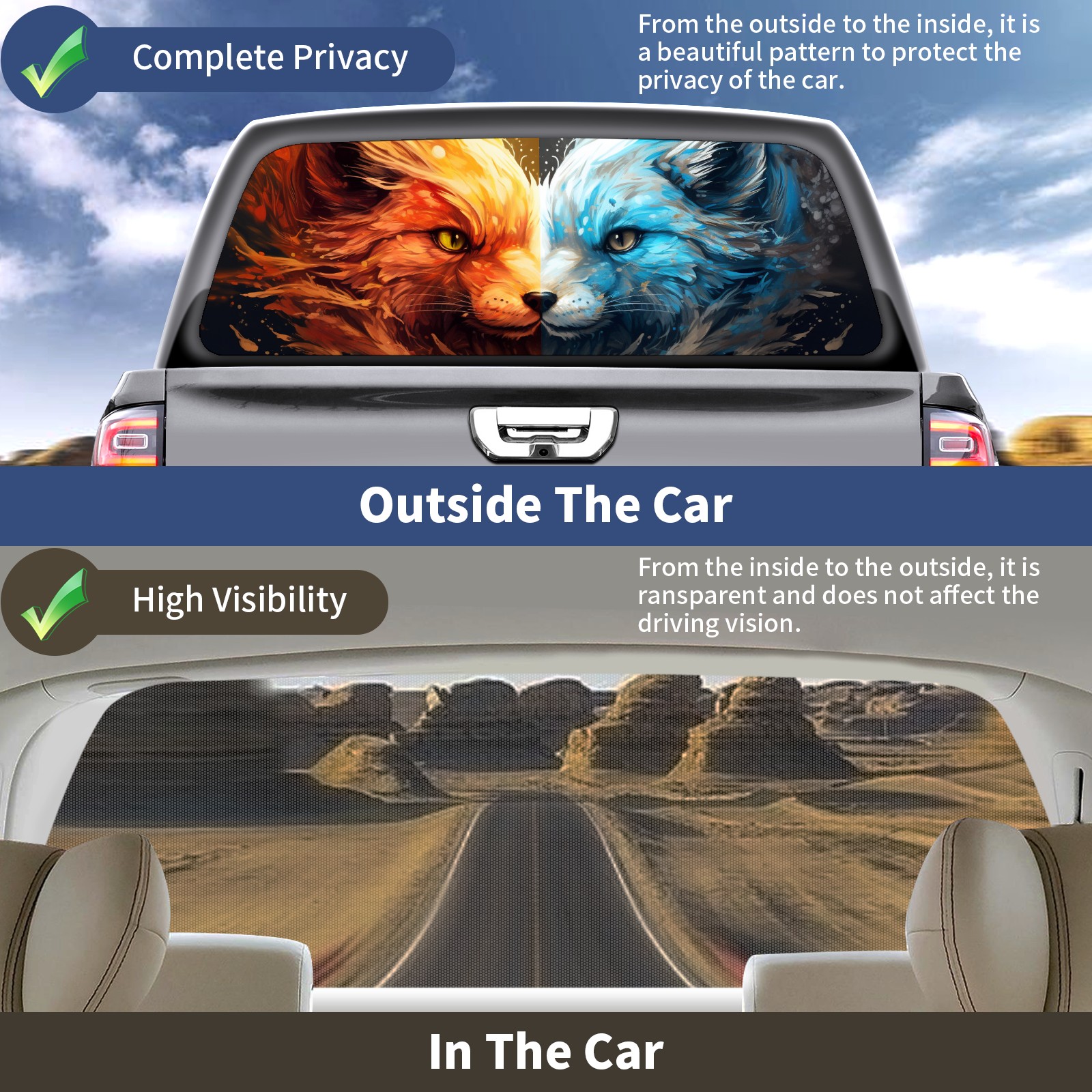 Truck Rear Window Graphics Decals Pickup Trucks Back Window Sticker Full Window Film Decal One Way Visual Waterproof Car Rear Tint Fox (3)