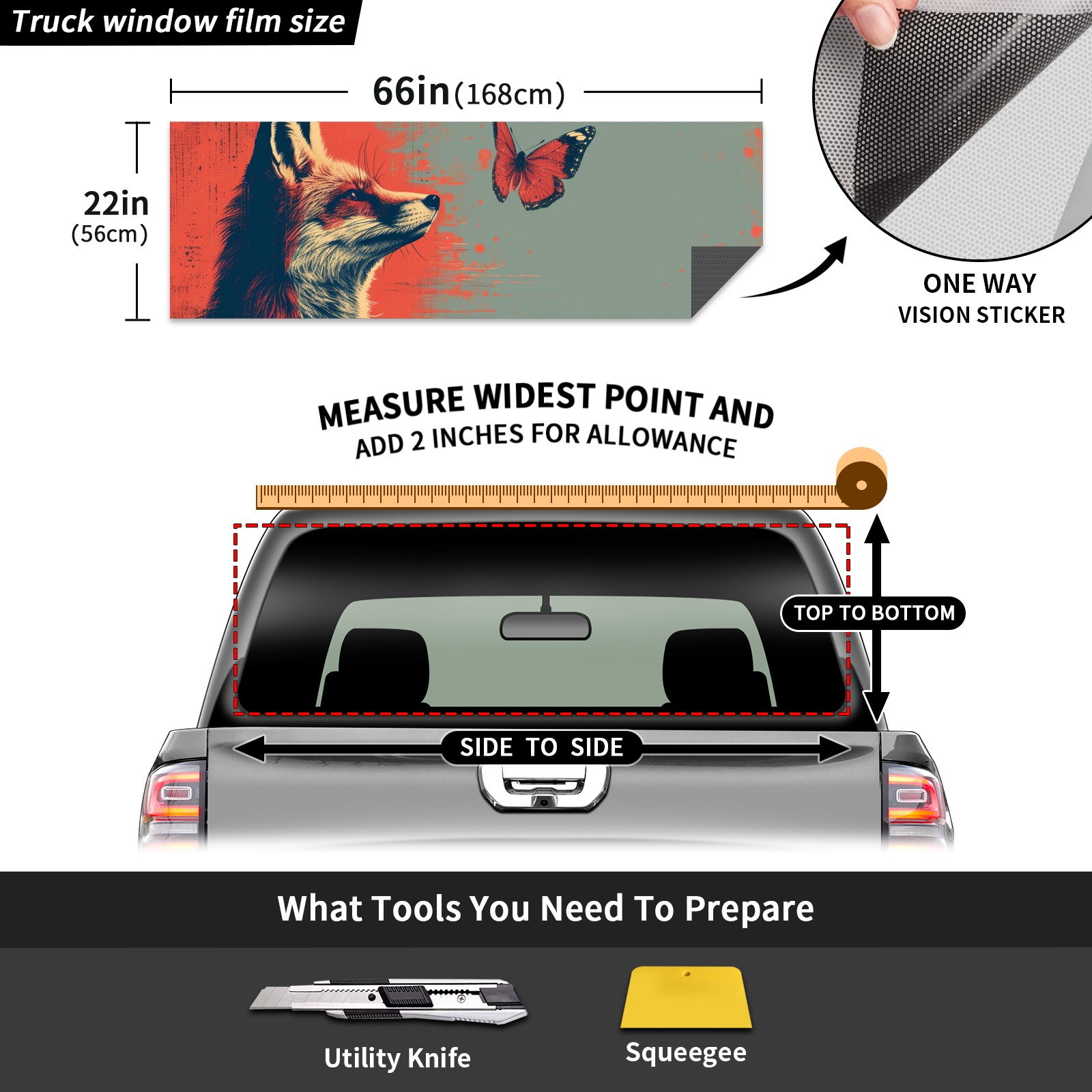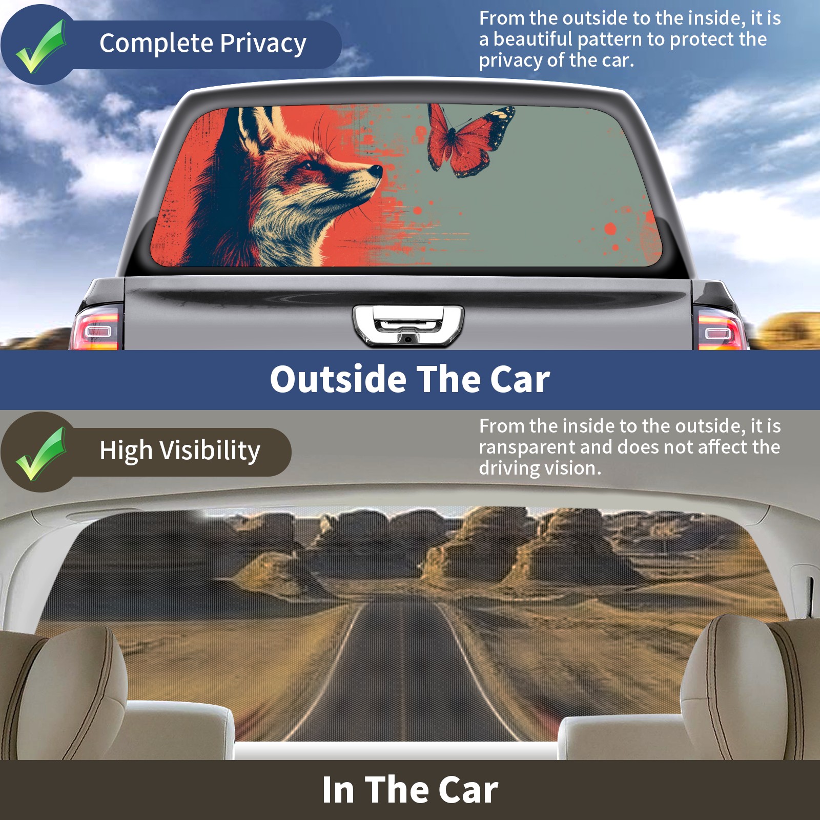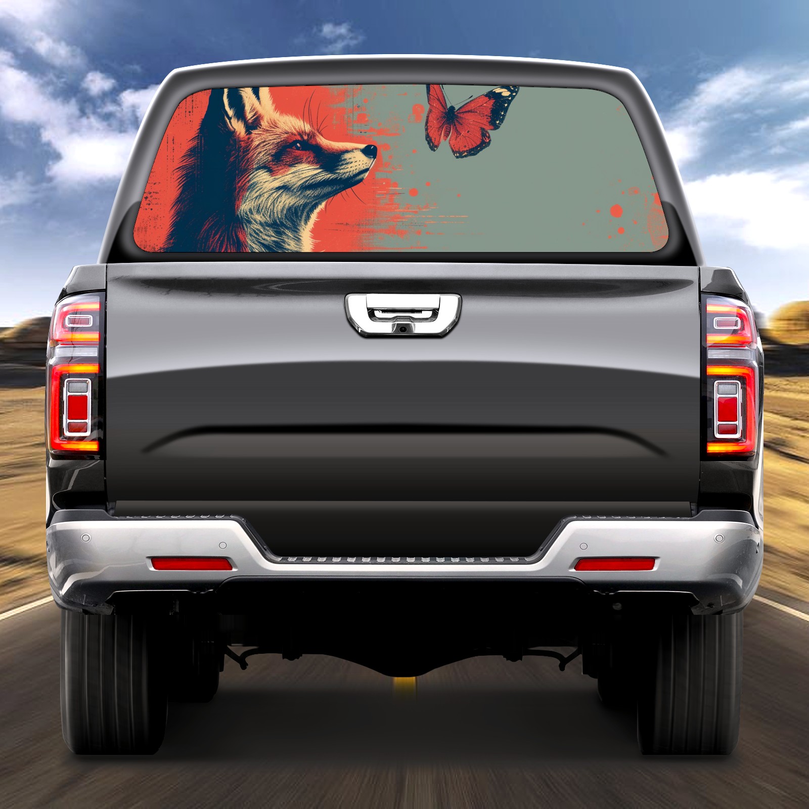 Truck Rear Window Graphics Decals Pickup Trucks Back Window Sticker Full Window Film Decal One Way Visual Waterproof Car Rear Tint Fox (40)