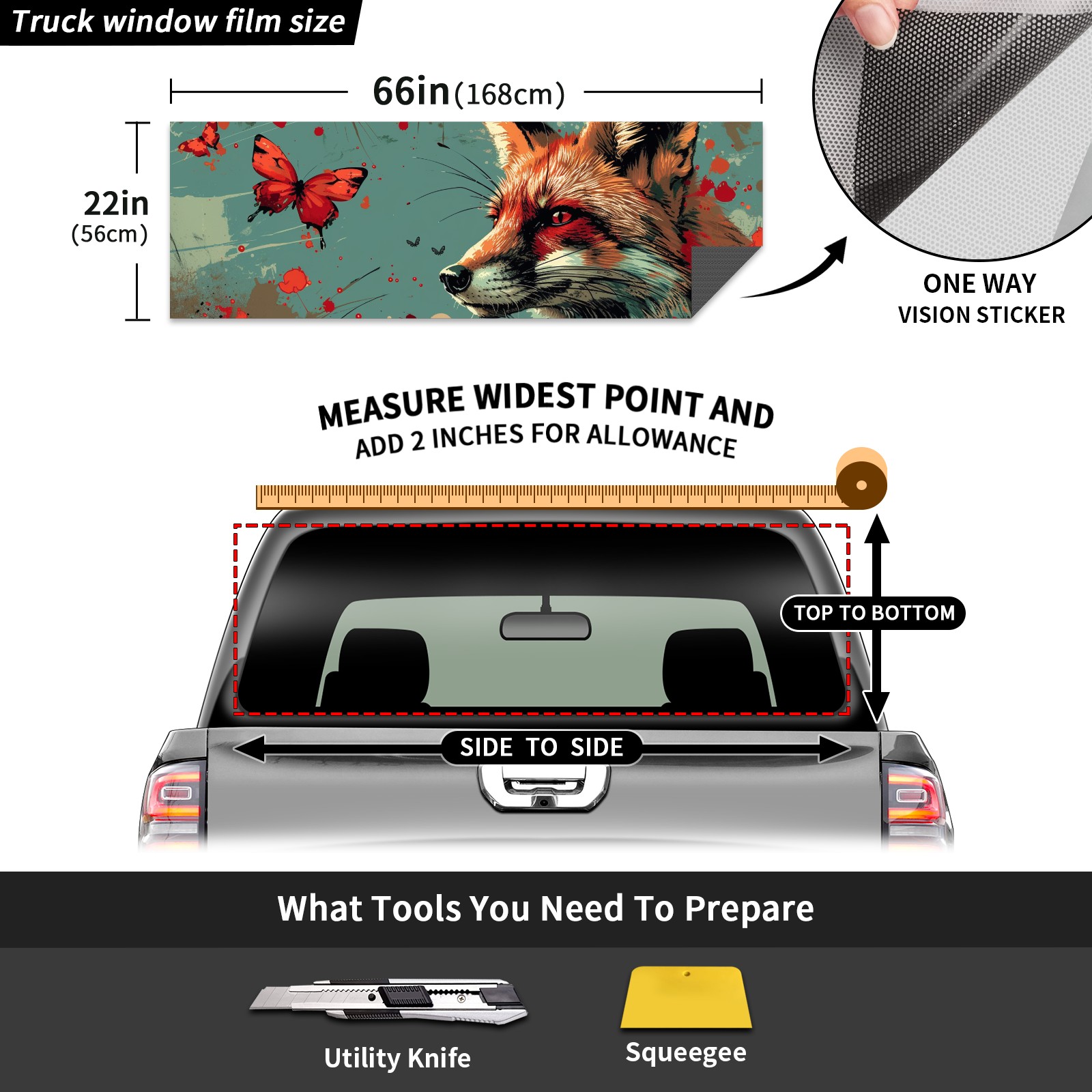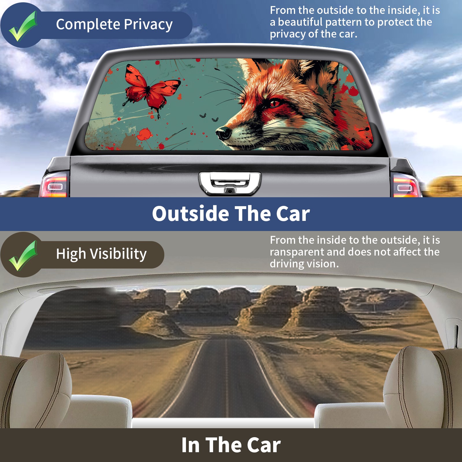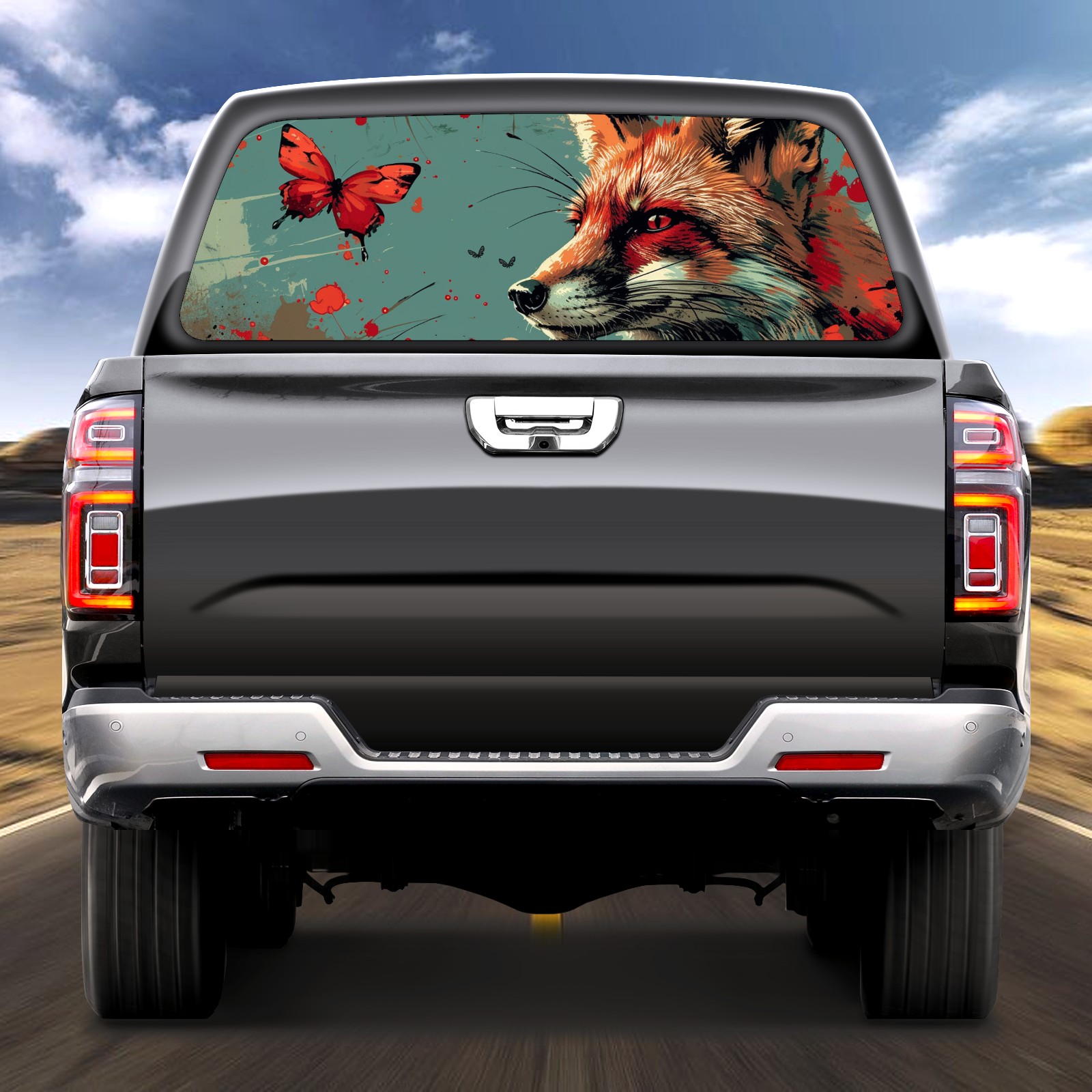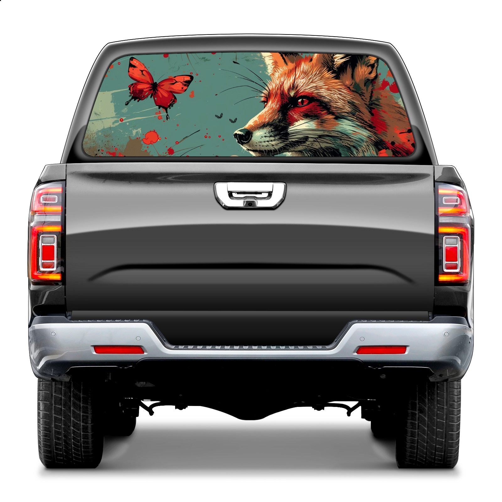 Truck Rear Window Graphics Decals Pickup Trucks Back Window Sticker Full Window Film Decal One Way Visual Waterproof Car Rear Tint Fox (39)