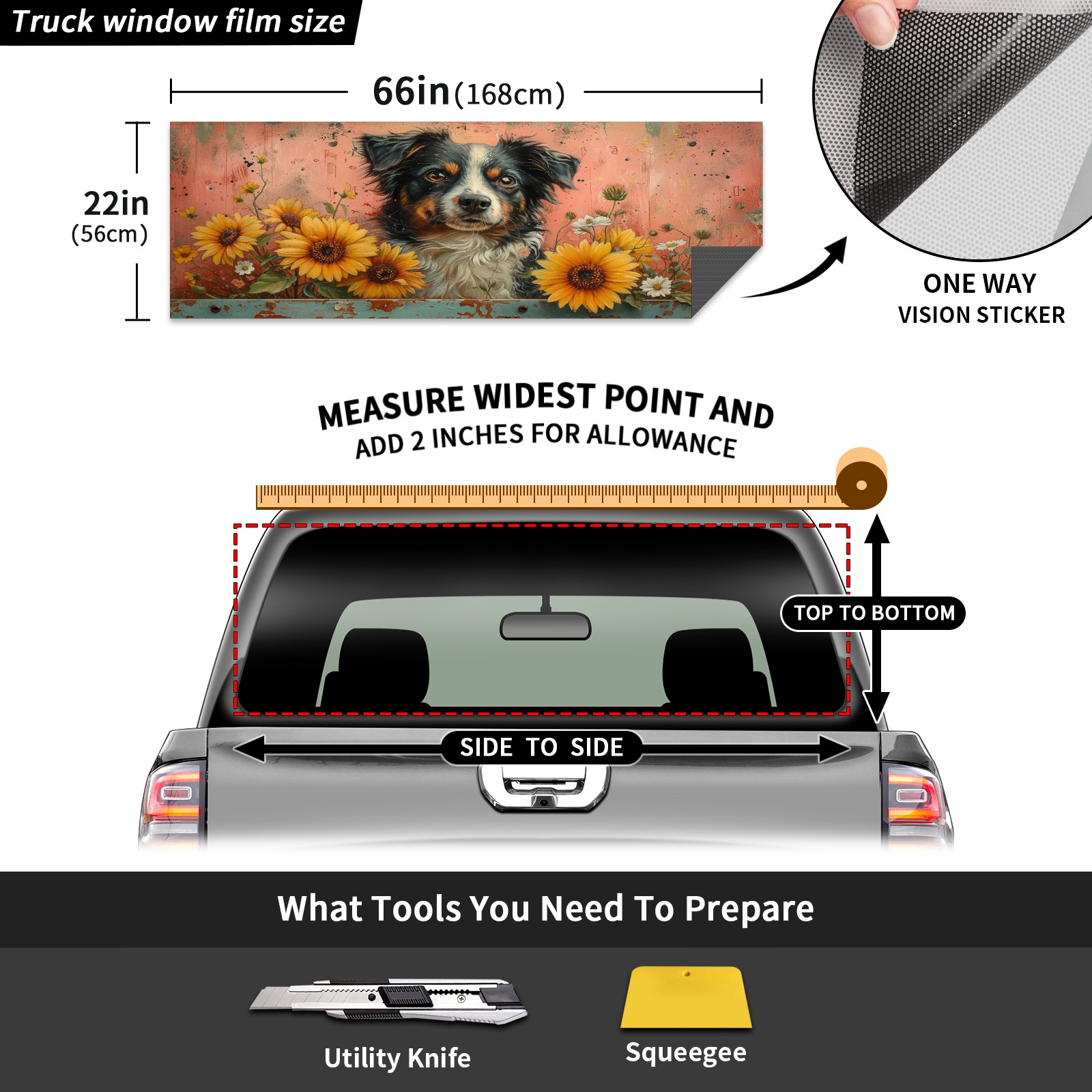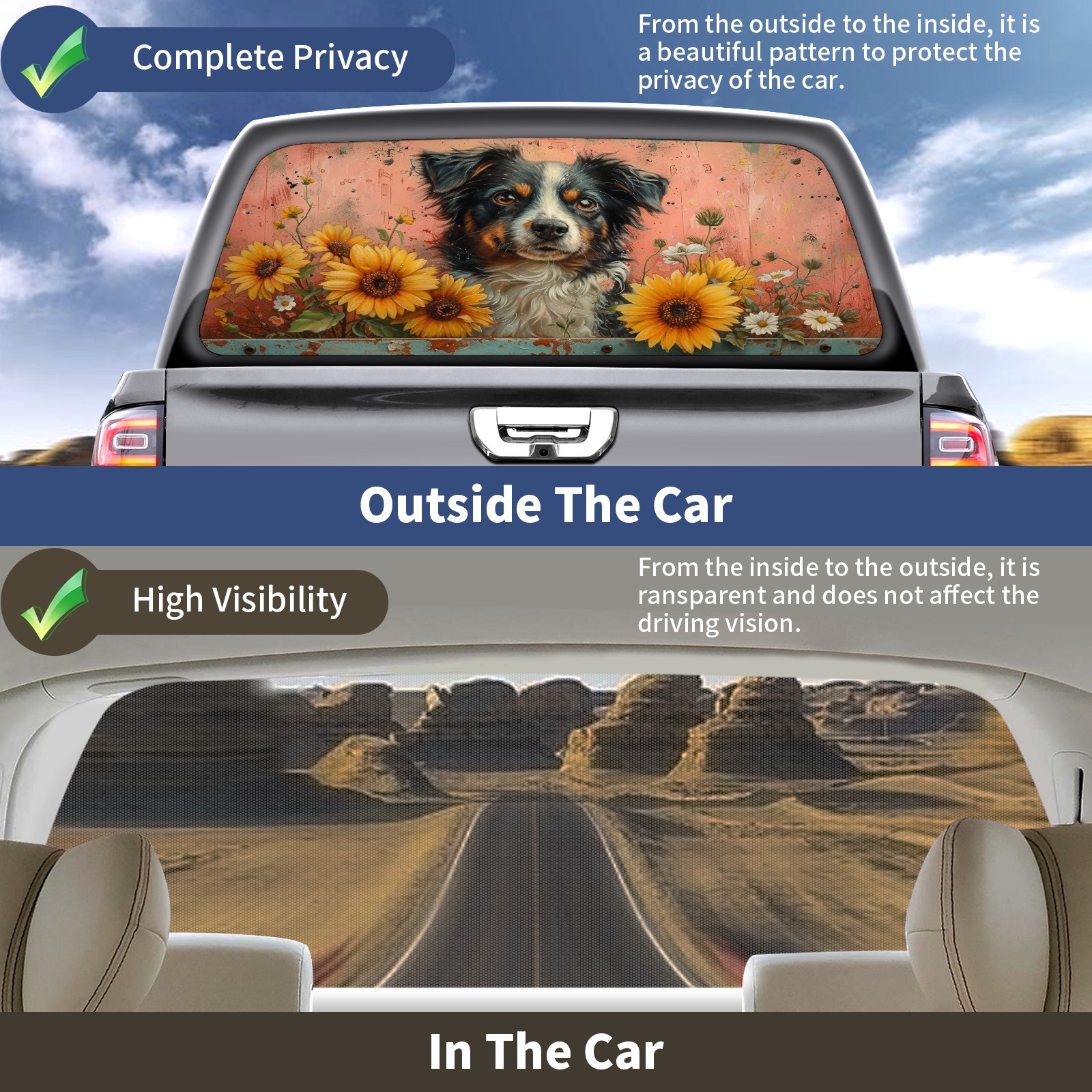 Truck Rear Window Graphics Decals Pickup Trucks Back Window Sticker Full Window Film Decal One Way Visual Waterproof Car Rear Tint Dog (26)