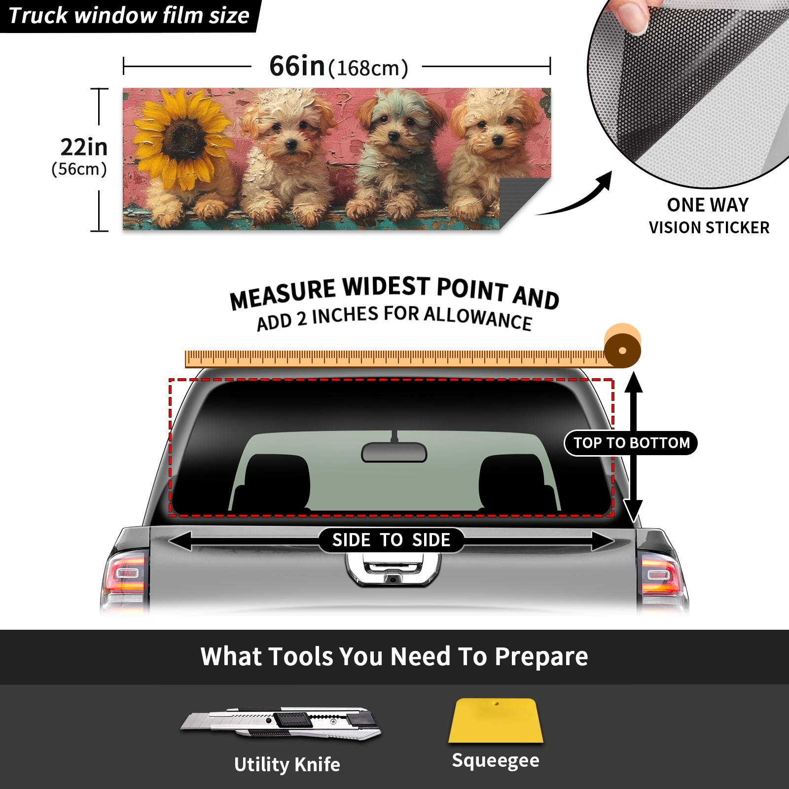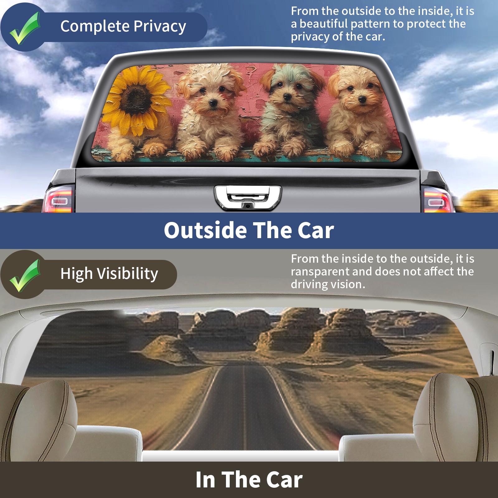 Truck Rear Window Graphics Decals Pickup Trucks Back Window Sticker Full Window Film Decal One Way Visual Waterproof Car Rear Tint Dog (27)
