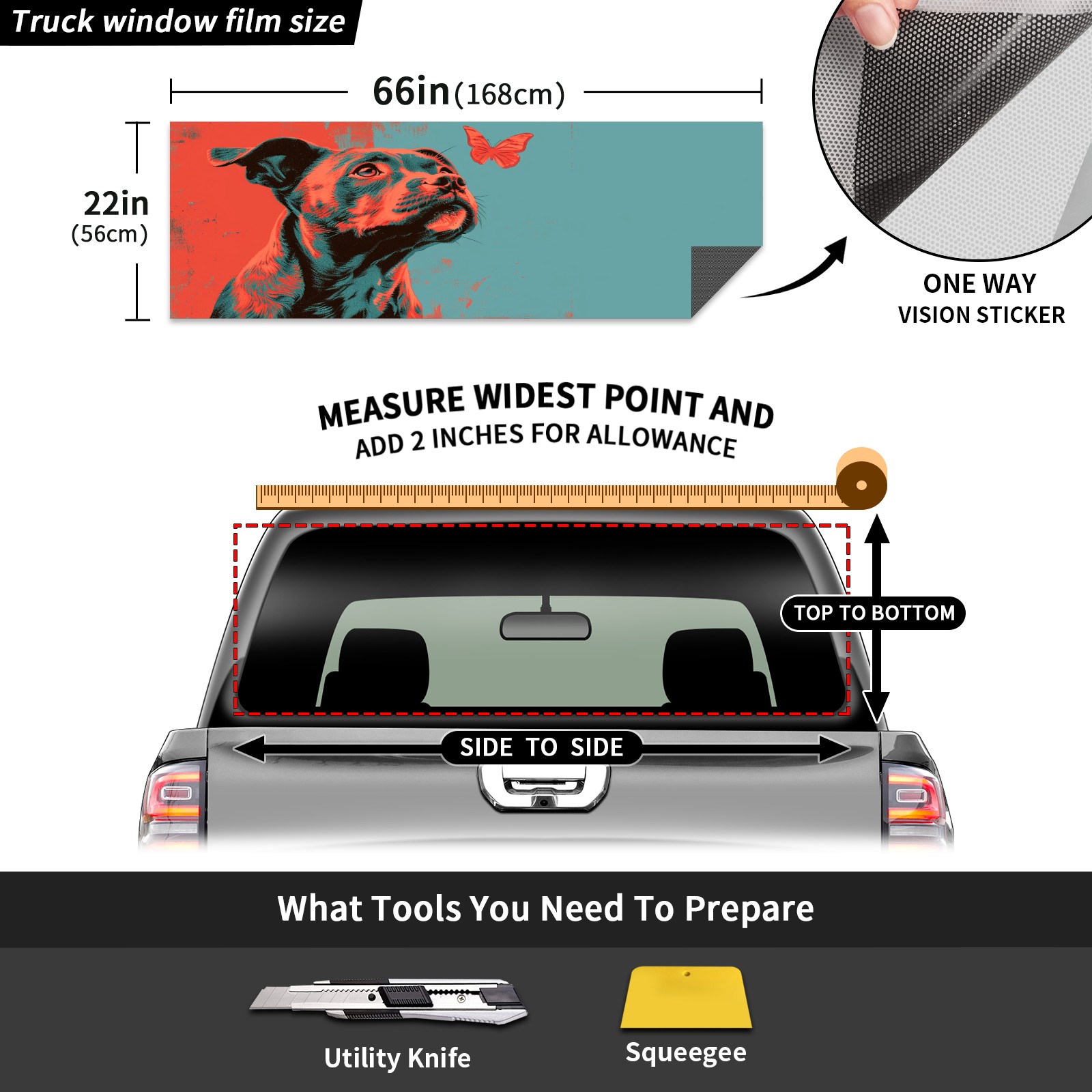Truck Rear Window Graphics Decals Pickup Trucks Back Window Sticker Full Window Film Decal One Way Visual Waterproof Car Rear Tint Dog (33)