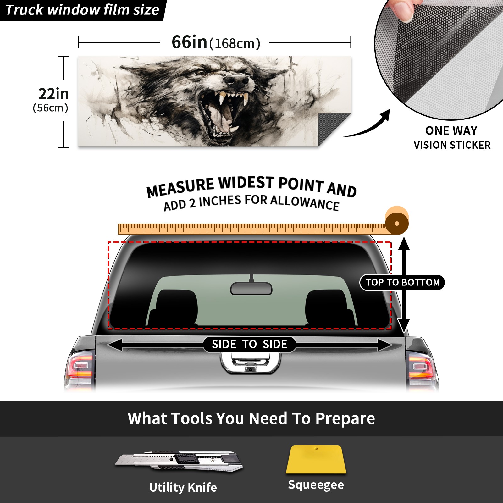 Truck Rear Window Graphics Decals Pickup Trucks Back Window Sticker Full Window Film Decal One Way Visual Waterproof Car Rear Tint Dog (57)