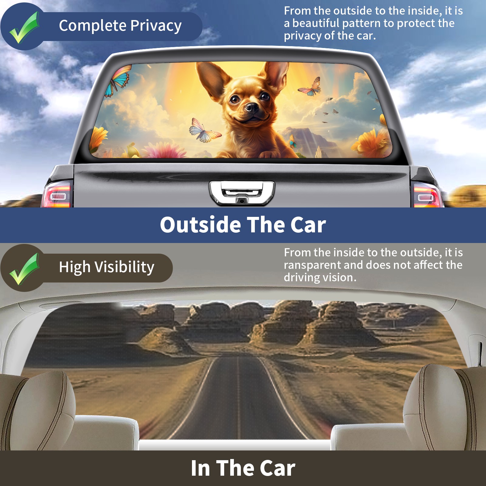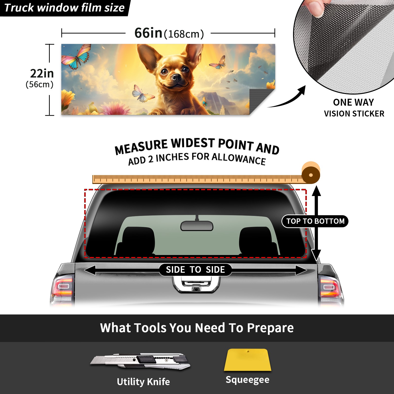 Truck Rear Window Graphics Decals Pickup Trucks Back Window Sticker Full Window Film Decal One Way Visual Waterproof Car Rear Tint Dog (49)