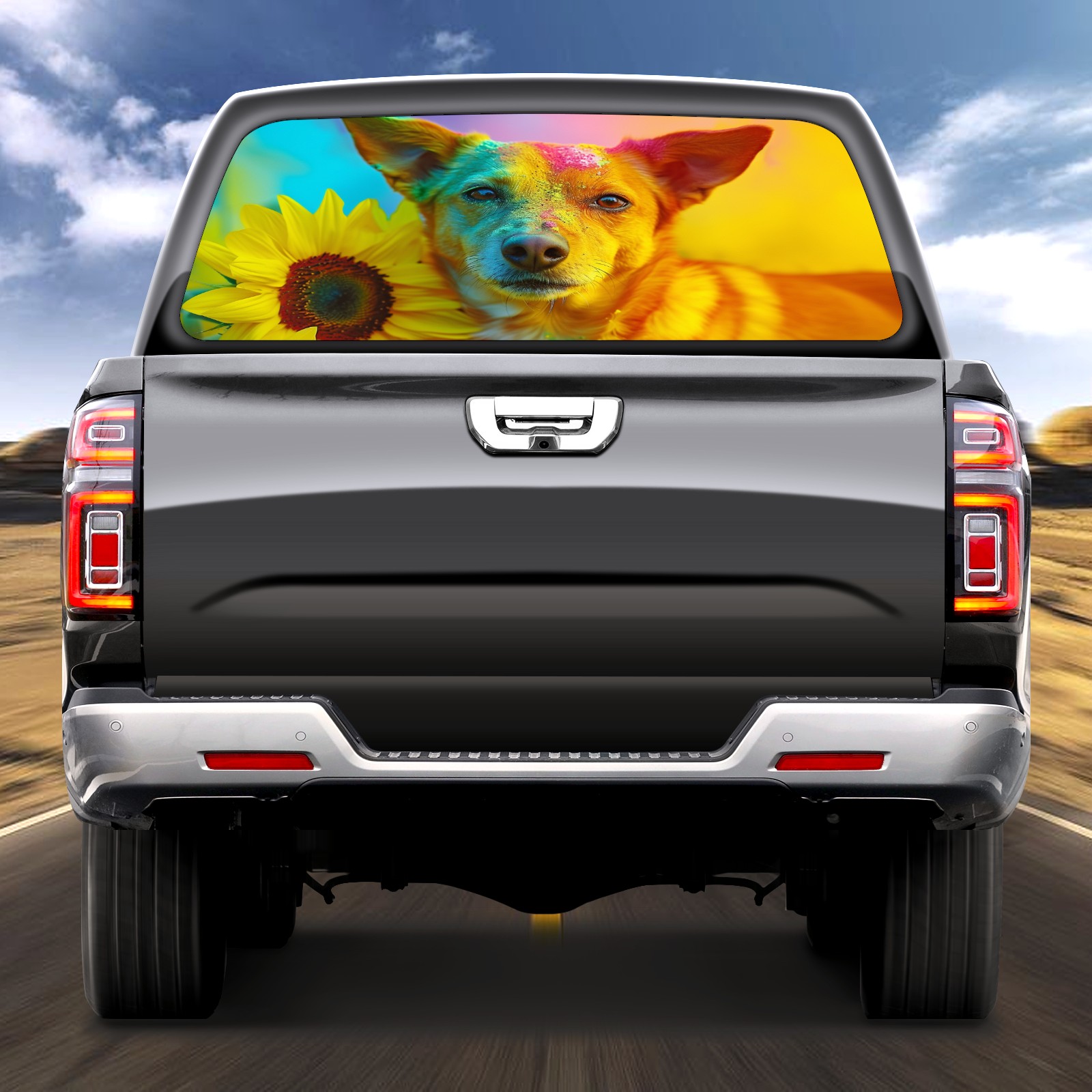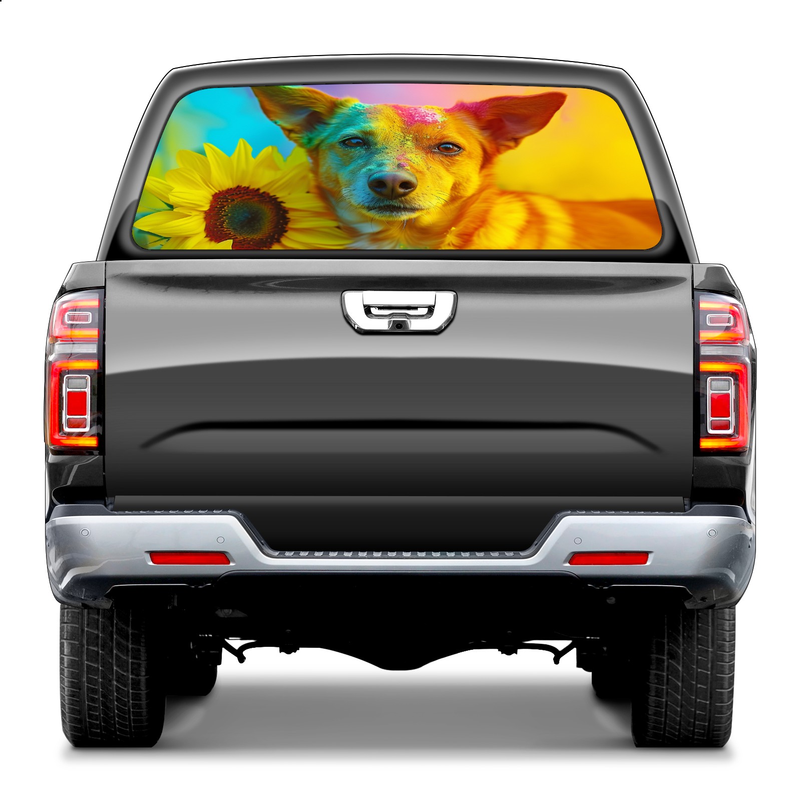 Truck Rear Window Graphics Decals Pickup Trucks Back Window Sticker Full Window Film Decal One Way Visual Waterproof Car Rear Tint Dog (53)