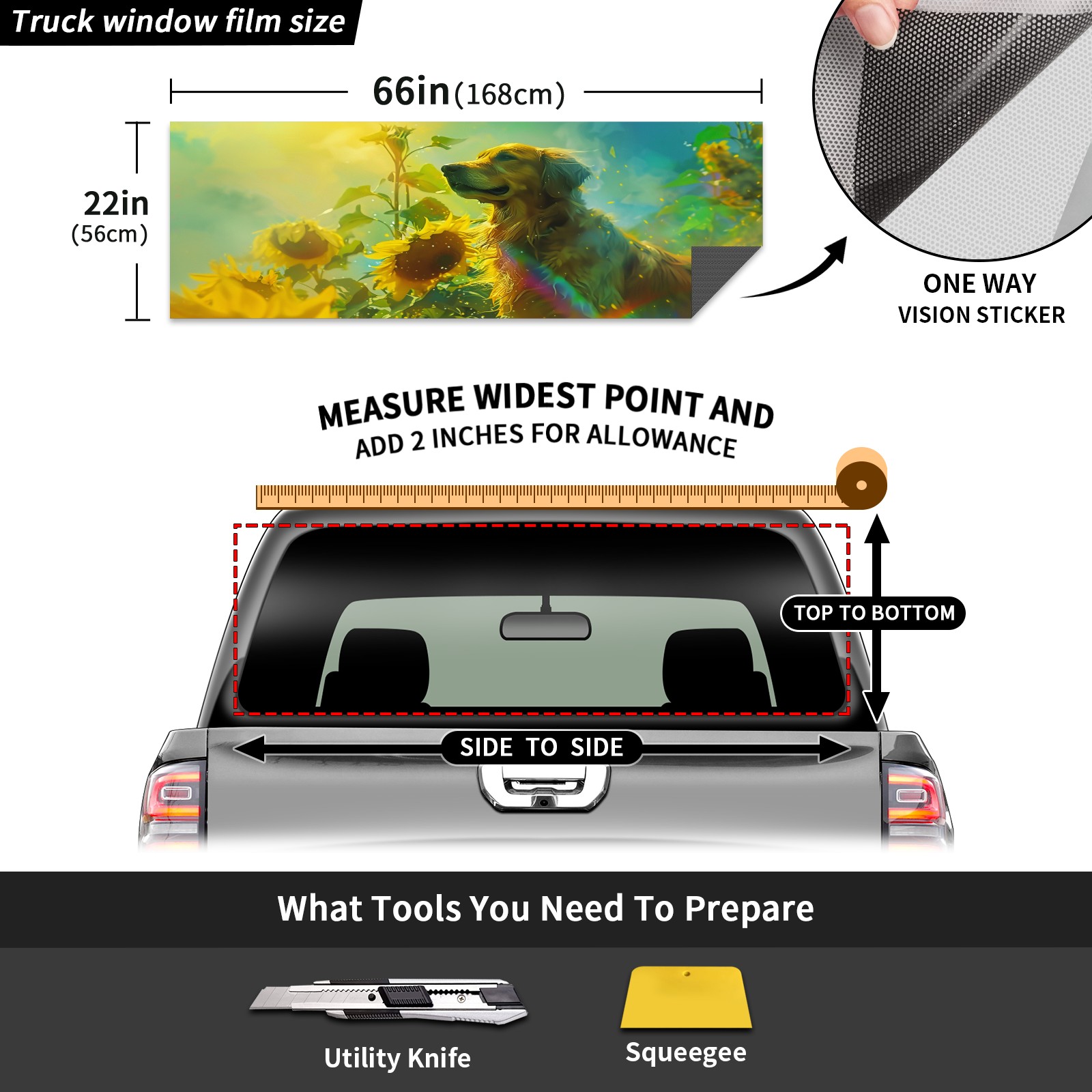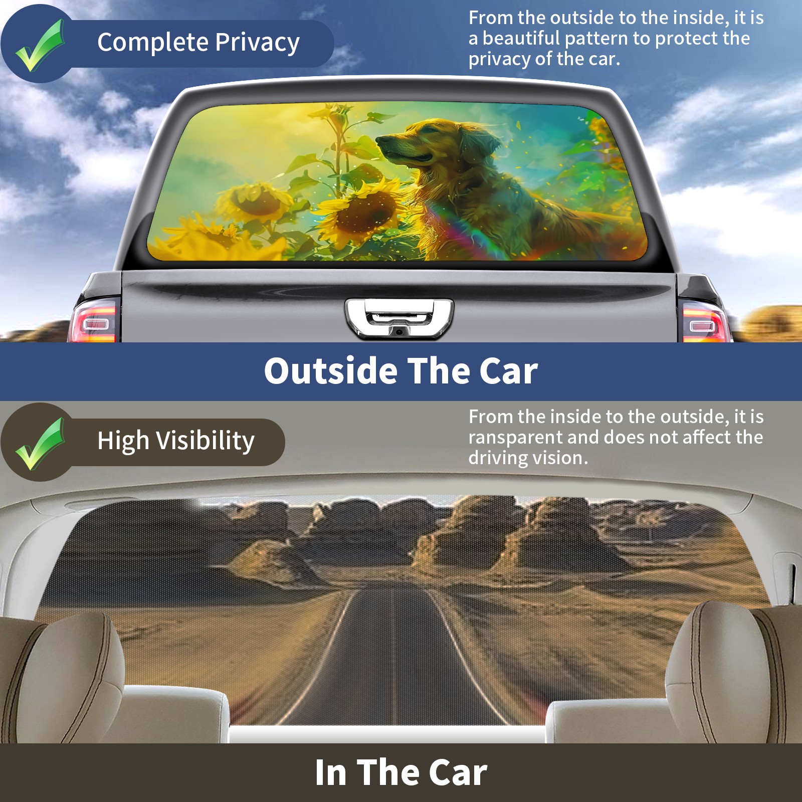 Truck Rear Window Graphics Decals Pickup Trucks Back Window Sticker Full Window Film Decal One Way Visual Waterproof Car Rear Tint Dog (51)