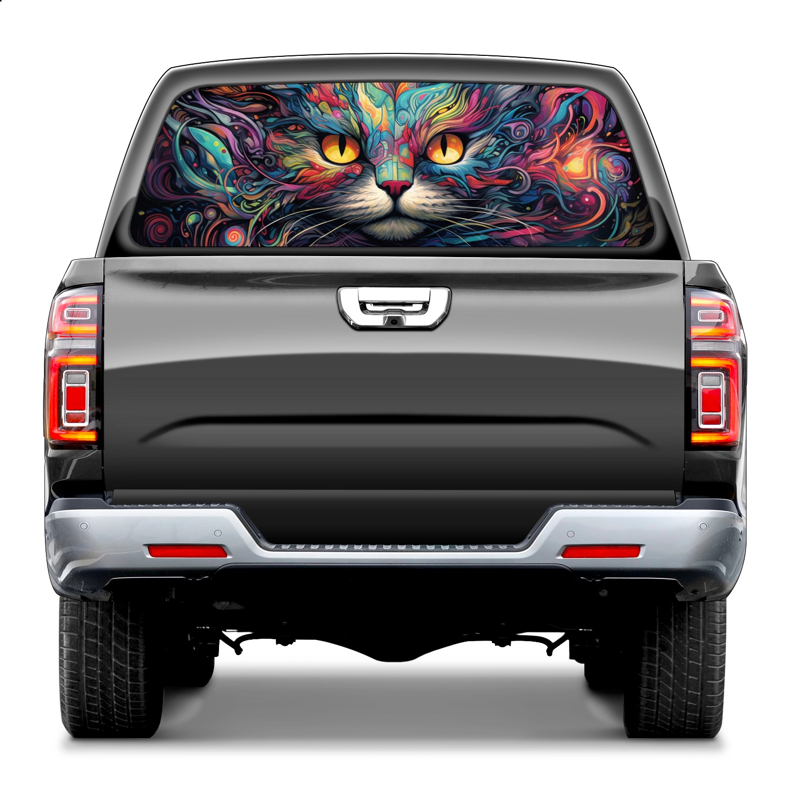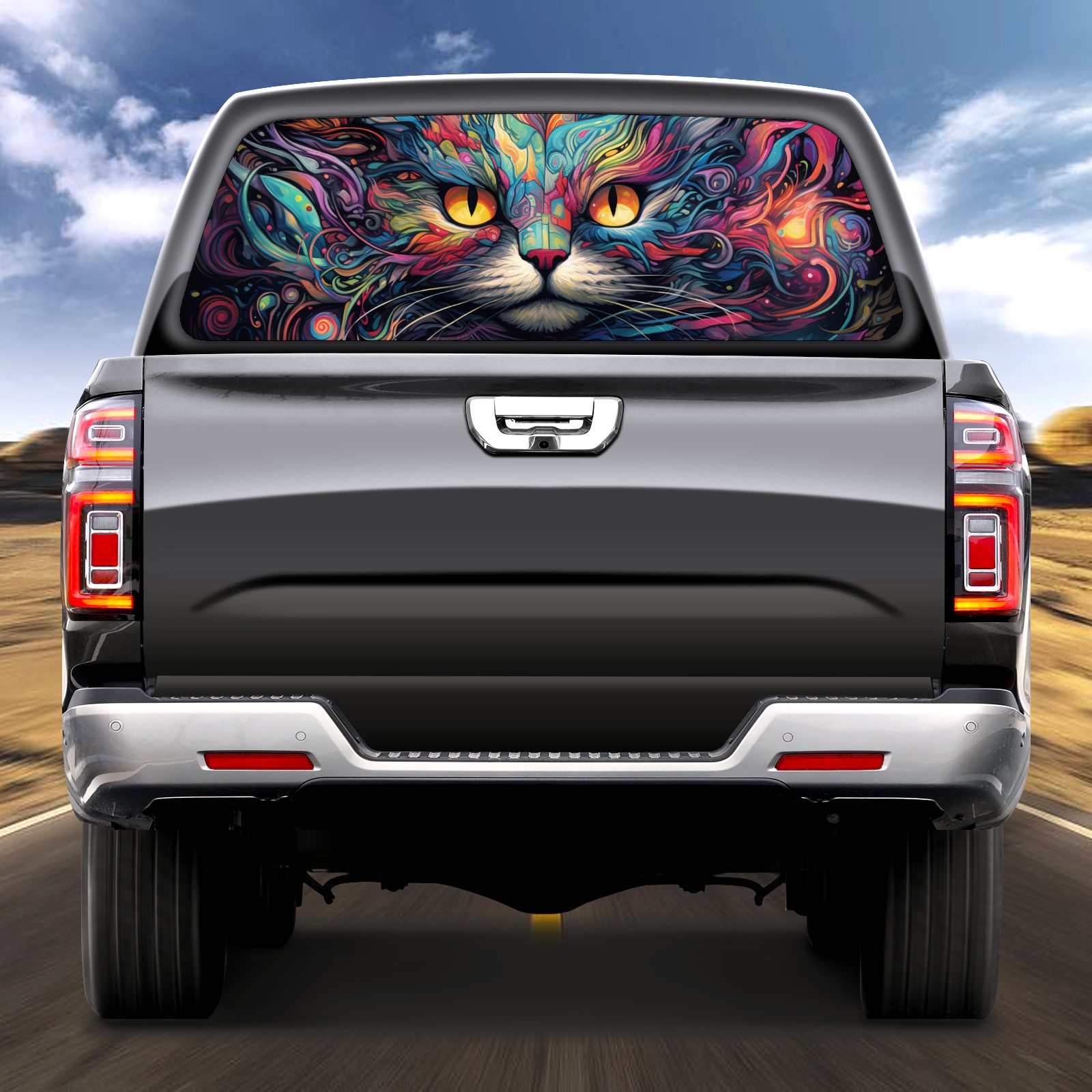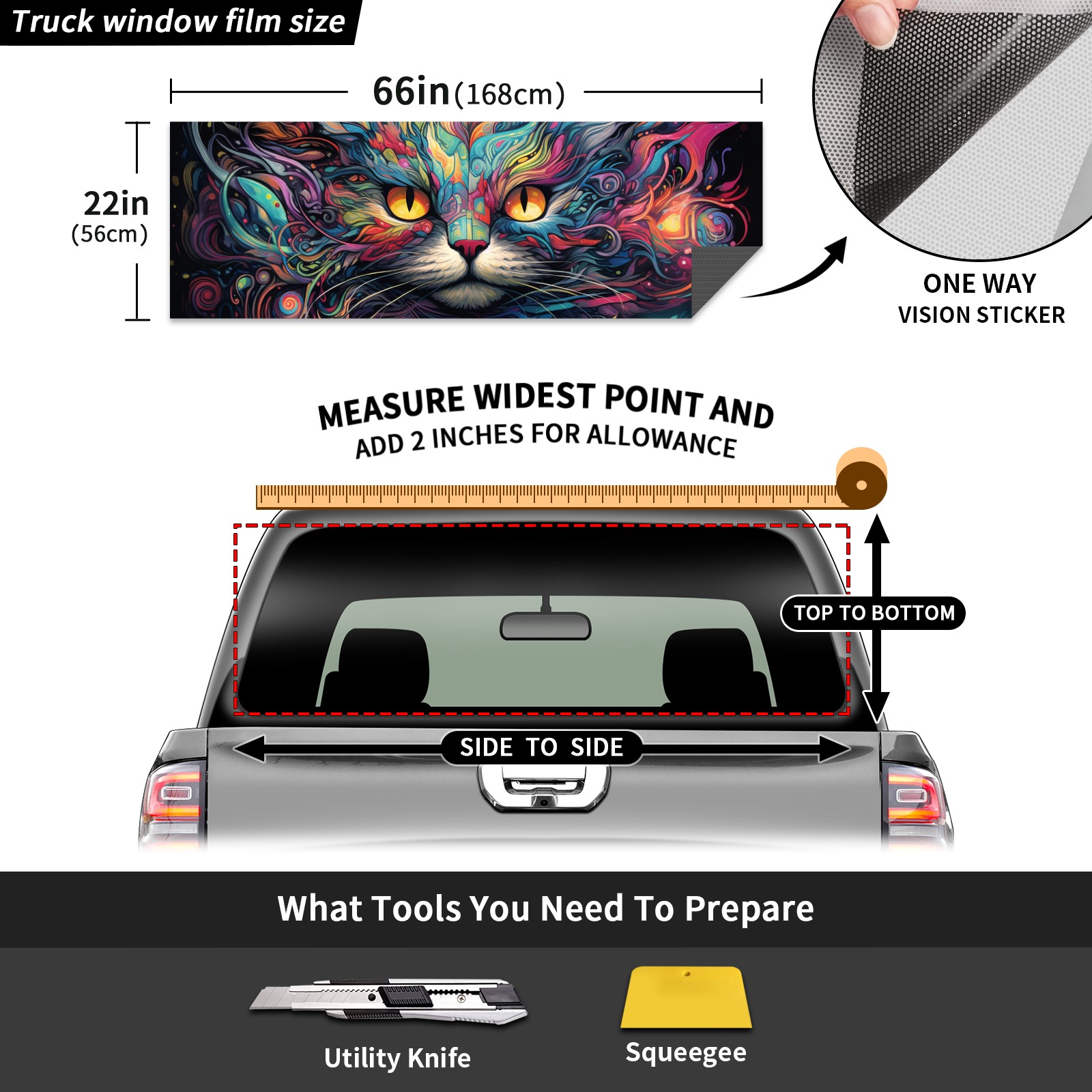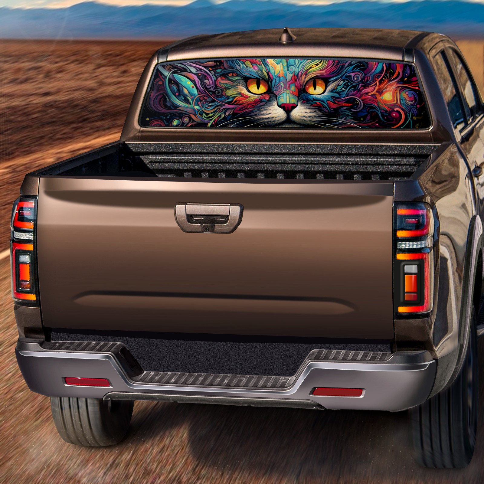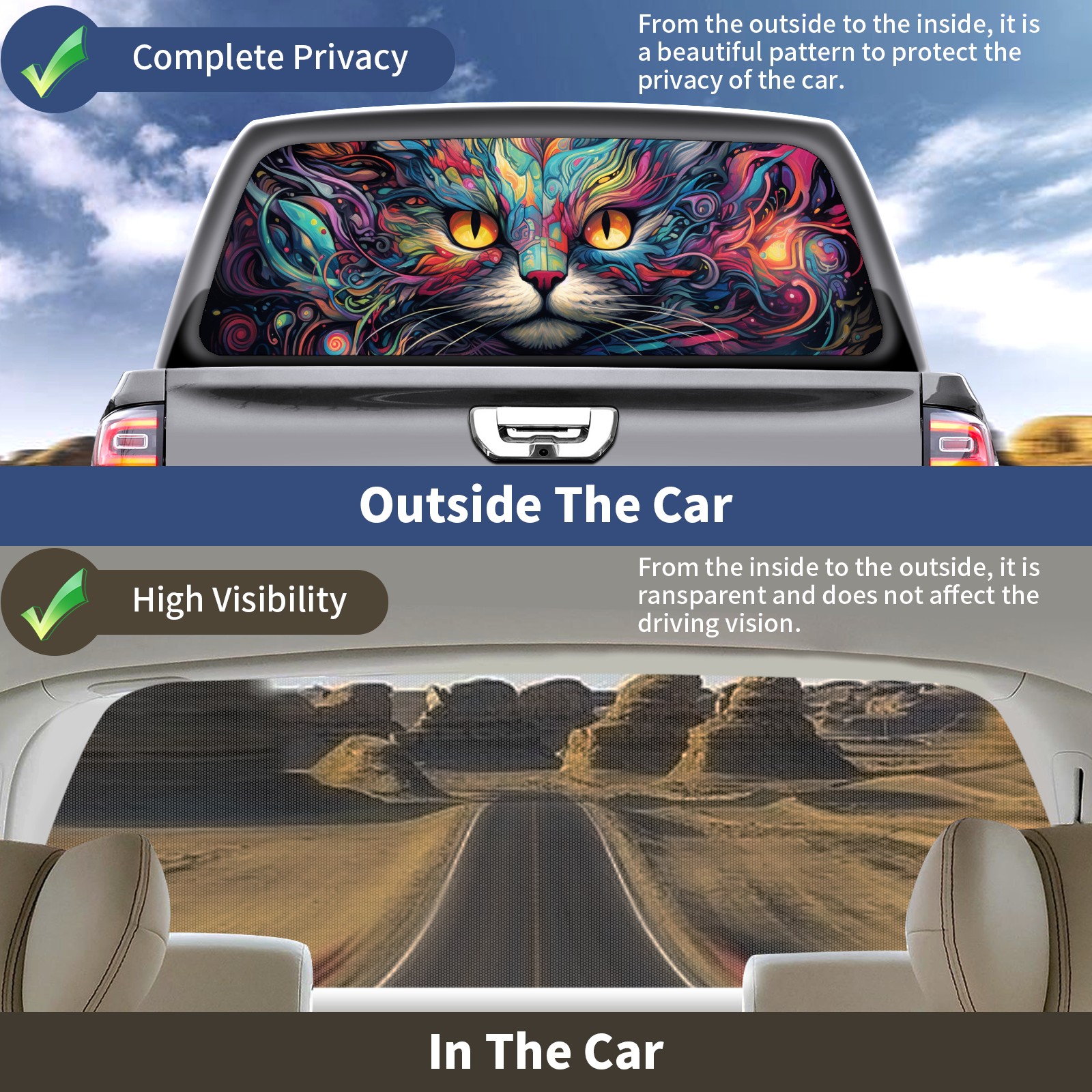 Truck Rear Window Graphics Decals Pickup Trucks Back Window Sticker Full Window Film Decal One Way Visual Waterproof Car Rear Tint Cat (1)