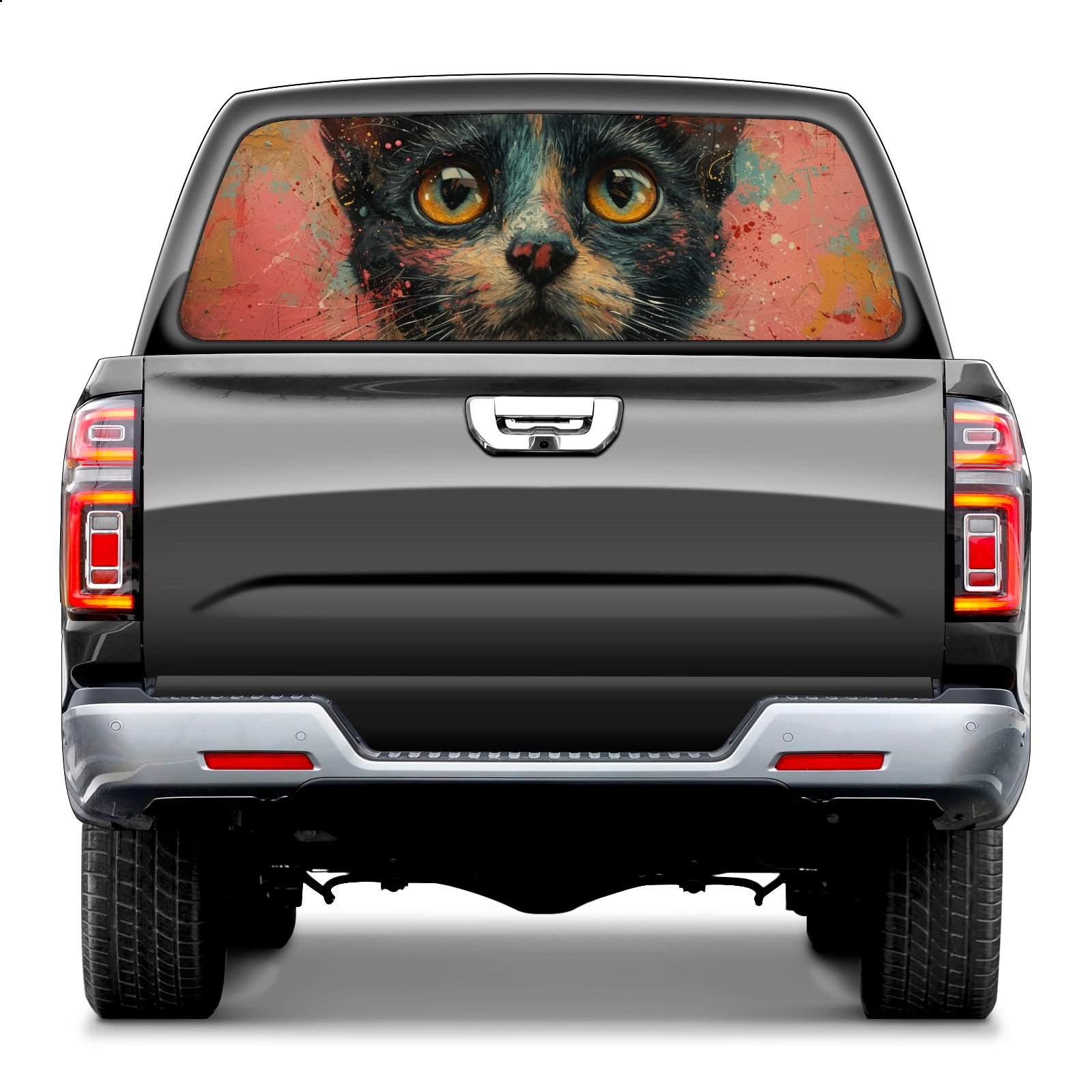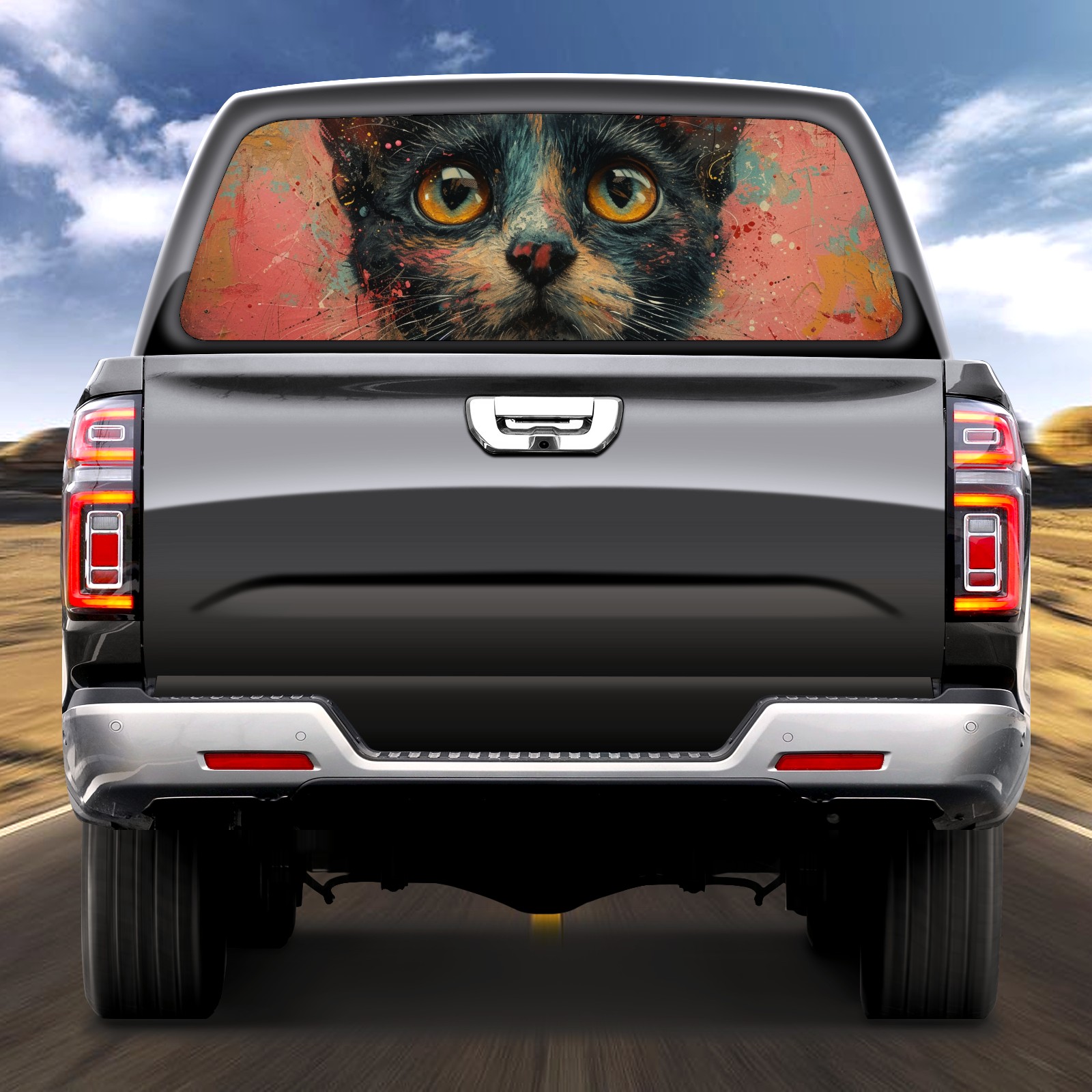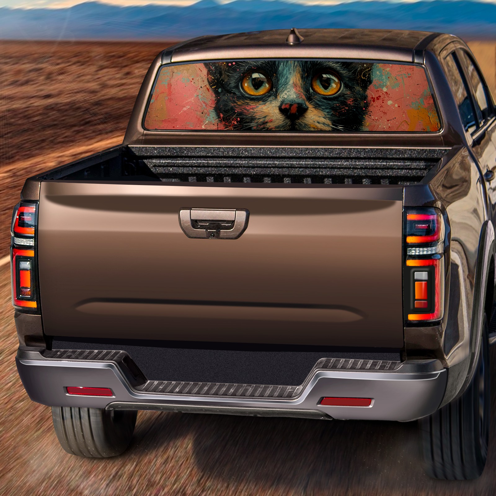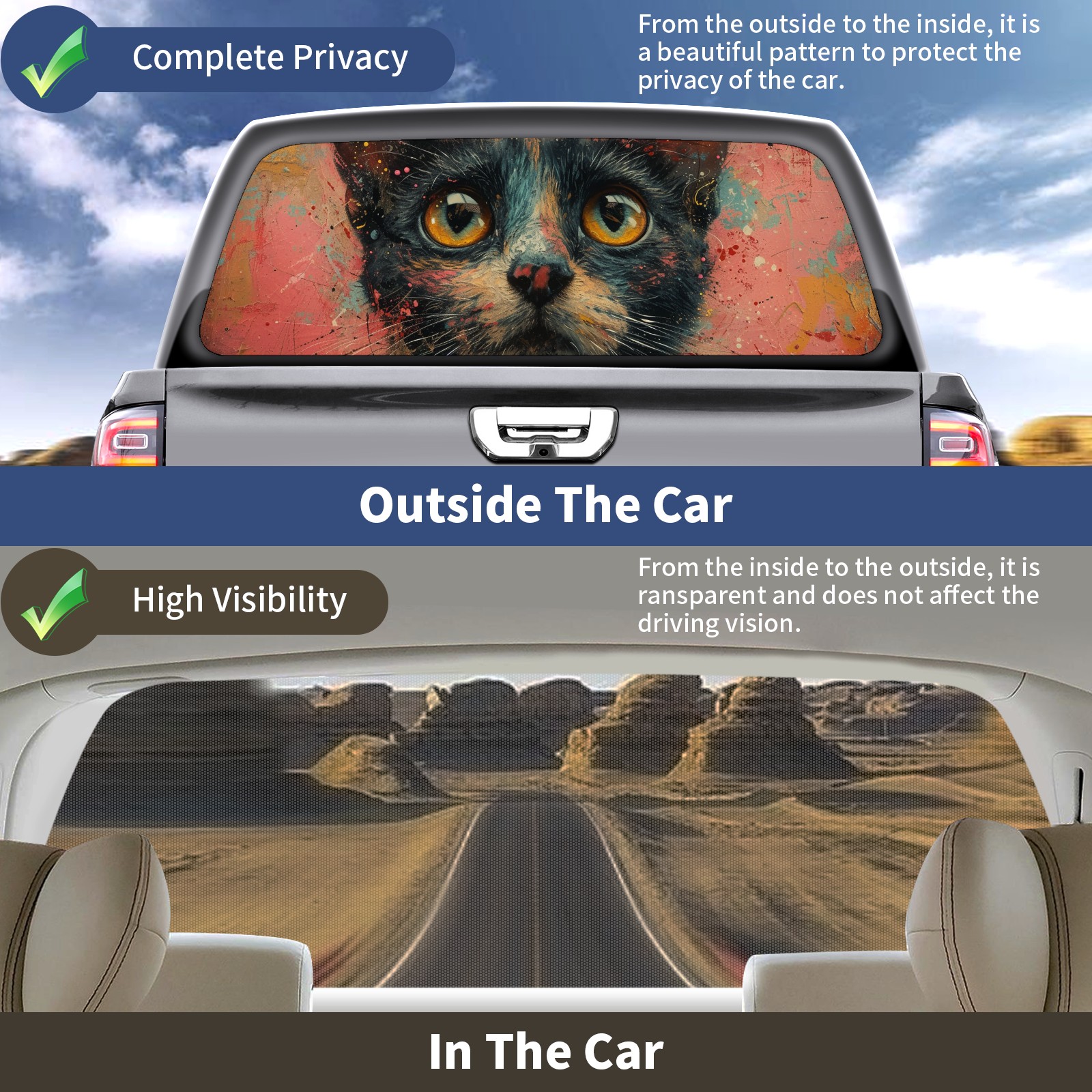 Truck Rear Window Graphics Decals Pickup Trucks Back Window Sticker Full Window Film Decal One Way Visual Waterproof Car Rear Tint Cat (41)