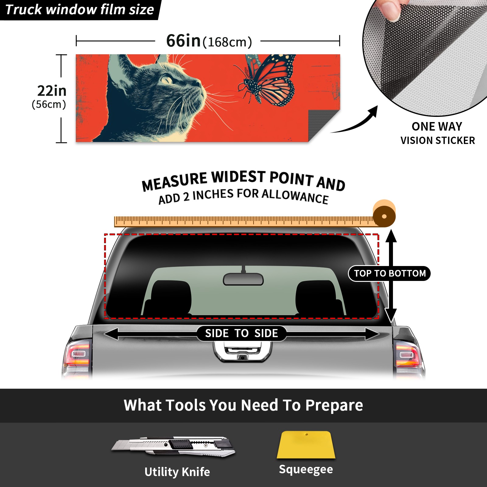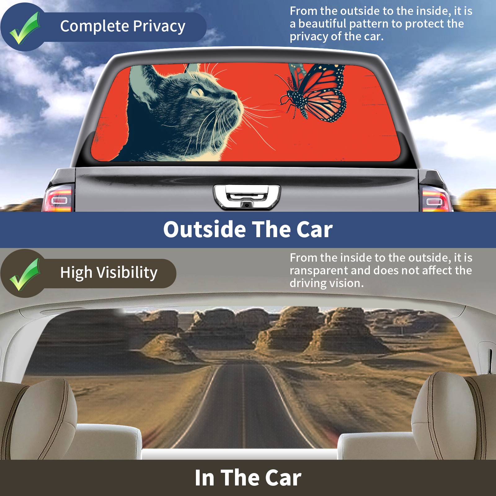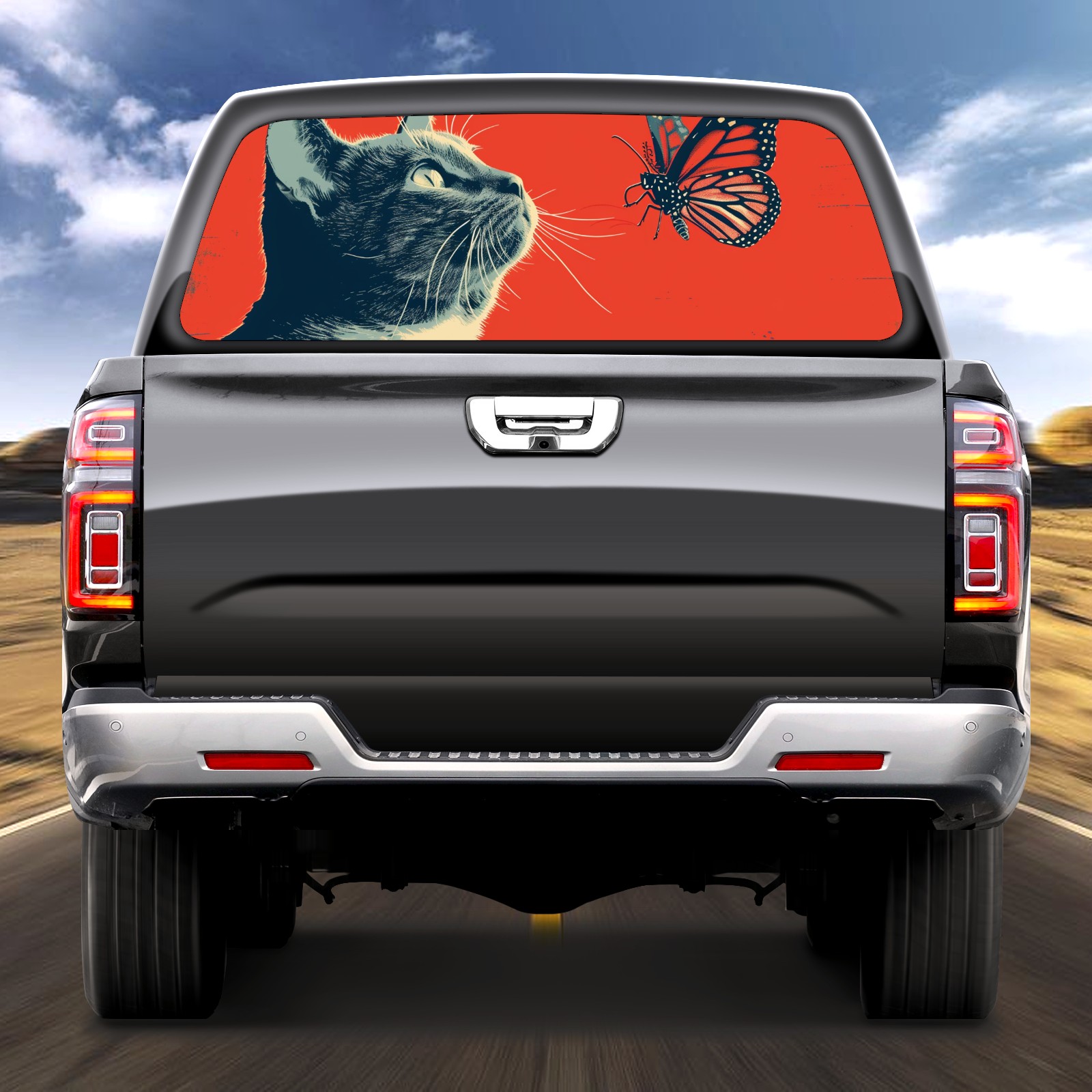 Truck Rear Window Graphics Decals Pickup Trucks Back Window Sticker Full Window Film Decal One Way Visual Waterproof Car Rear Tint Cat (32)